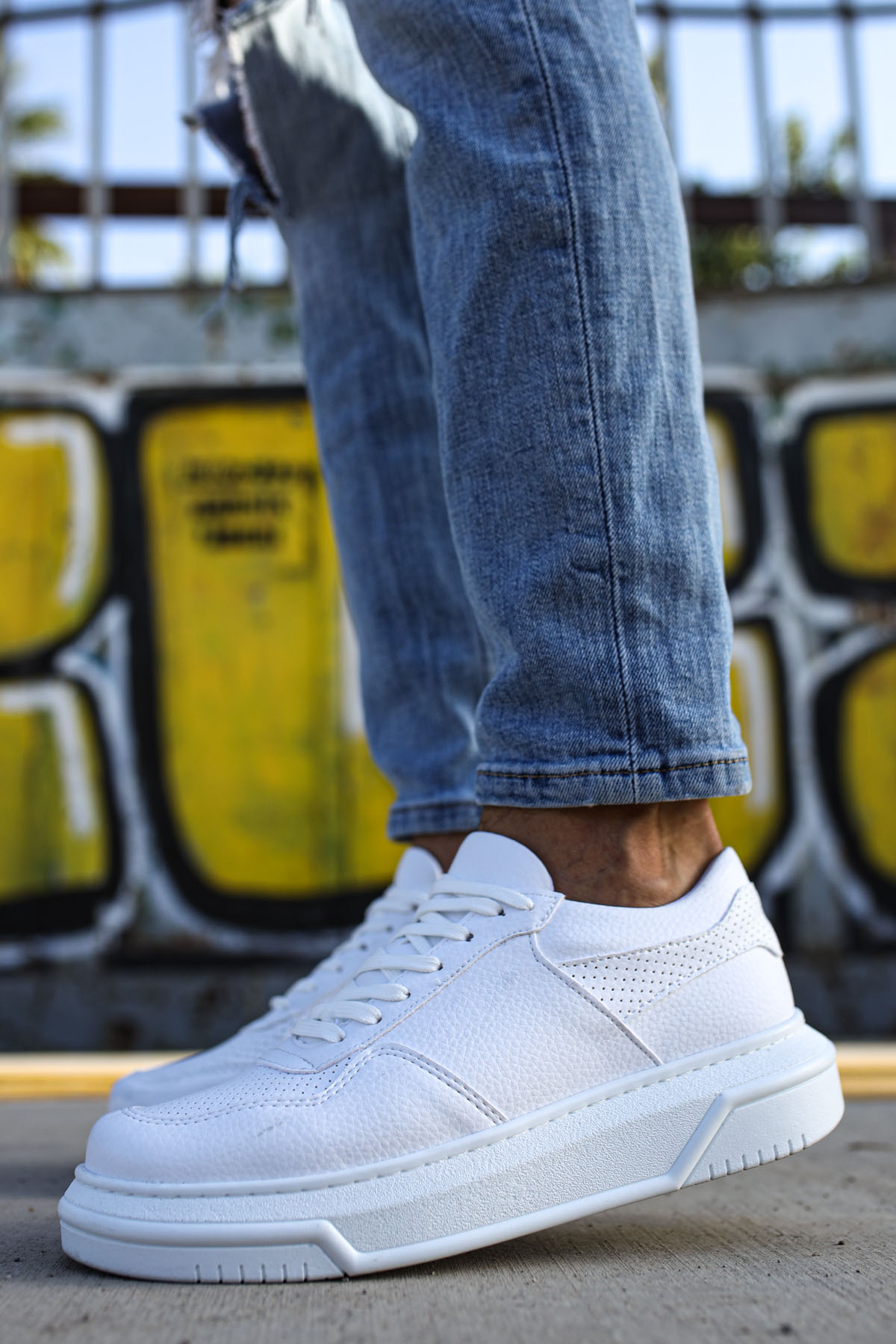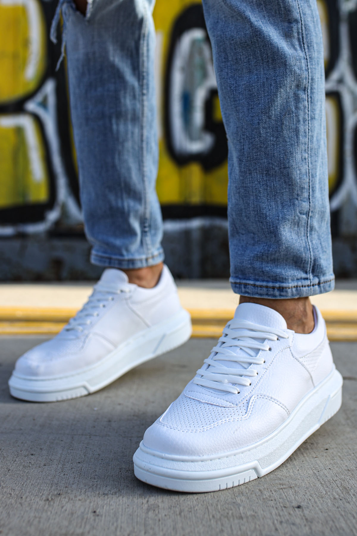 Tarz Erkek Ayakkabı MirgeShoes Beyaz Bağcıklı Unisex Casual Ayakkabı Modelli Kalın BYZ Taban MRG010602393