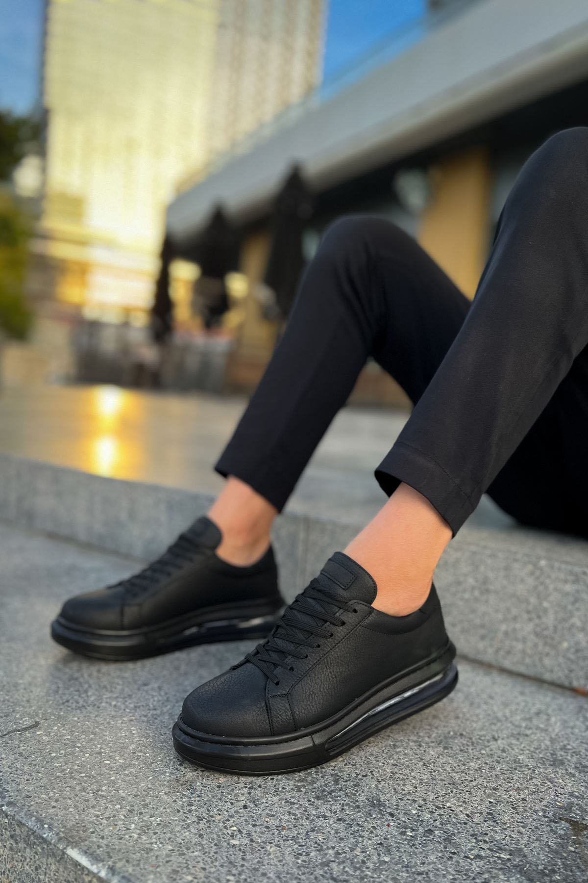 MirgeShoes Siyah Bağcıklı Erkek Tarz Spor Ayakkabı Kalın SYH Taban MRG01062589