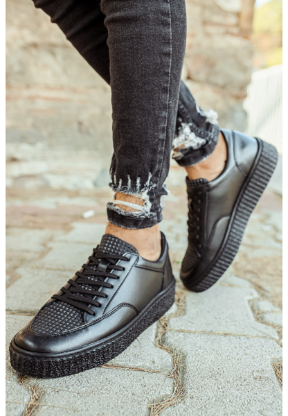 MirgeShoes Siyah-Sarı Bağcıklı Erkek Santoni Spor Ayakkabı Rahat BYZ Taban MRG01063297