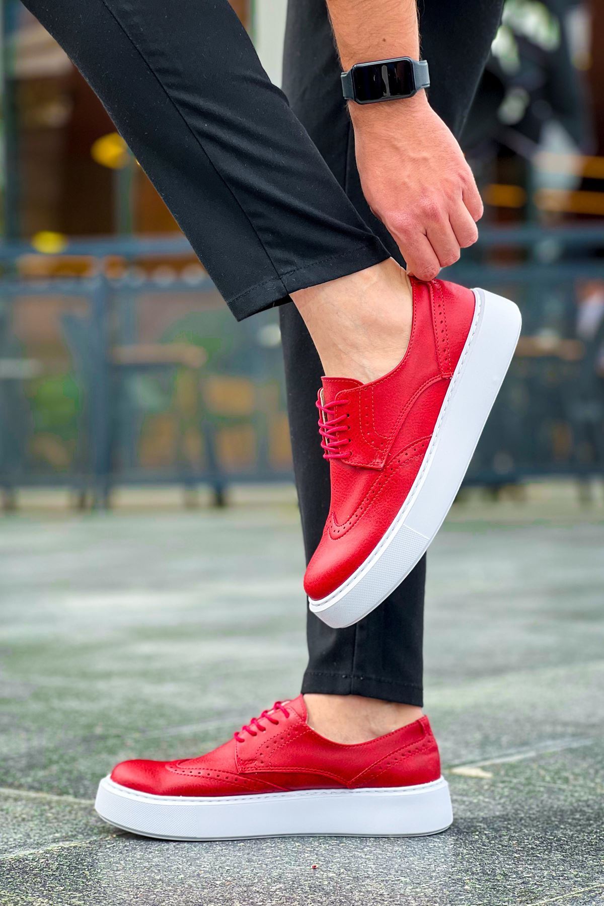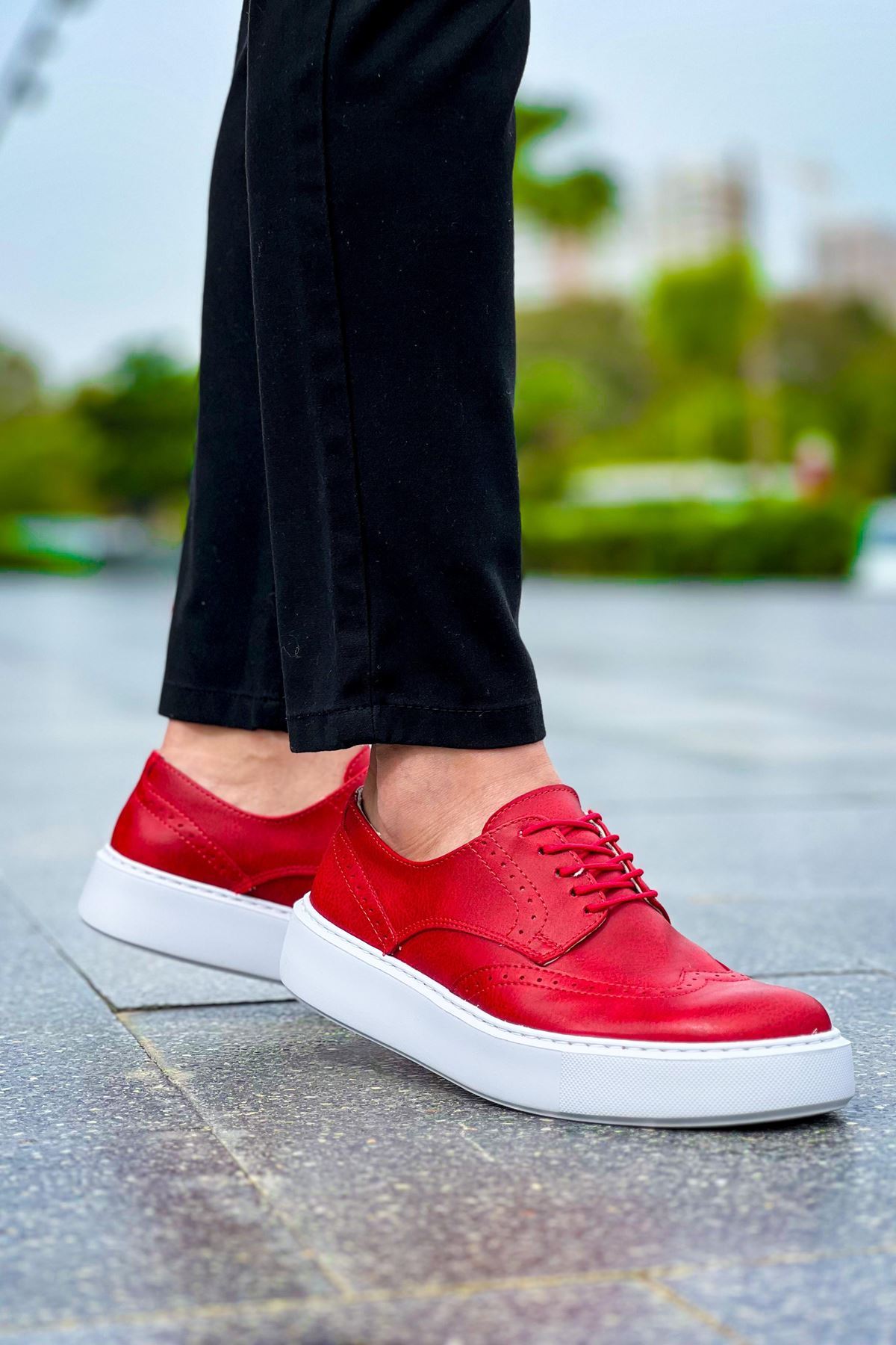• MirgeShoes Kırmızı Bağcıklı Erkek Klasik Casual Ayakkabı Yüksek Kalın BYZ Taban MRG01062467
