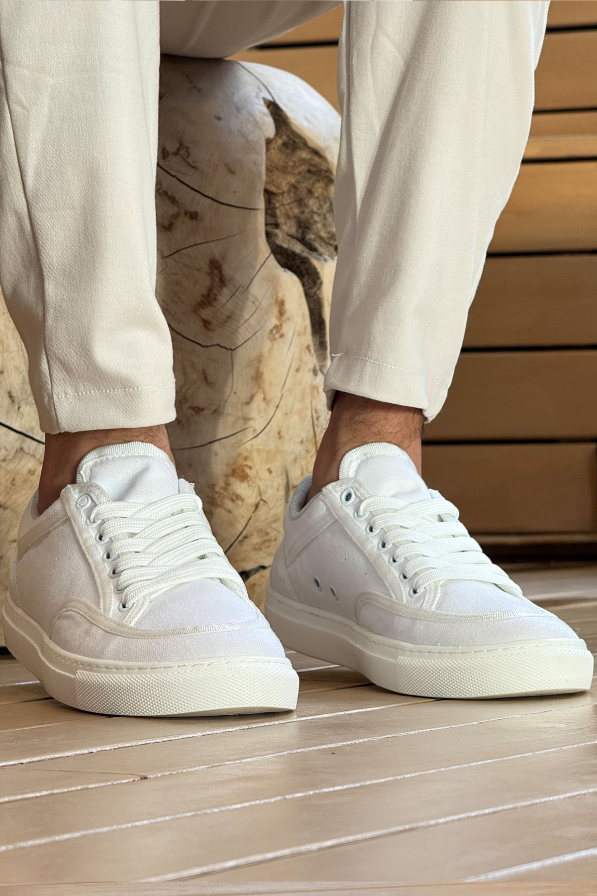 MirgeShoes Beyaz Bağcıklı Erkek Spor Ayakkabı Keten Kalın BYZ Taban MRG01064823