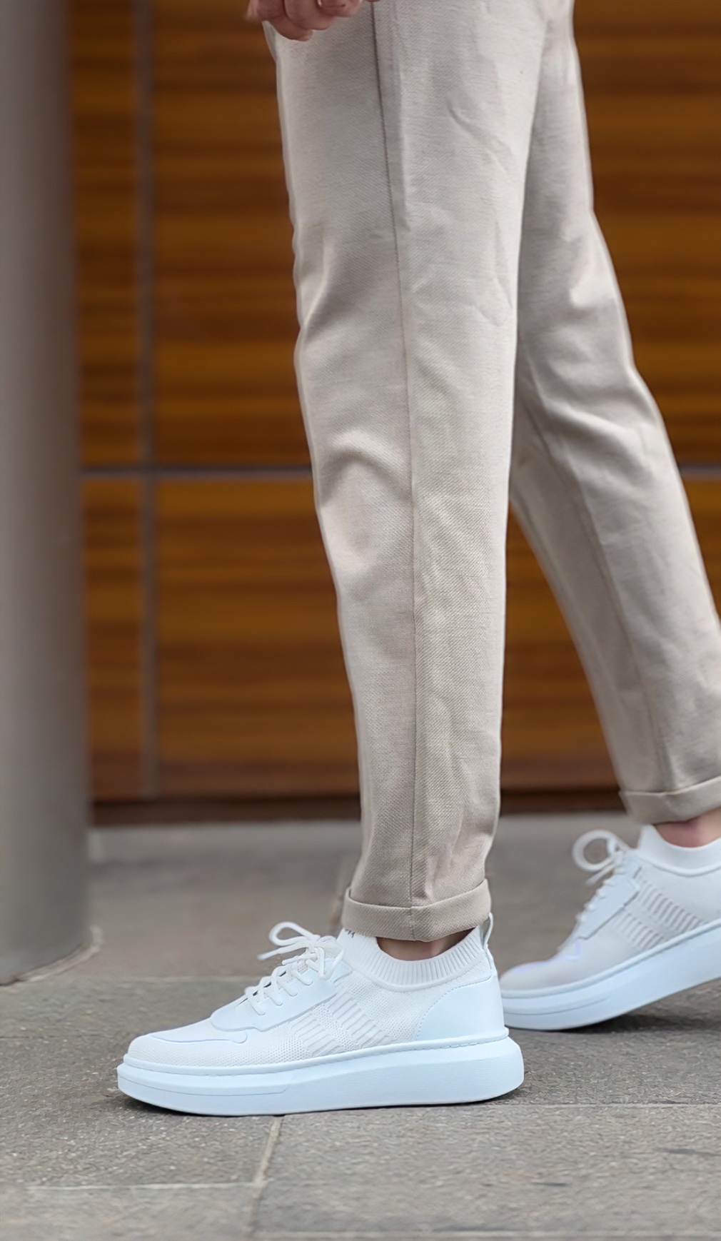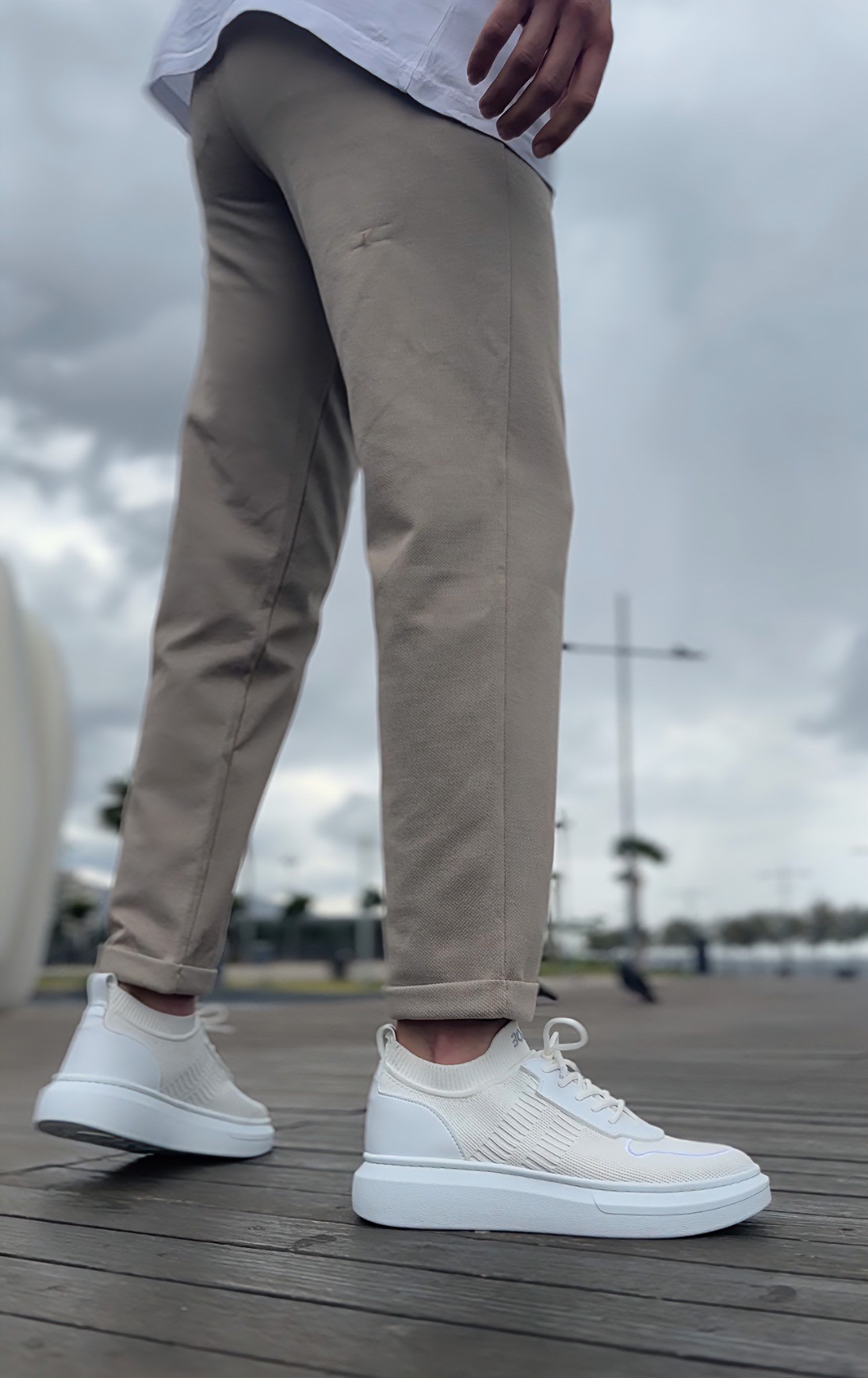 Erkek Spor MirgeShoes Beyaz Erkek Tarz Spor Ayakkabı Hava alan Örgü Triko Beyaz Taban MRG010603130
