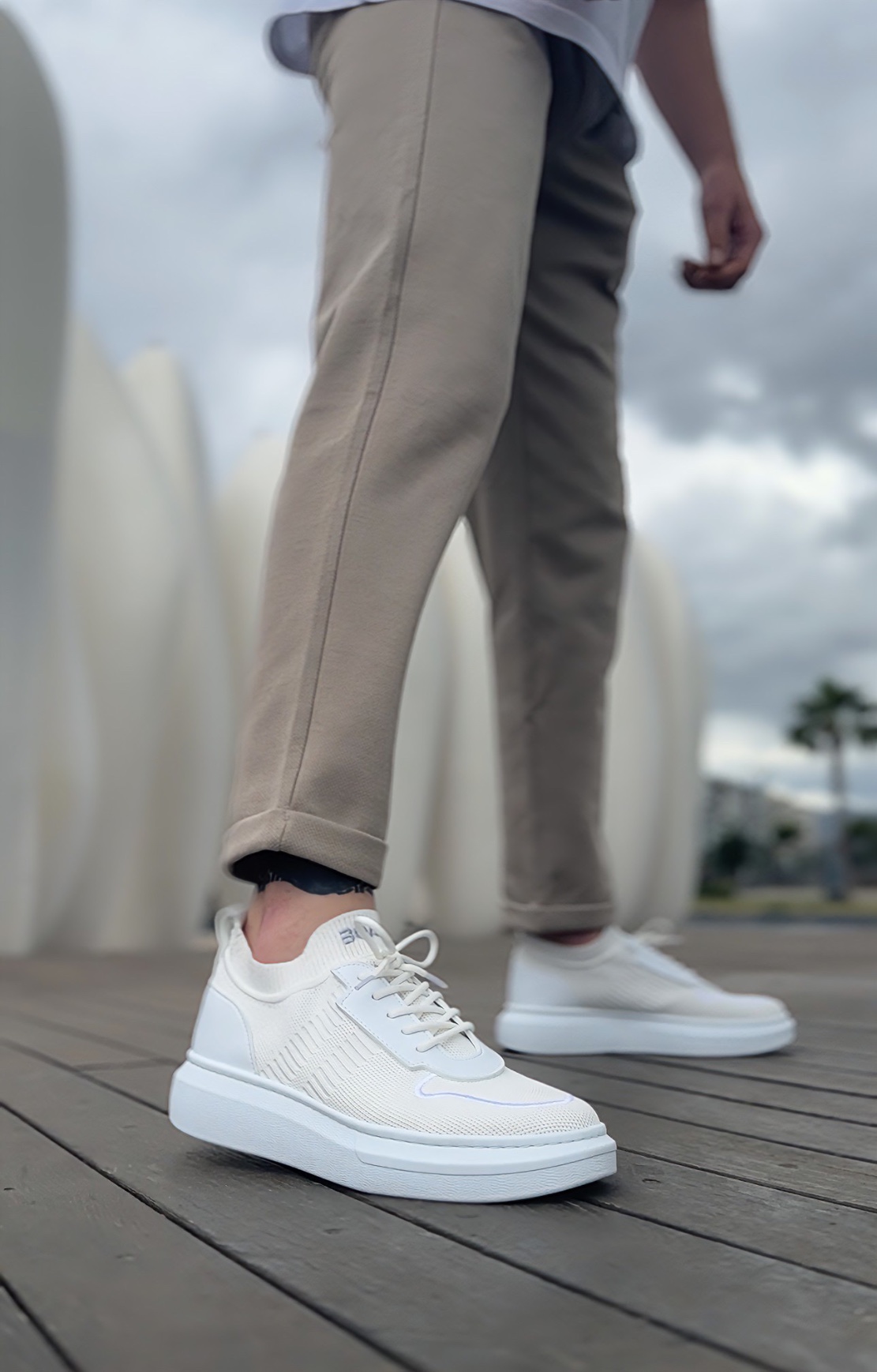 • MirgeShoes Beyaz Erkek Tarz Spor Ayakkabı Hava alan Örgü Triko Beyaz Taban MRG010603130
