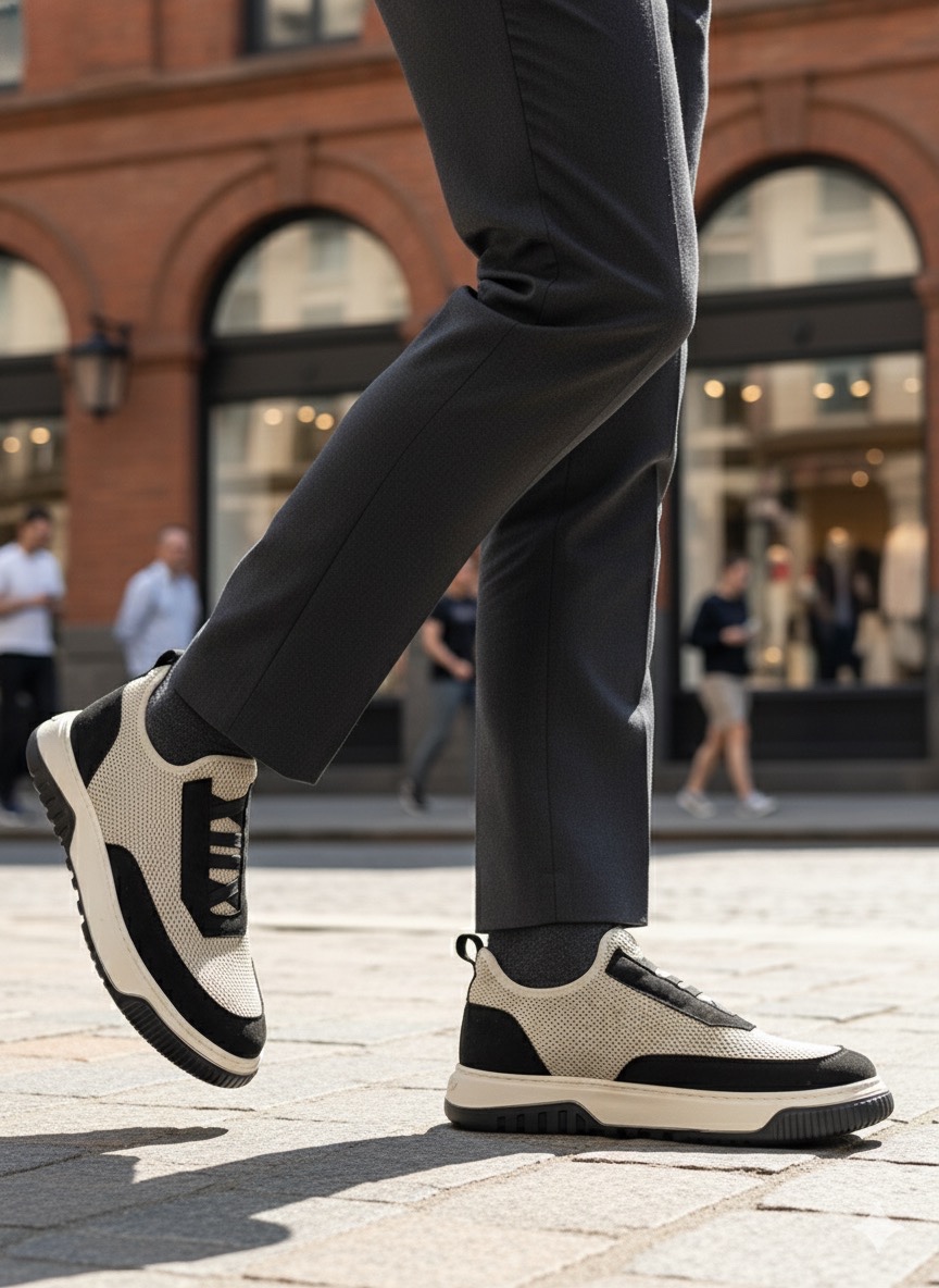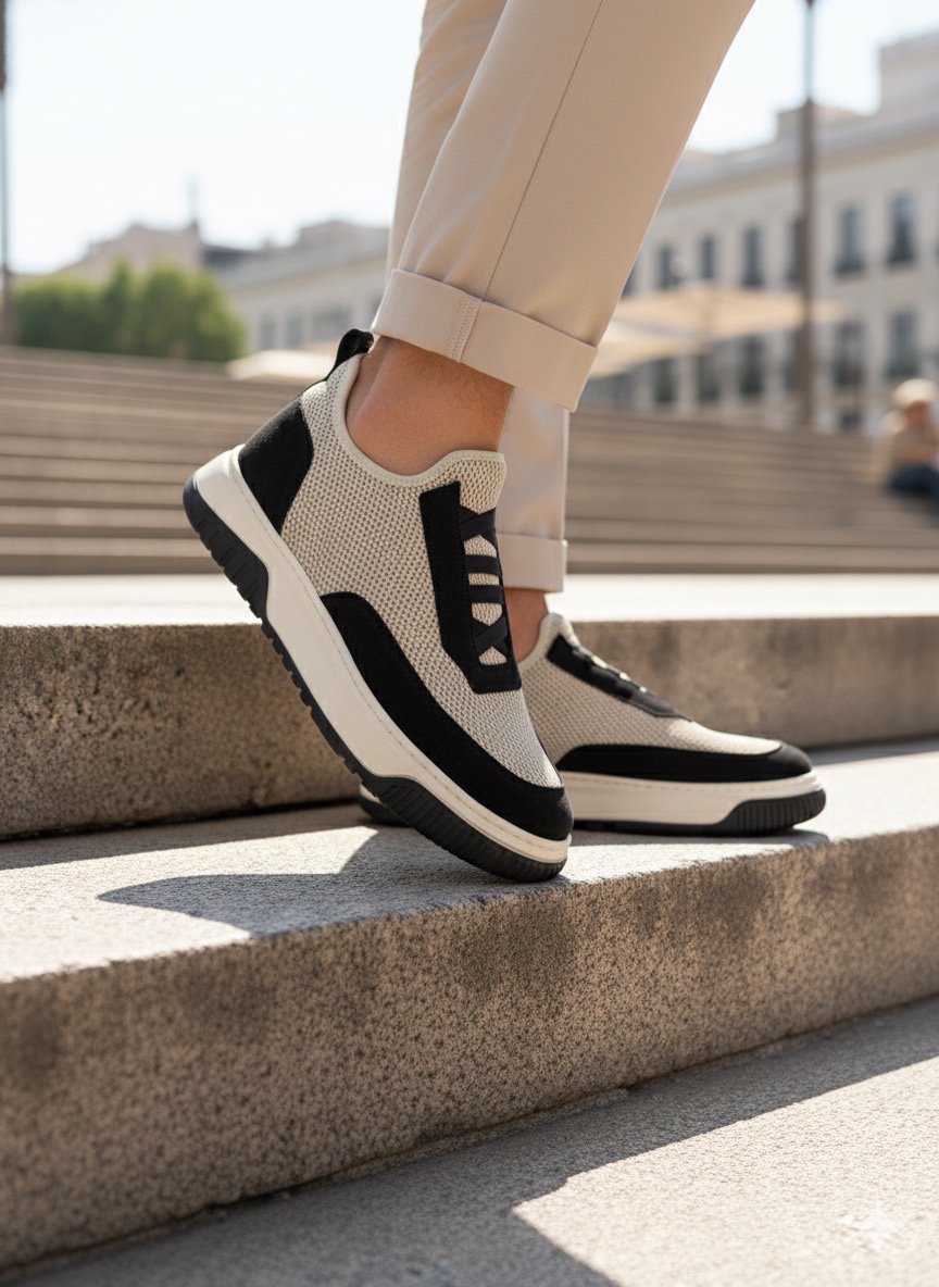 • MirgeShoes Bej-Siyah Erkek Günlük Spor Ayakkabı Havalı Özel Örme Triko Bej-Siyah Taban MRG010603229