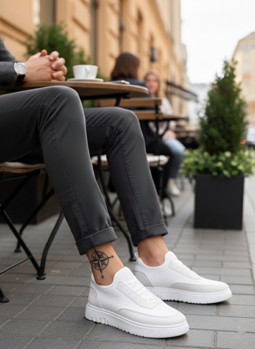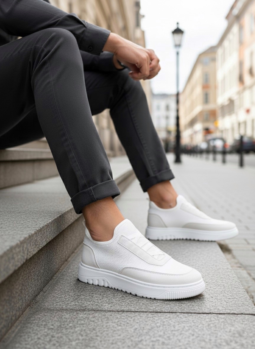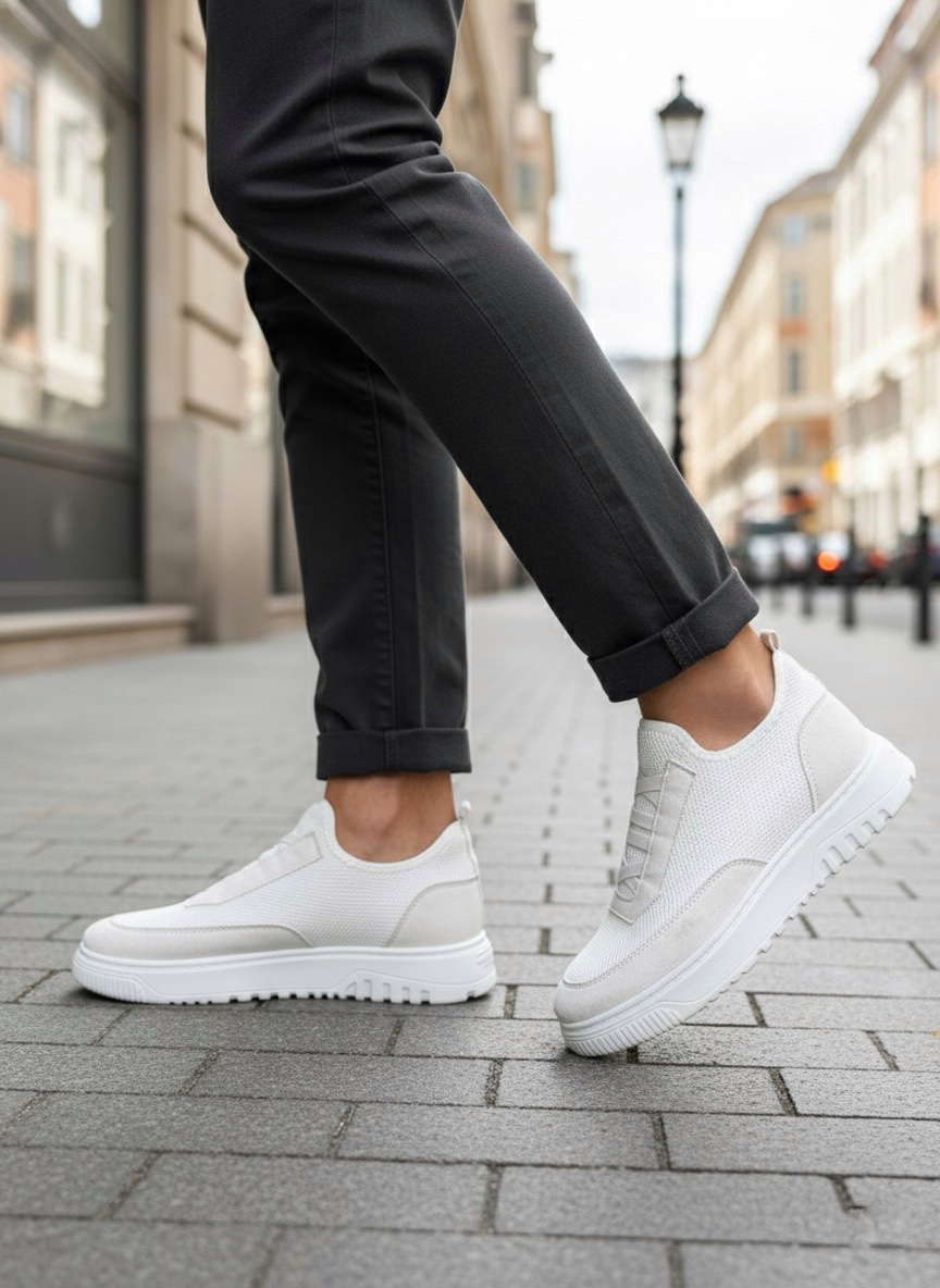 Erkek Spor MirgeShoes Beyaz Erkek Günlük Spor Ayakkabı Havalı Özel Örme Triko Beyaz Taban MRG010603229