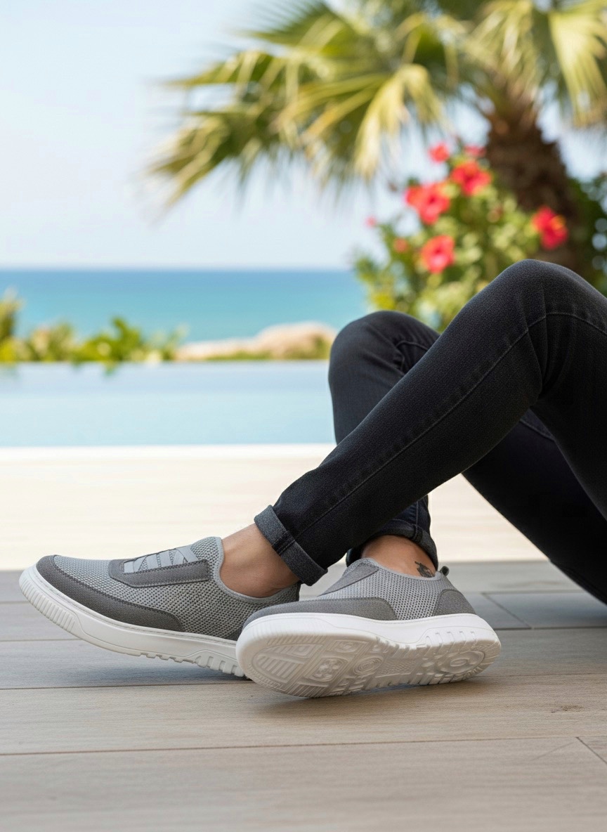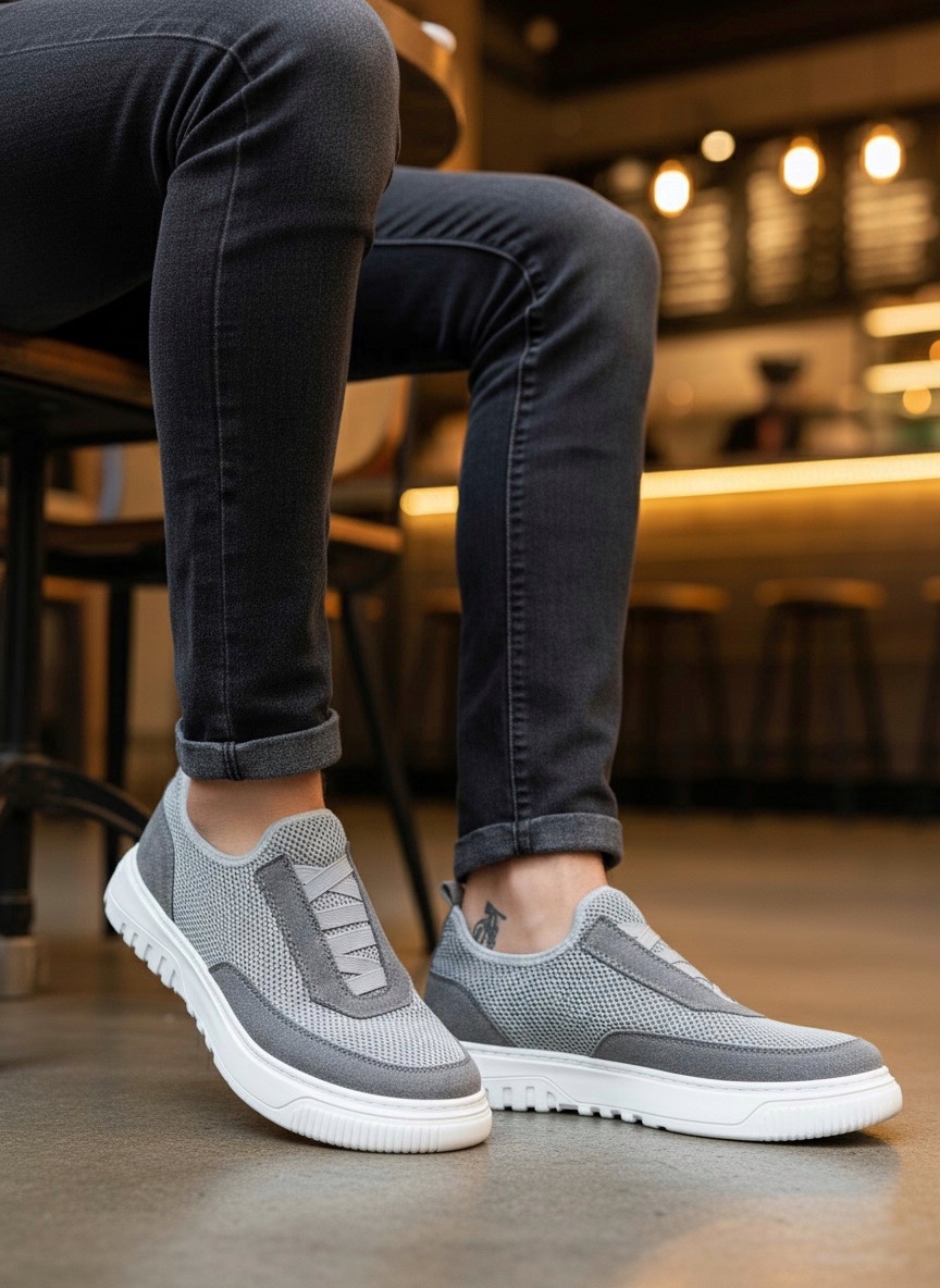 MirgeShoes Gri Erkek Günlük Spor Ayakkabı Havalı Özel Örme Triko Beyaz Taban MRG010603229