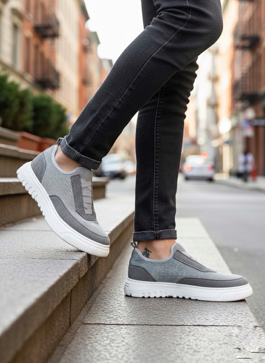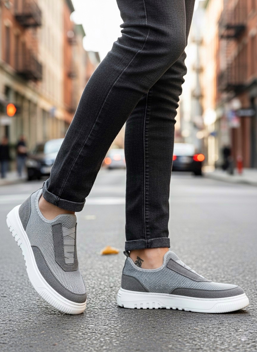 Erkek Spor MirgeShoes Gri Erkek Günlük Spor Ayakkabı Havalı Özel Örme Triko Beyaz Taban MRG010603229