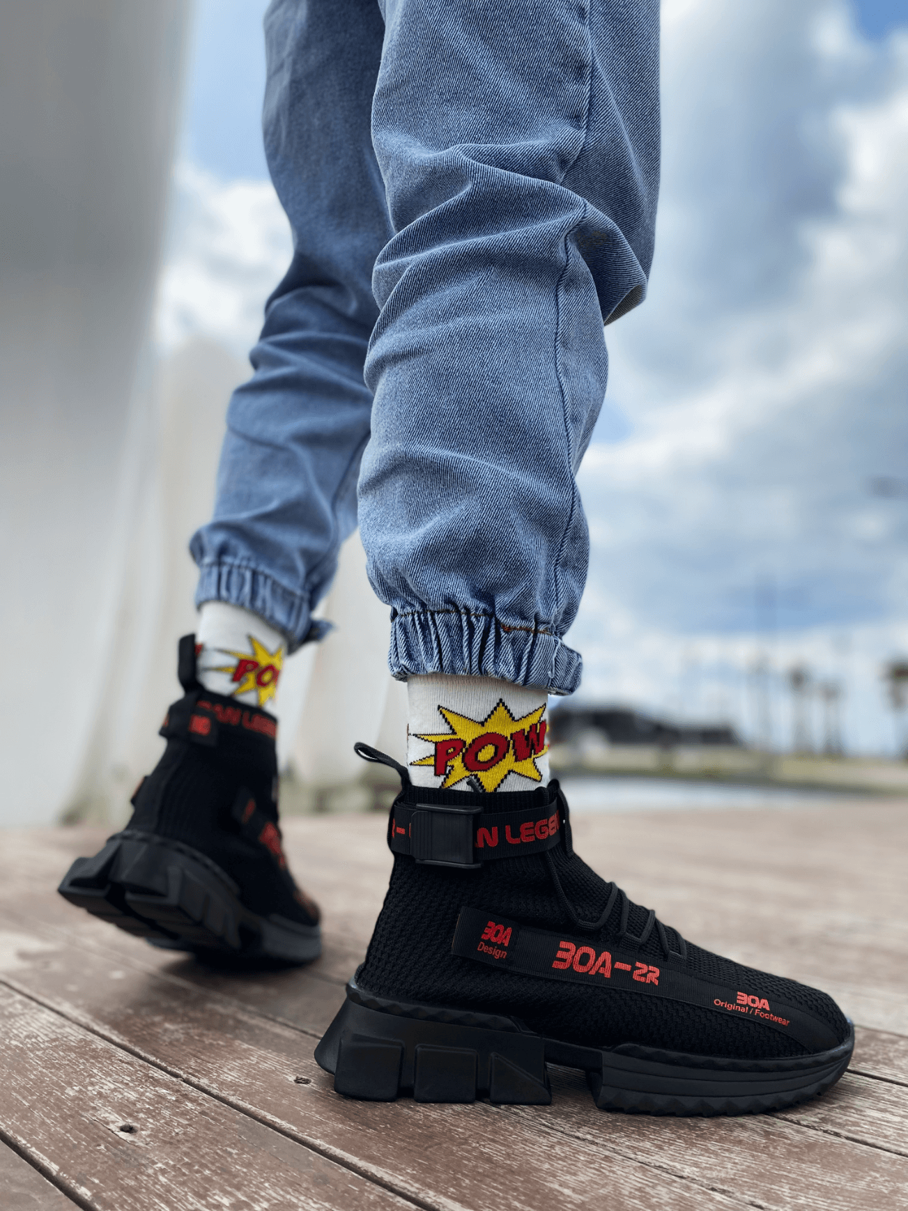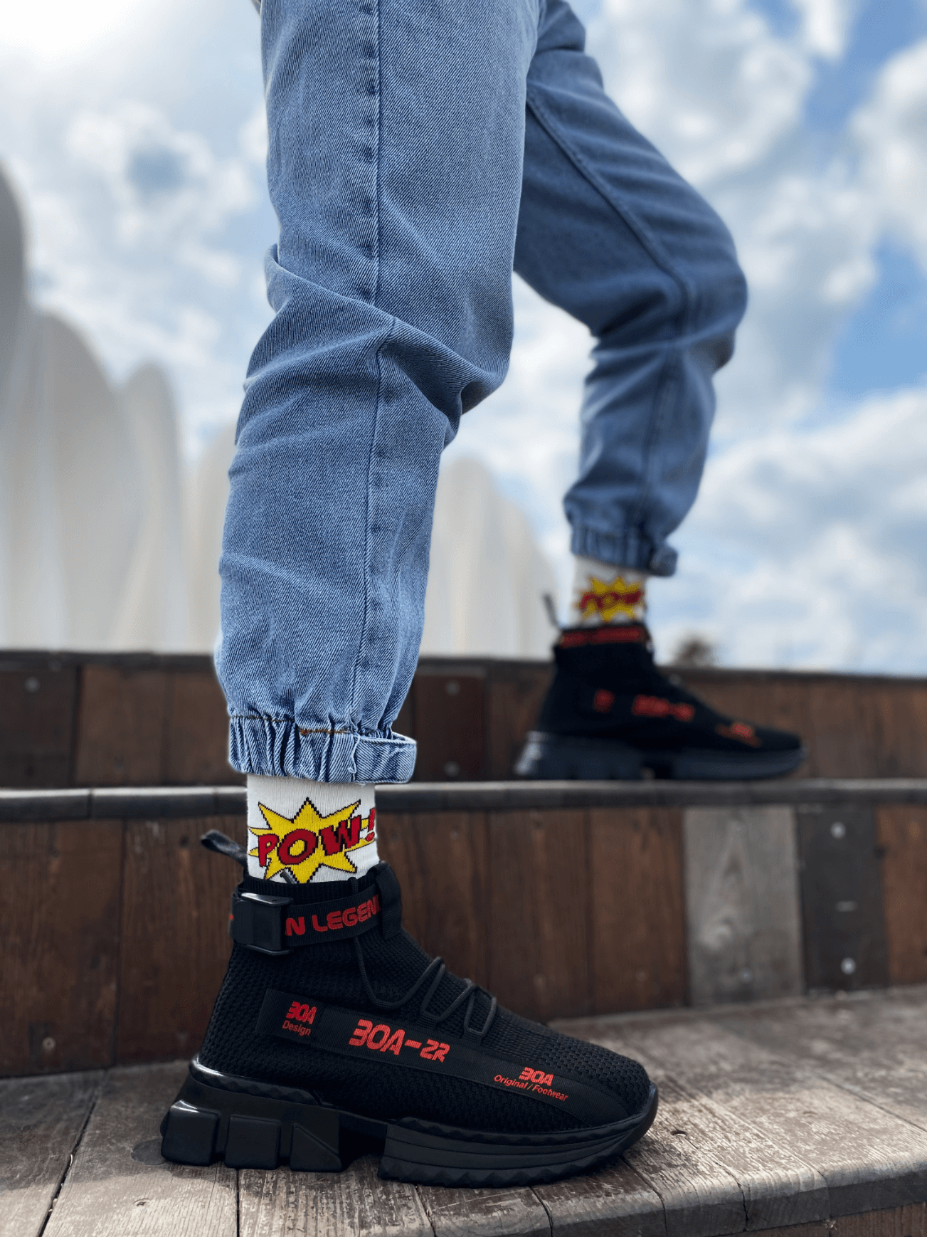 MirgeShoes Siyah-Kırmızı Erkek Tarz Spor Ayakkabı Triko Doku Yüksek Taban SYK MRG01063018