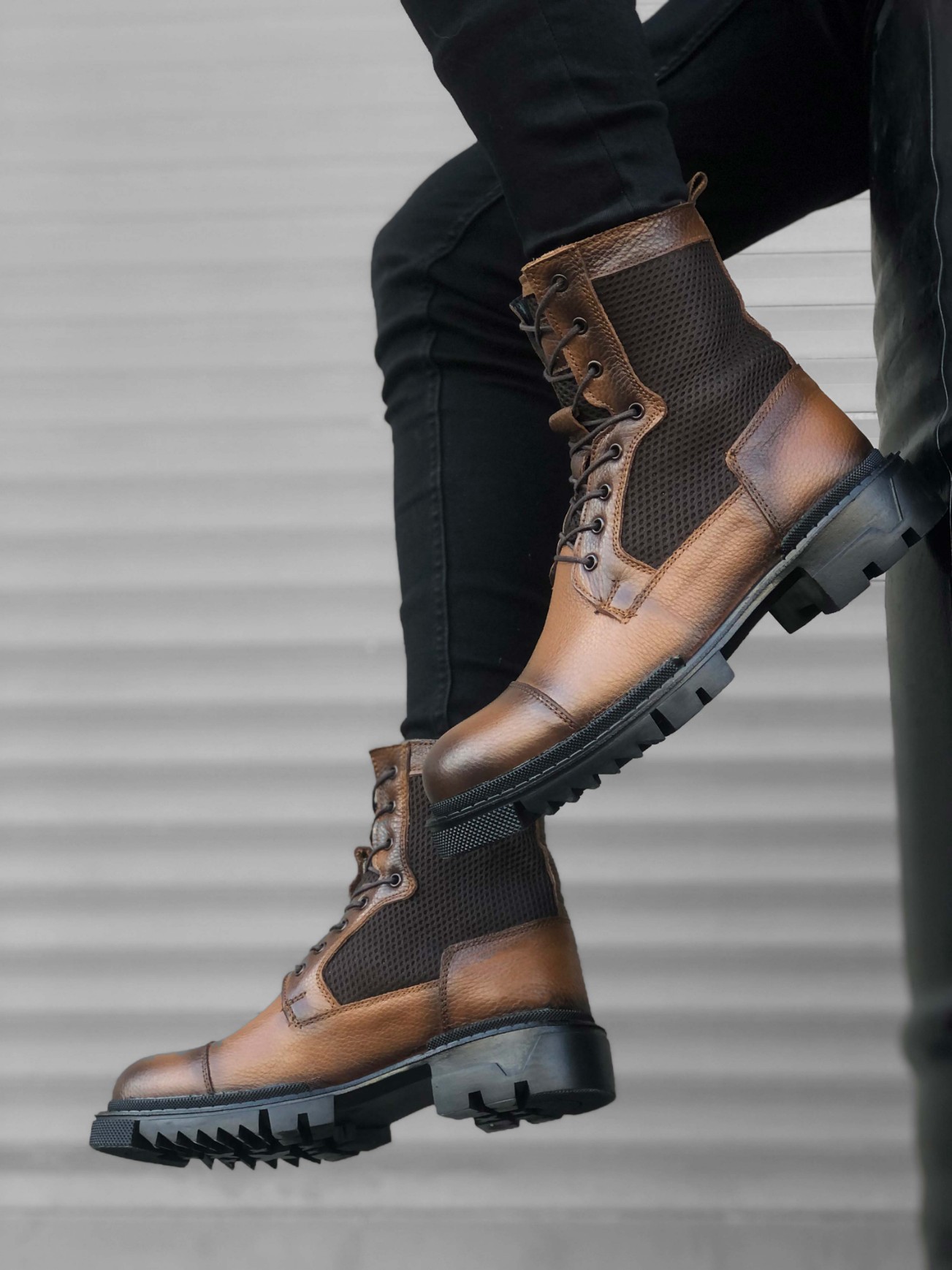 Erkek Bot MirgeShoes Taba Bağcıklı Erkek Postal Bot İçi Dışı Hakiki Deri MRG010602501