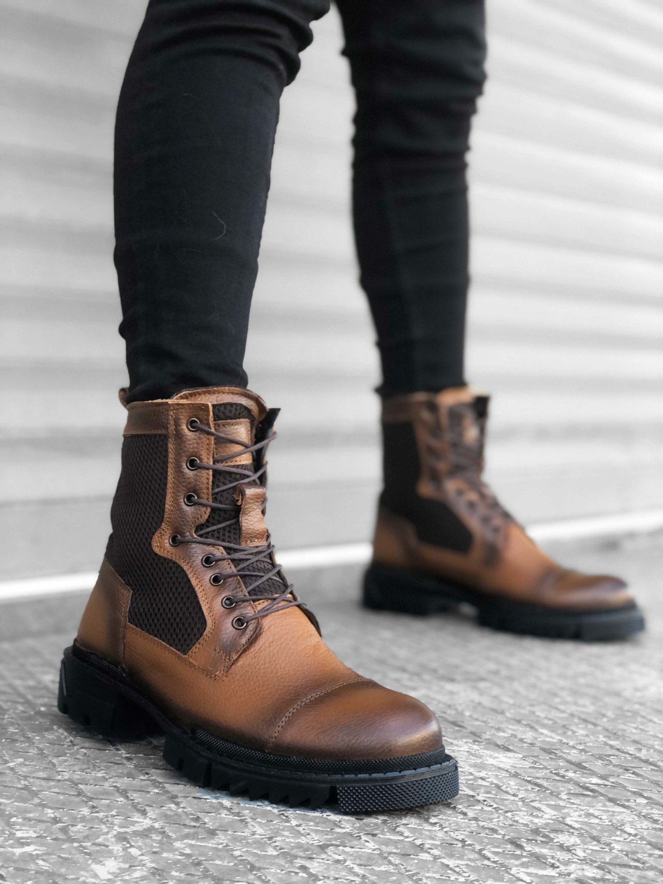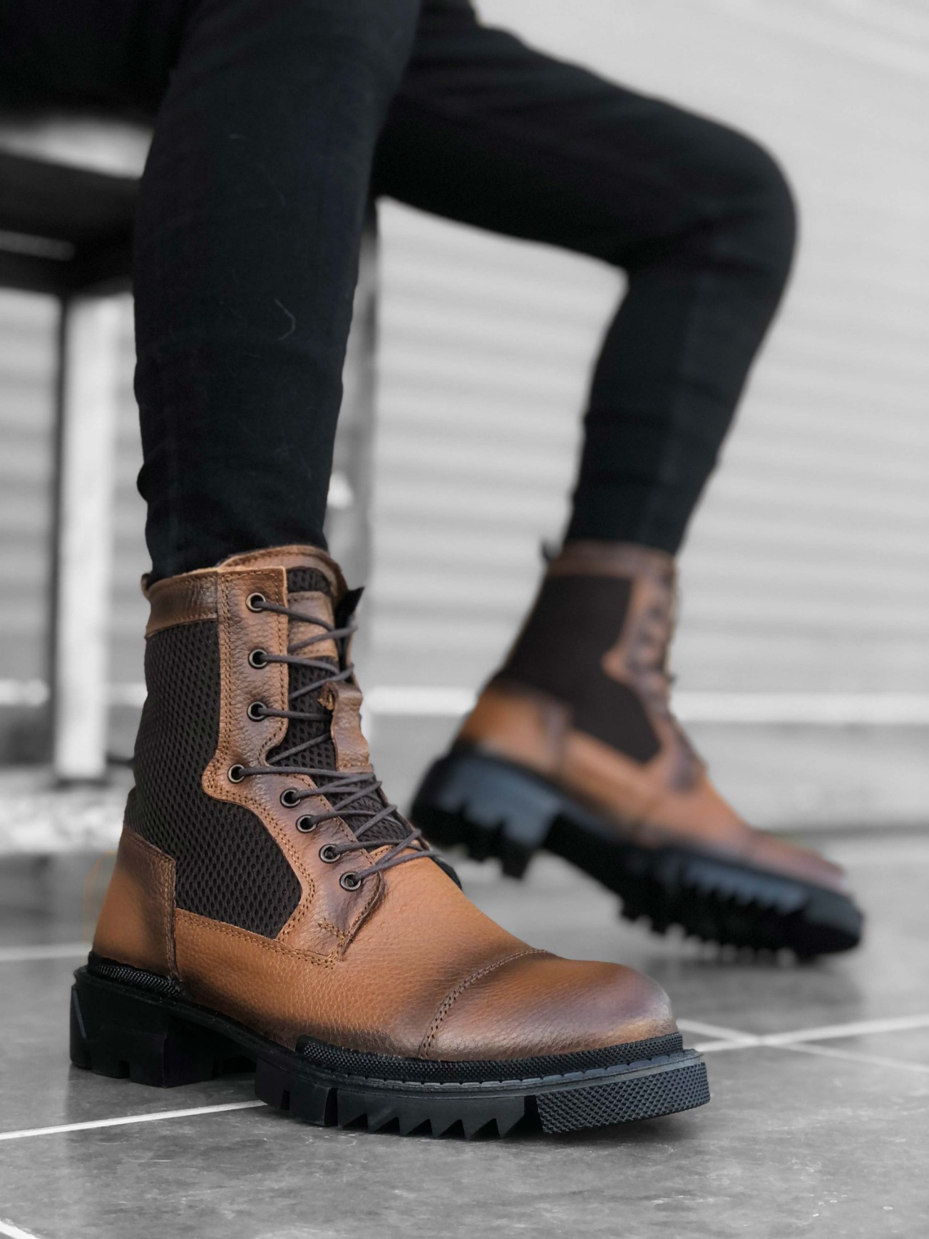 MirgeShoes Taba Bağcıklı Erkek Postal Bot İçi Dışı Hakiki Deri MRG010602501