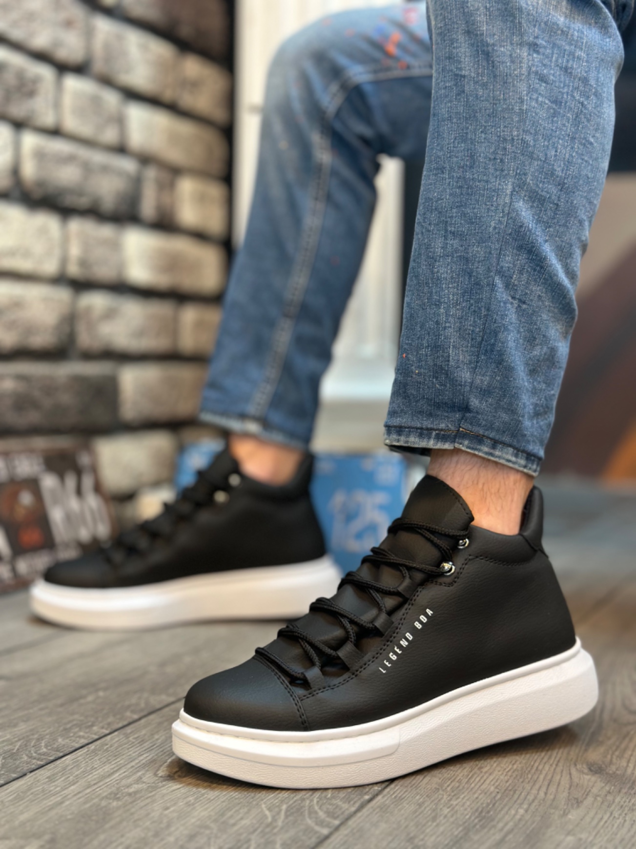 MirgeShoes Siyah Bağcıklı Erkek Tarz Spor Bilek Bot Yüksek Kalın BYZ Taban MRG010602630