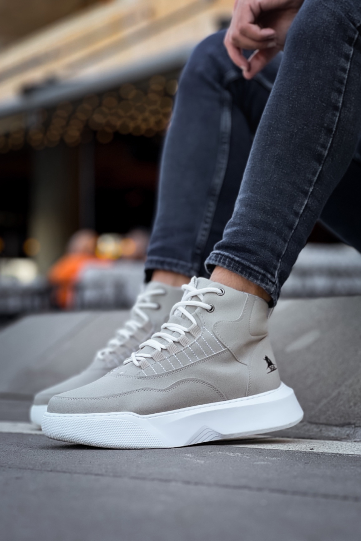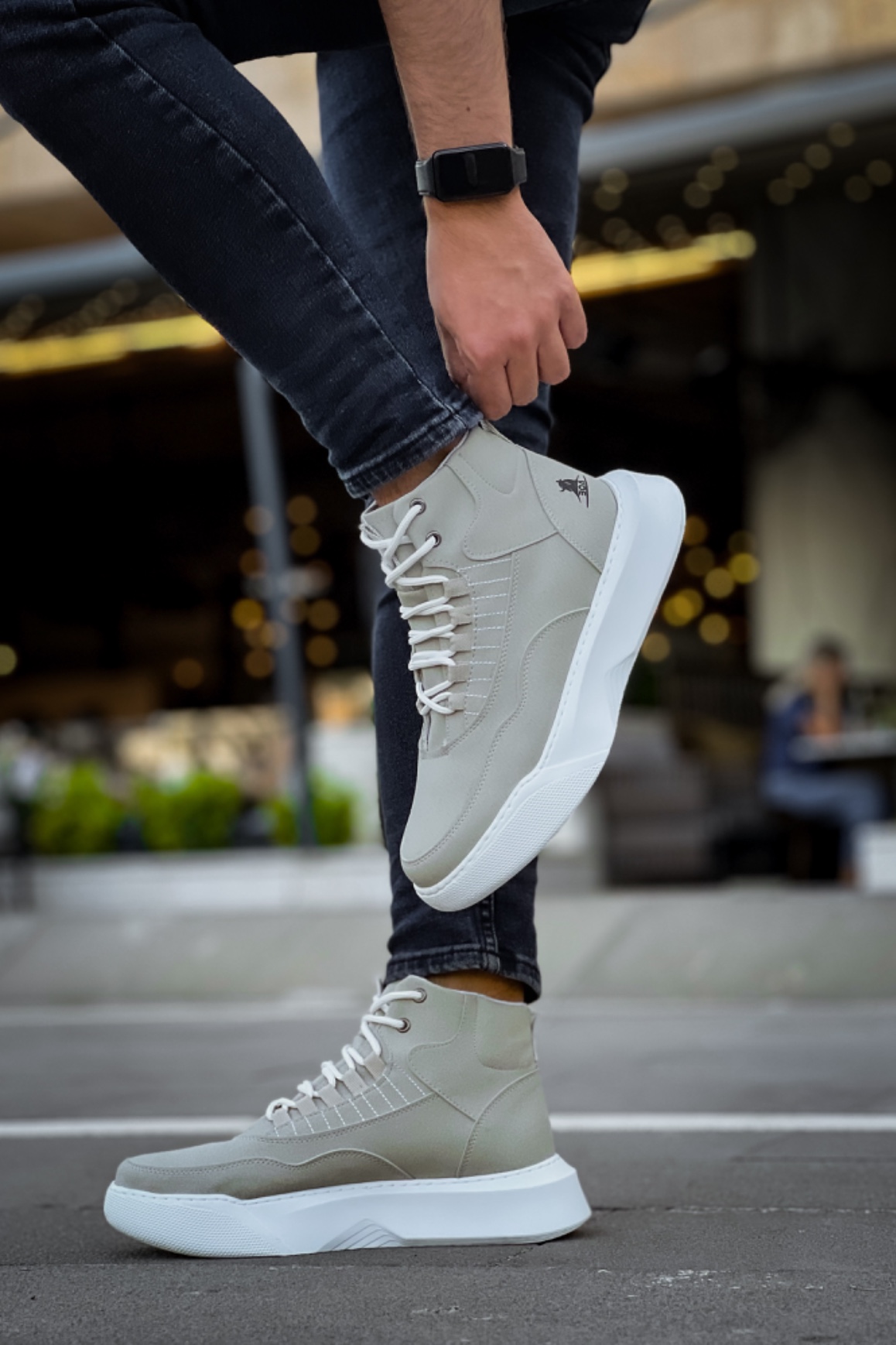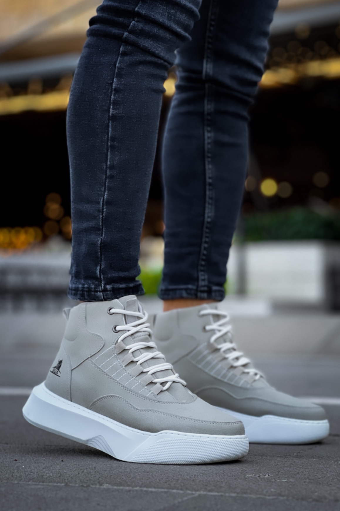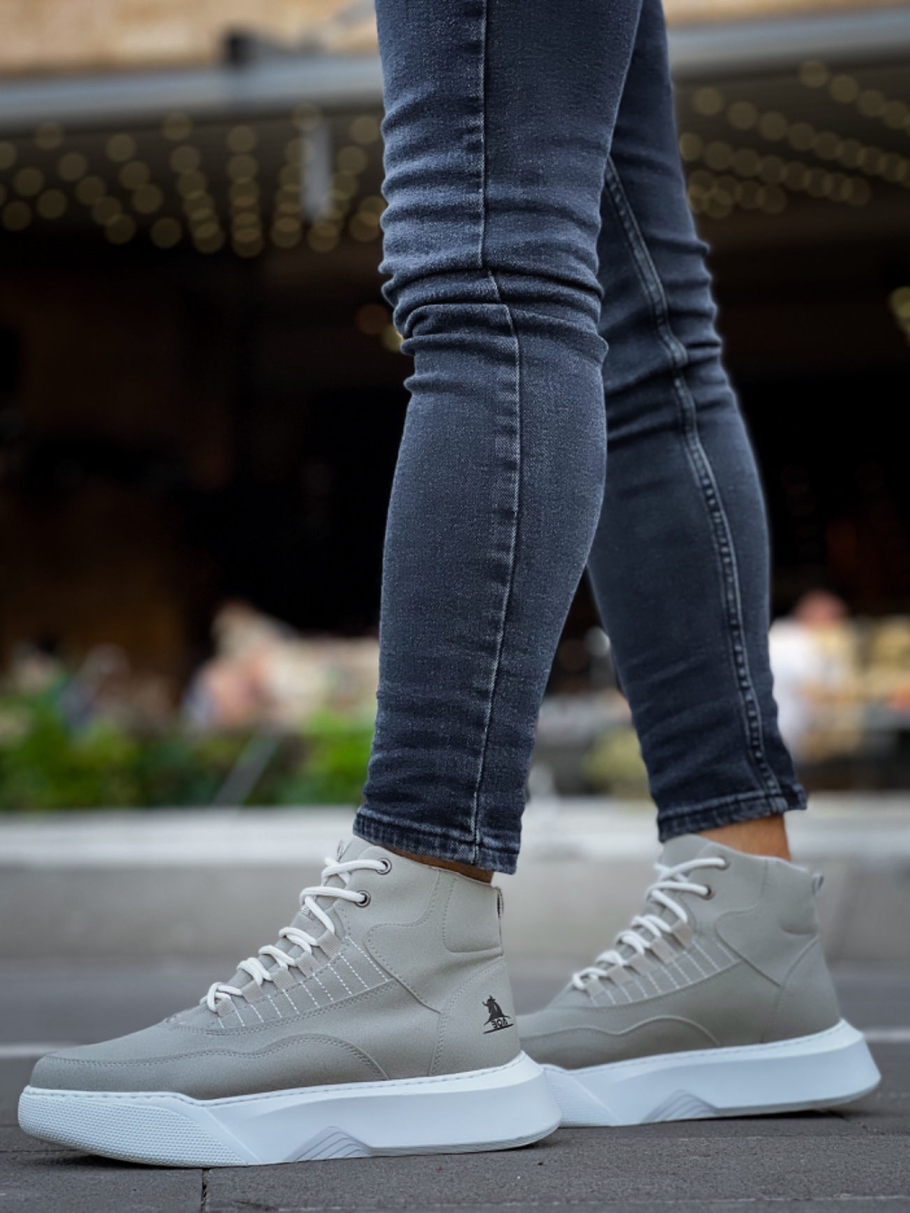 MirgeShoes Gri Bağcıklı Erkek Spor Bilek Bot Vinnex Yüksek Kalın BYZ Taban MRG010602636