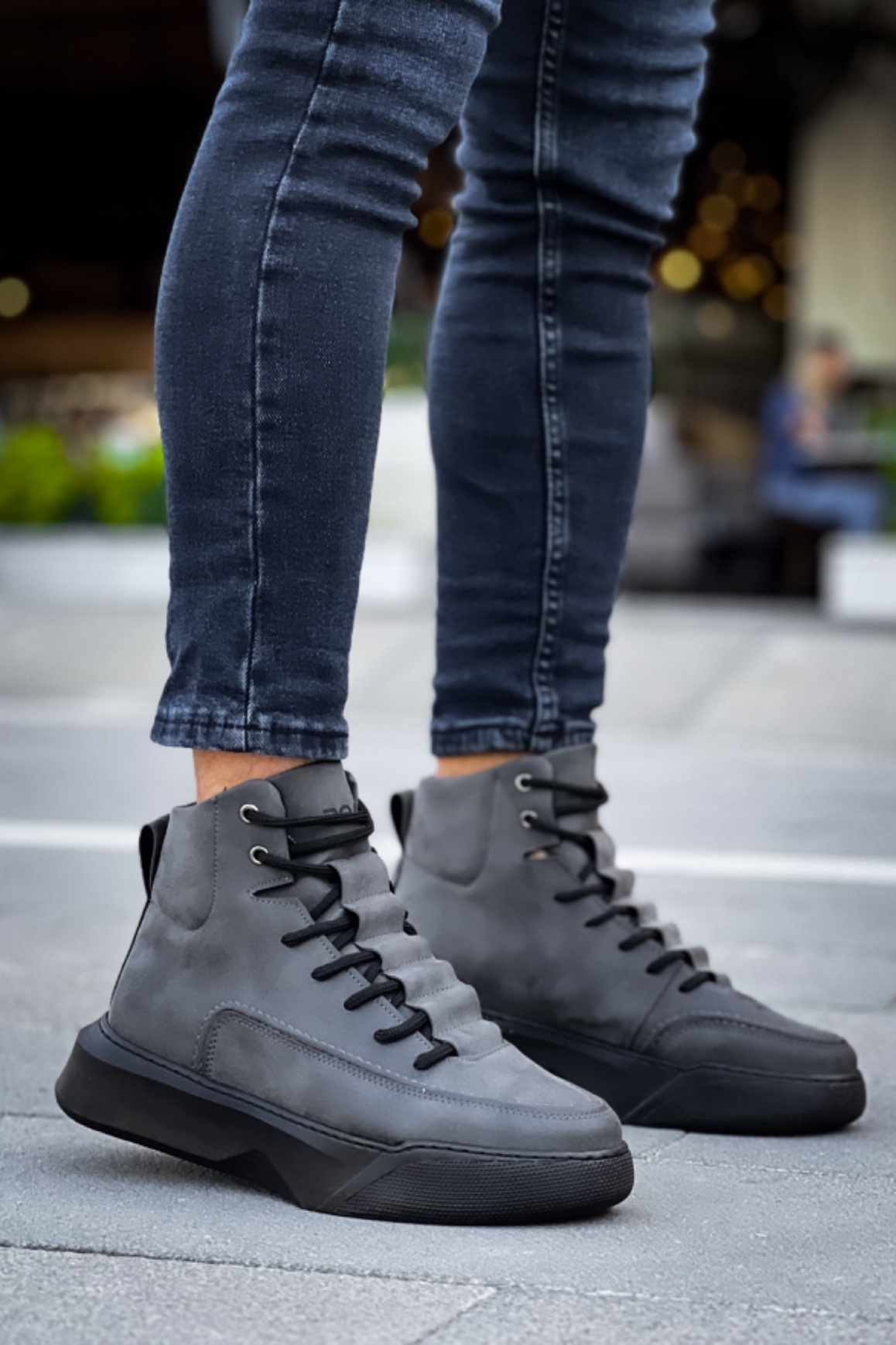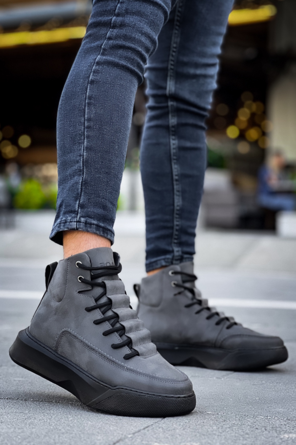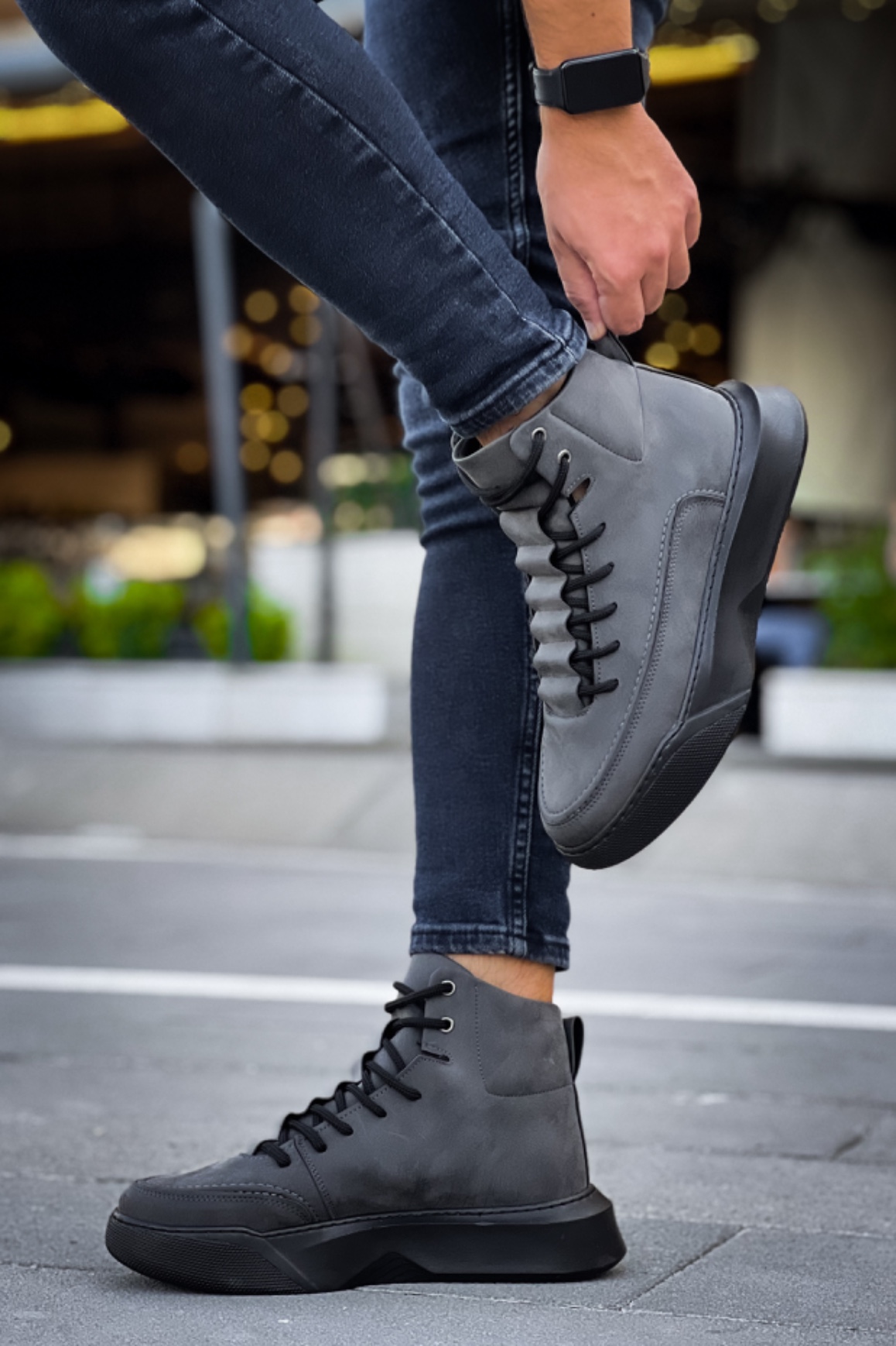 MirgeShoes Siyah Gizli Bağcıklı Erkek Spor Bot Yüksek Kalın SYH Taban MRG010602639
