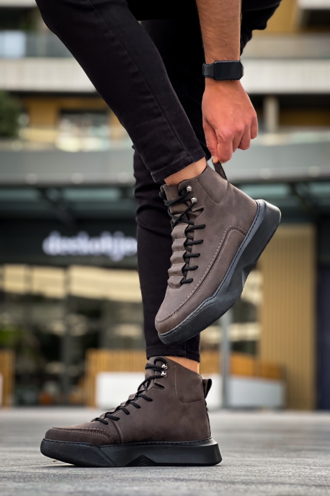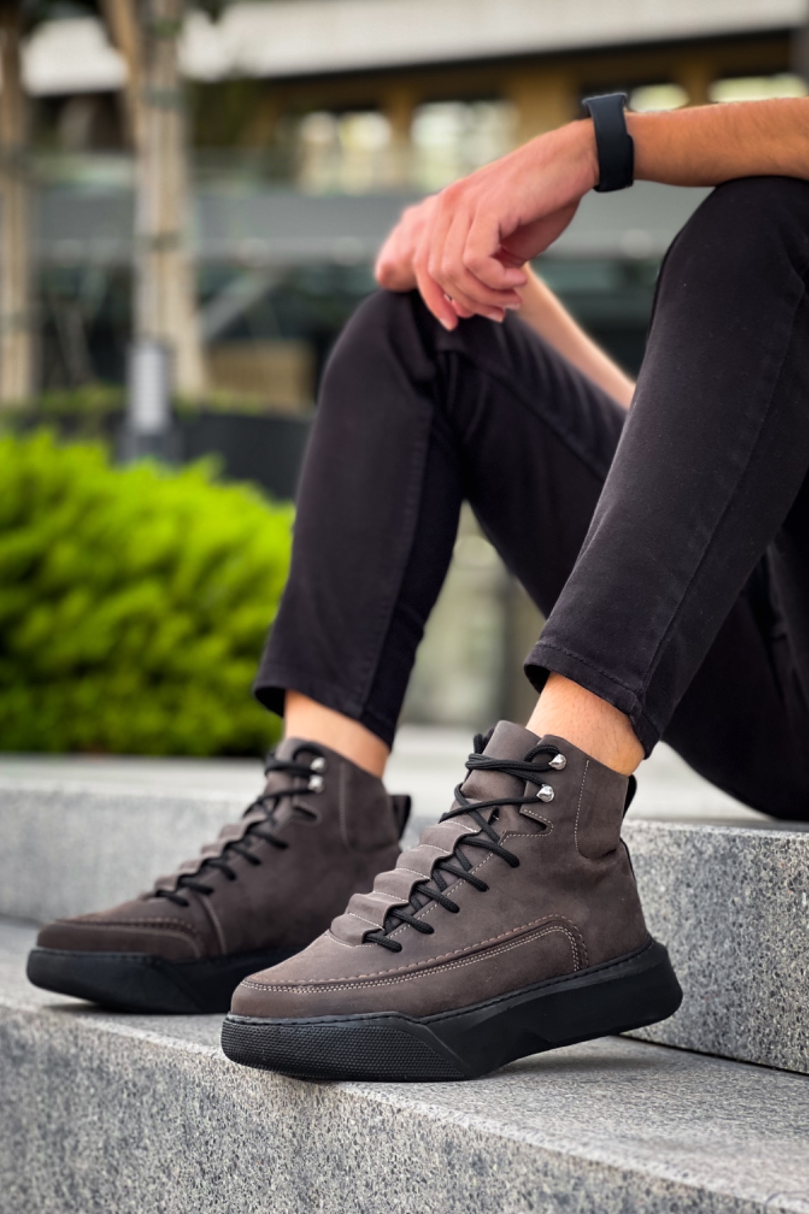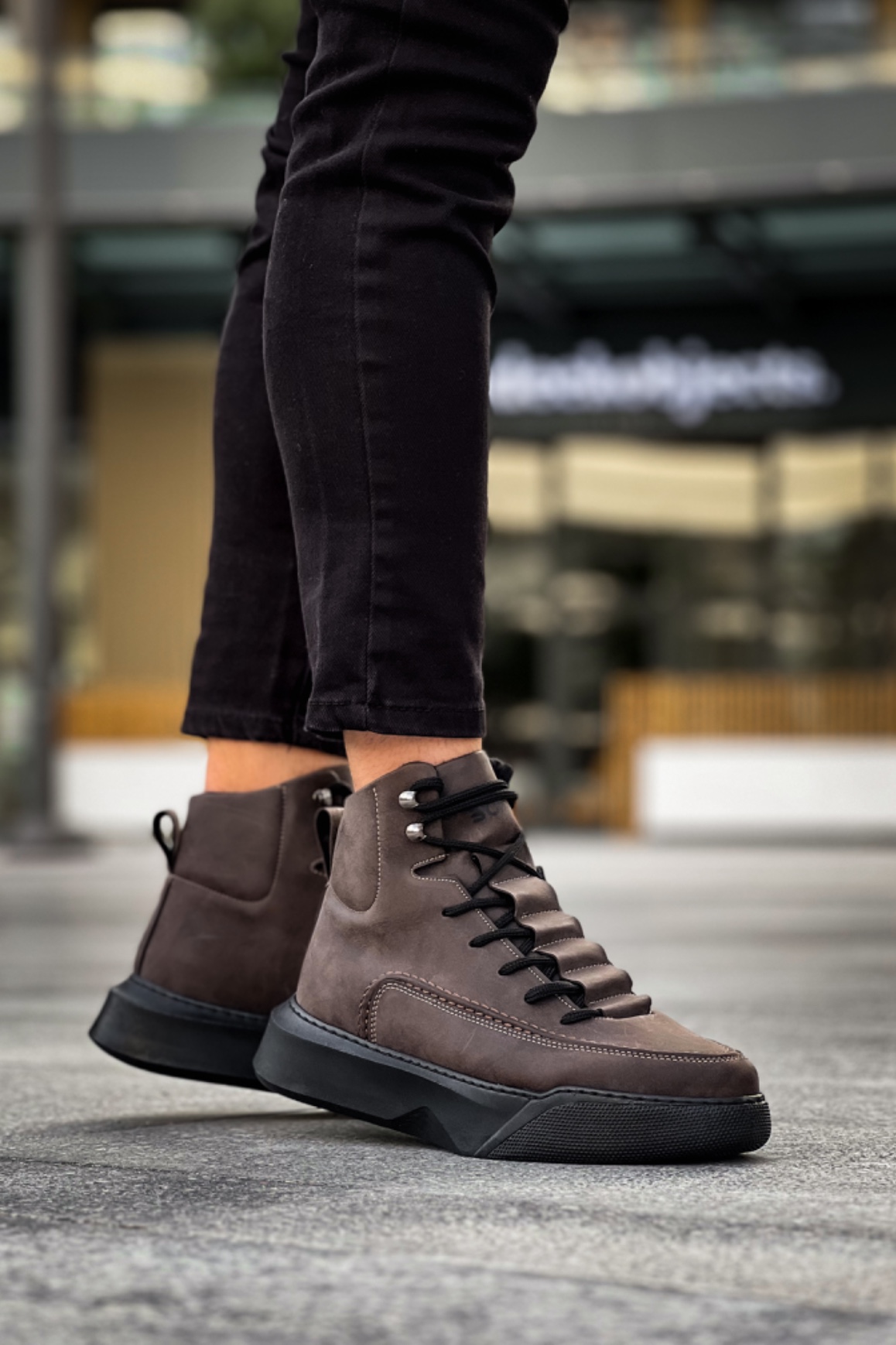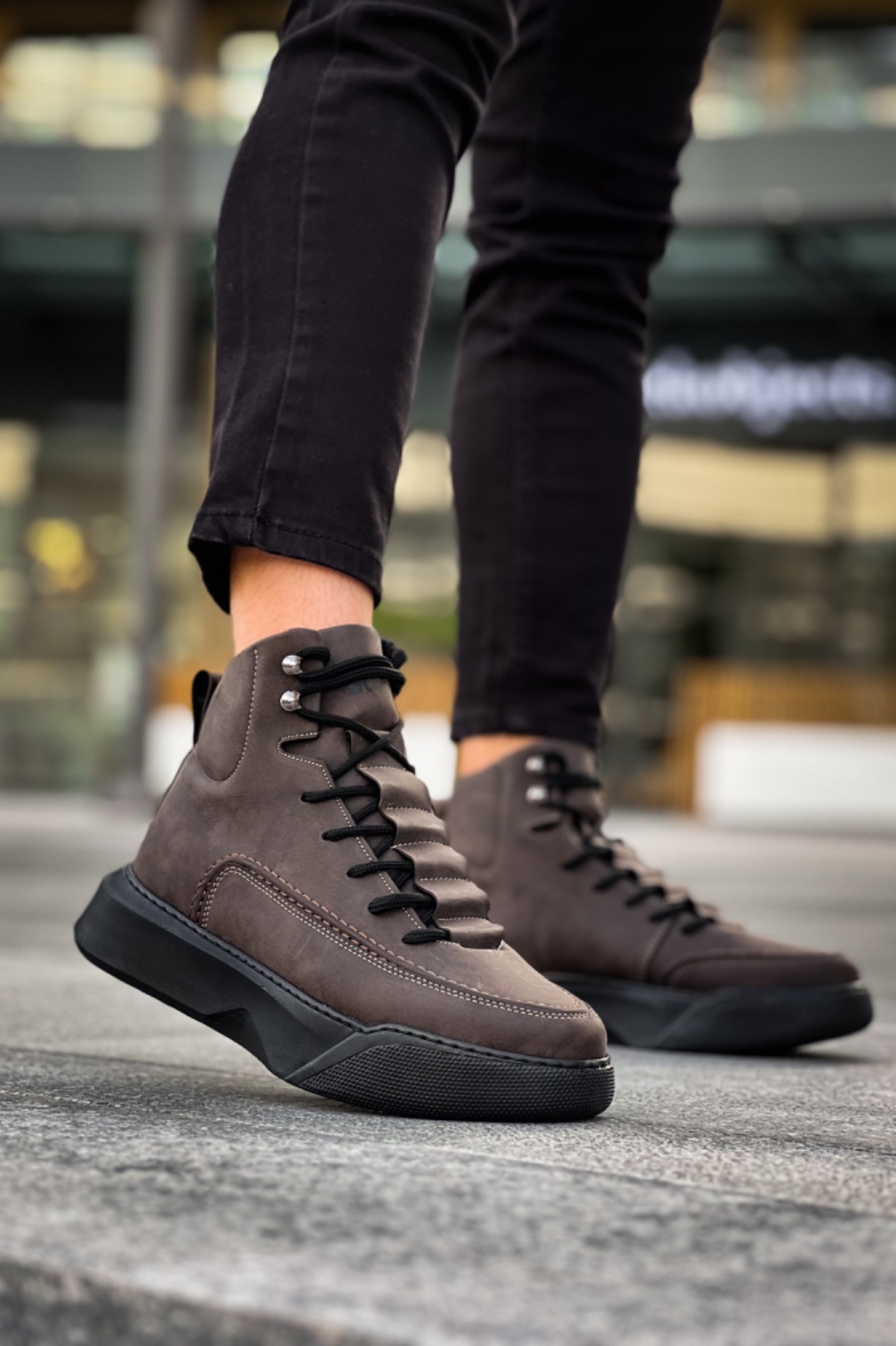 • MirgeShoes Kahve Gizli Bağcıklı Erkek Spor Bot Yüksek Kalın SYH Taban MRG010602639