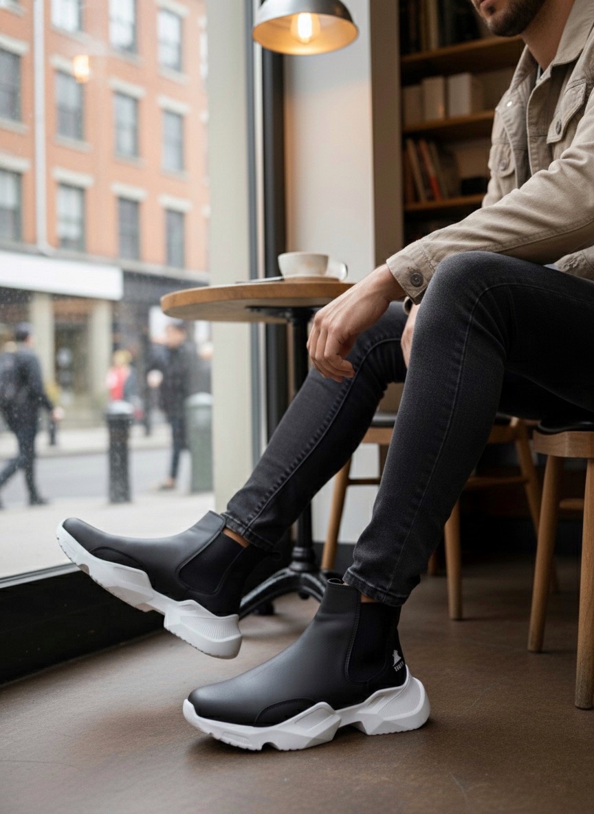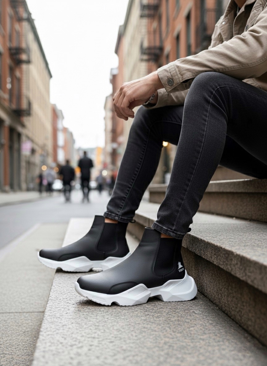 Erkek Bot MirgeShoes Siyah Bağcıksız Erkek Spor Bilek Bot Rahat Yüksek BYZ Taban MRG010602762