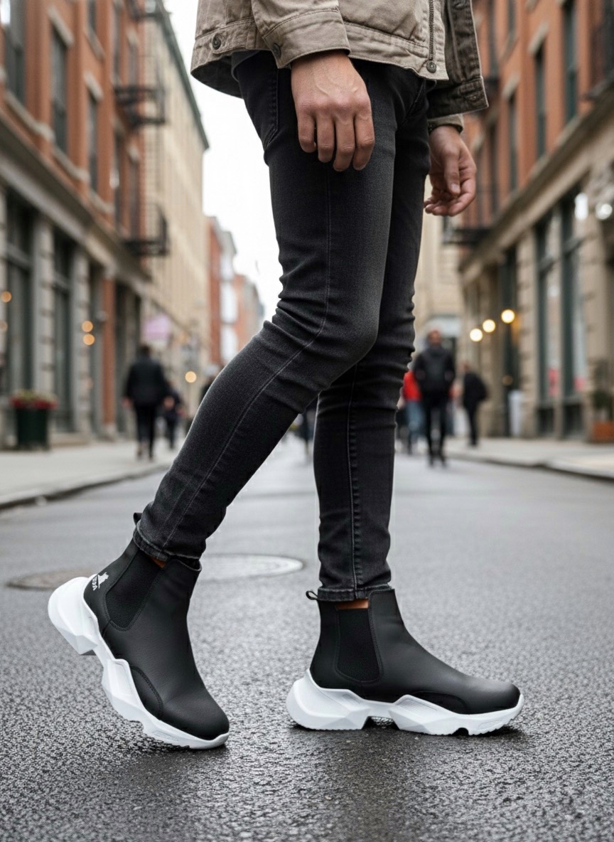 MirgeShoes Siyah Bağcıksız Erkek Spor Bilek Bot Rahat Yüksek BYZ Taban MRG010602762