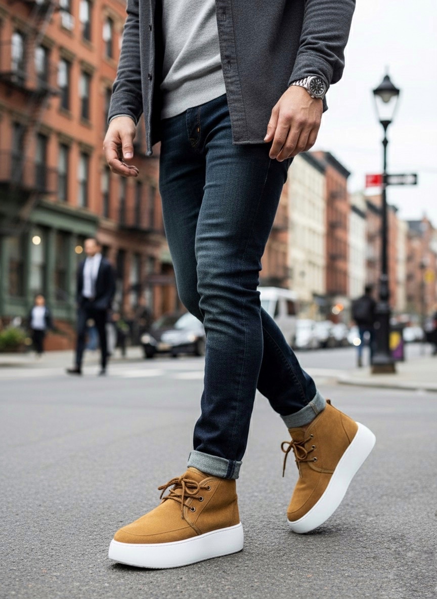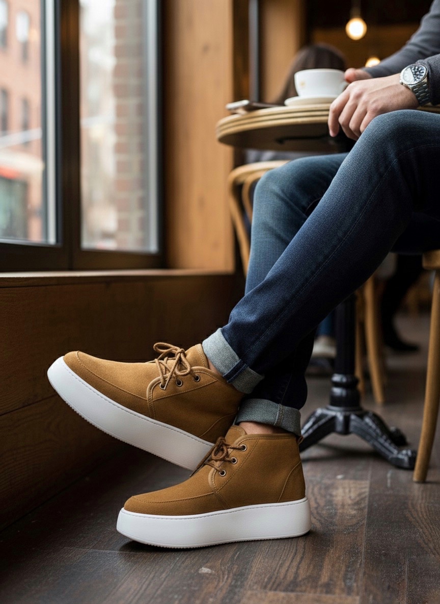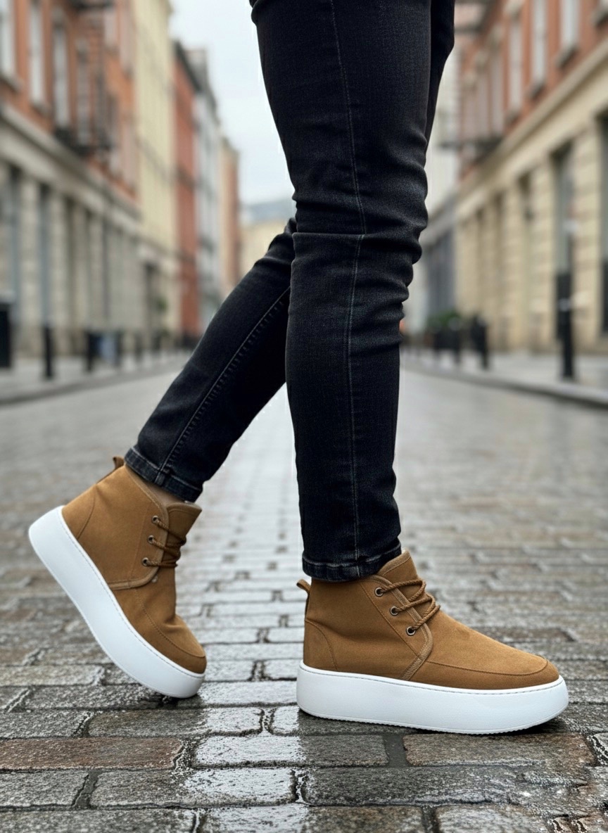 MirgeShoes Taba Bağcıklı Erkek Tarz Spor Bot İçi Kürklü Süet Kalın BYZ Taban MRG010602868