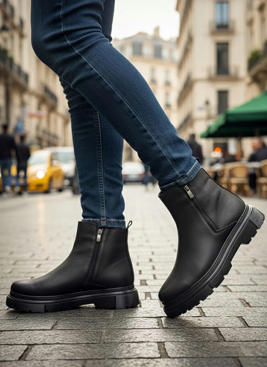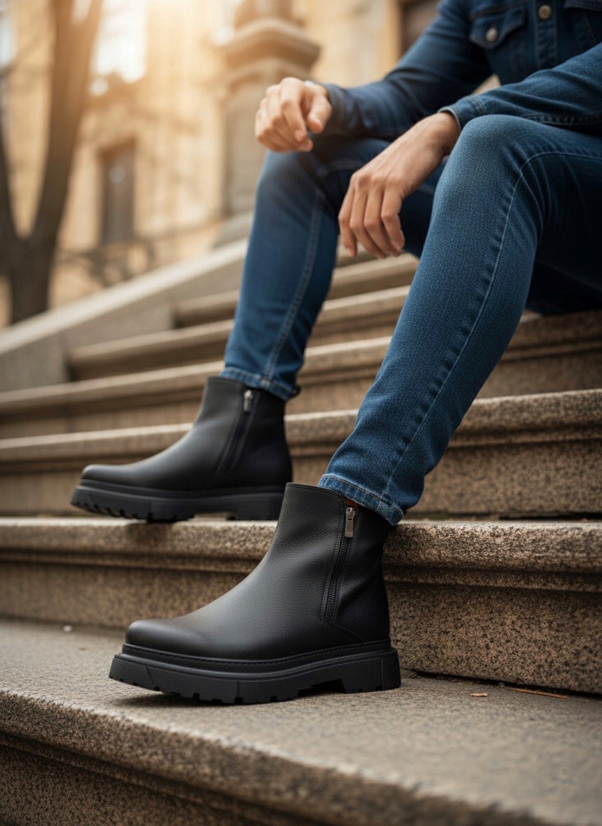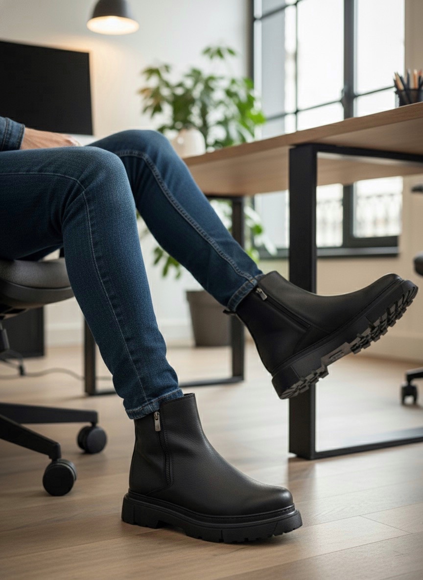 Erkek Bot MirgeShoes Siyah Çift Fermuarlı Erkek Yarım Bilek Bot Termo SYH Taban MRG010603095