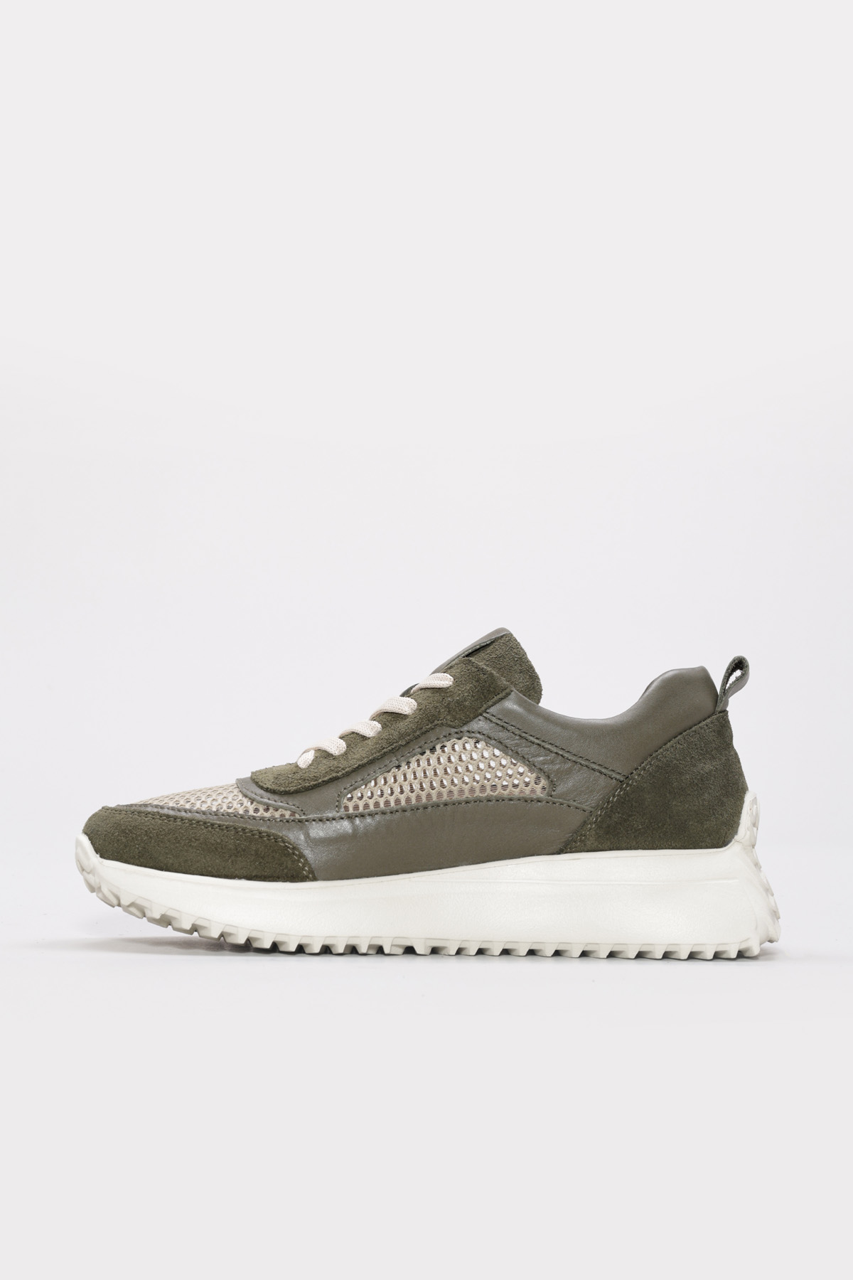 • MirgeShoes Haki Bağcıklı Kadın Casual Ayakkabı İçi Dışı Hakiki Deri MRG012662619248