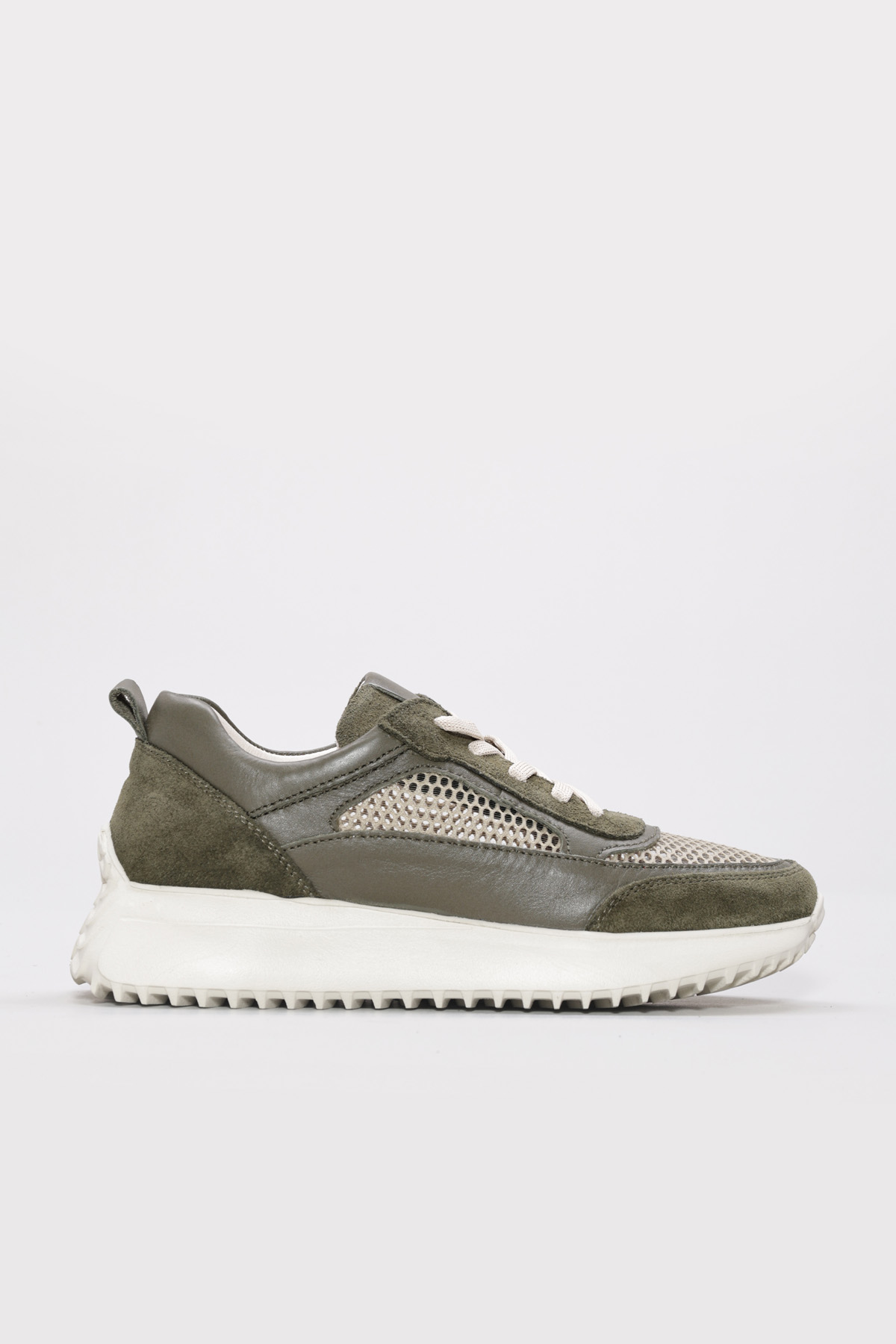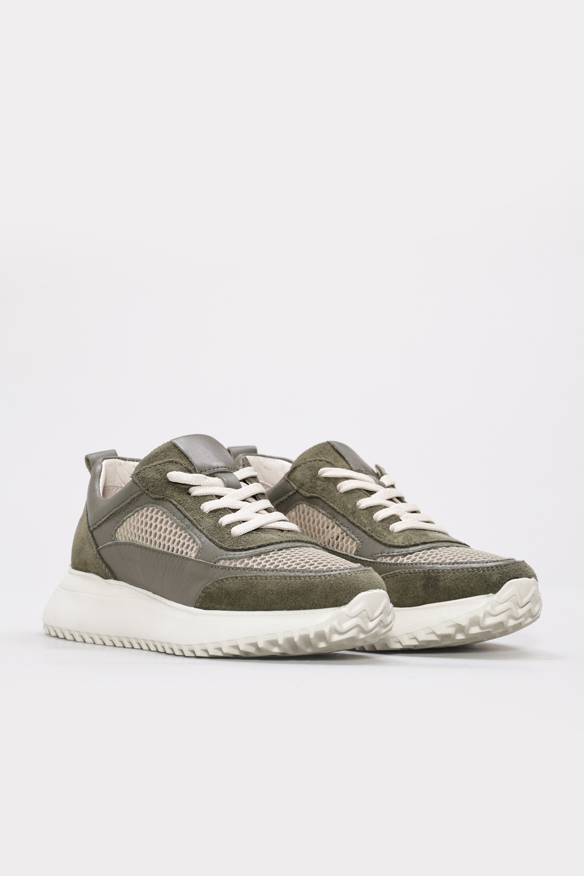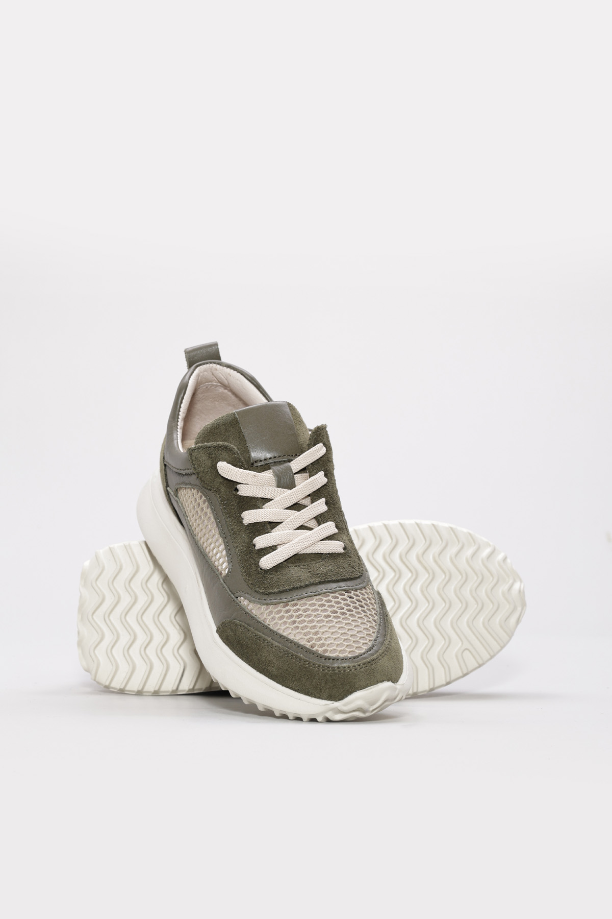 MirgeShoes Haki Bağcıklı Kadın Casual Ayakkabı İçi Dışı Hakiki Deri MRG012662619248