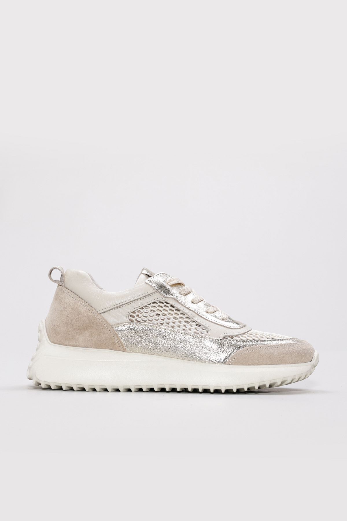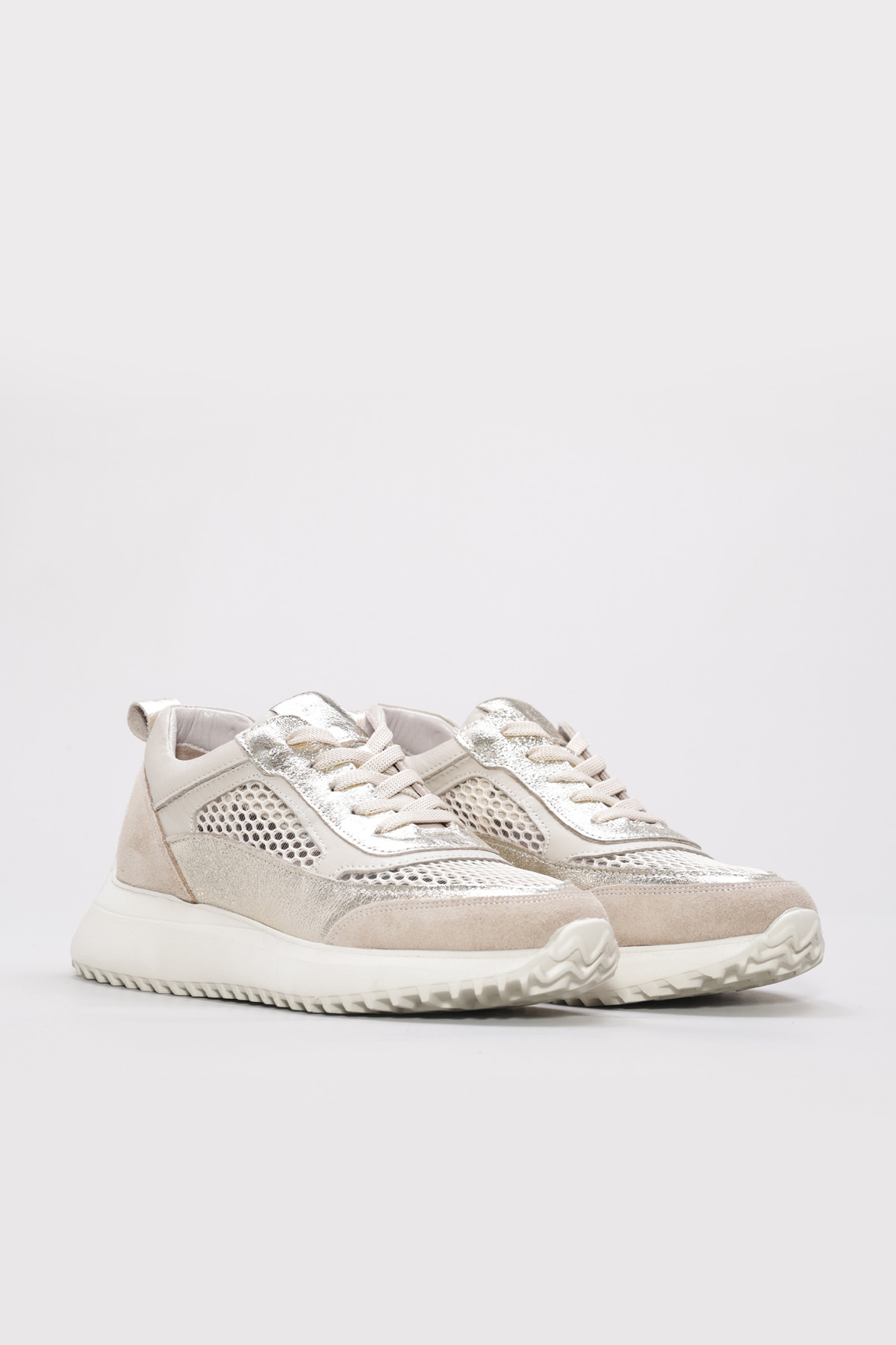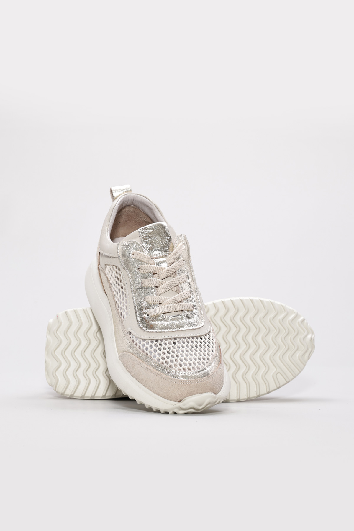 • MirgeShoes Bej-Altın Bağcıklı Kadın Casual Ayakkabı İçi Dışı Hakiki Deri MRG012662619248