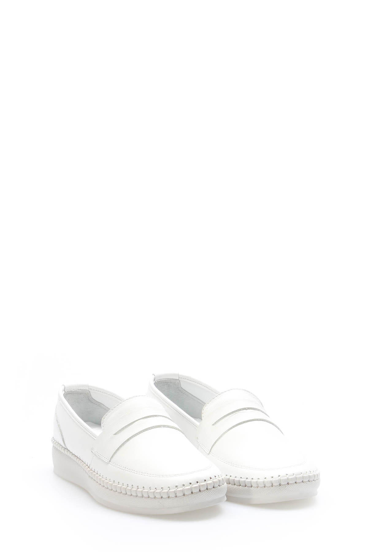 Kadın MirgeShoes Beyaz Bağcıksız Kadın Yürüyüş Ayakkabısı İçi Dışı Hakiki Deri MRG012942612236