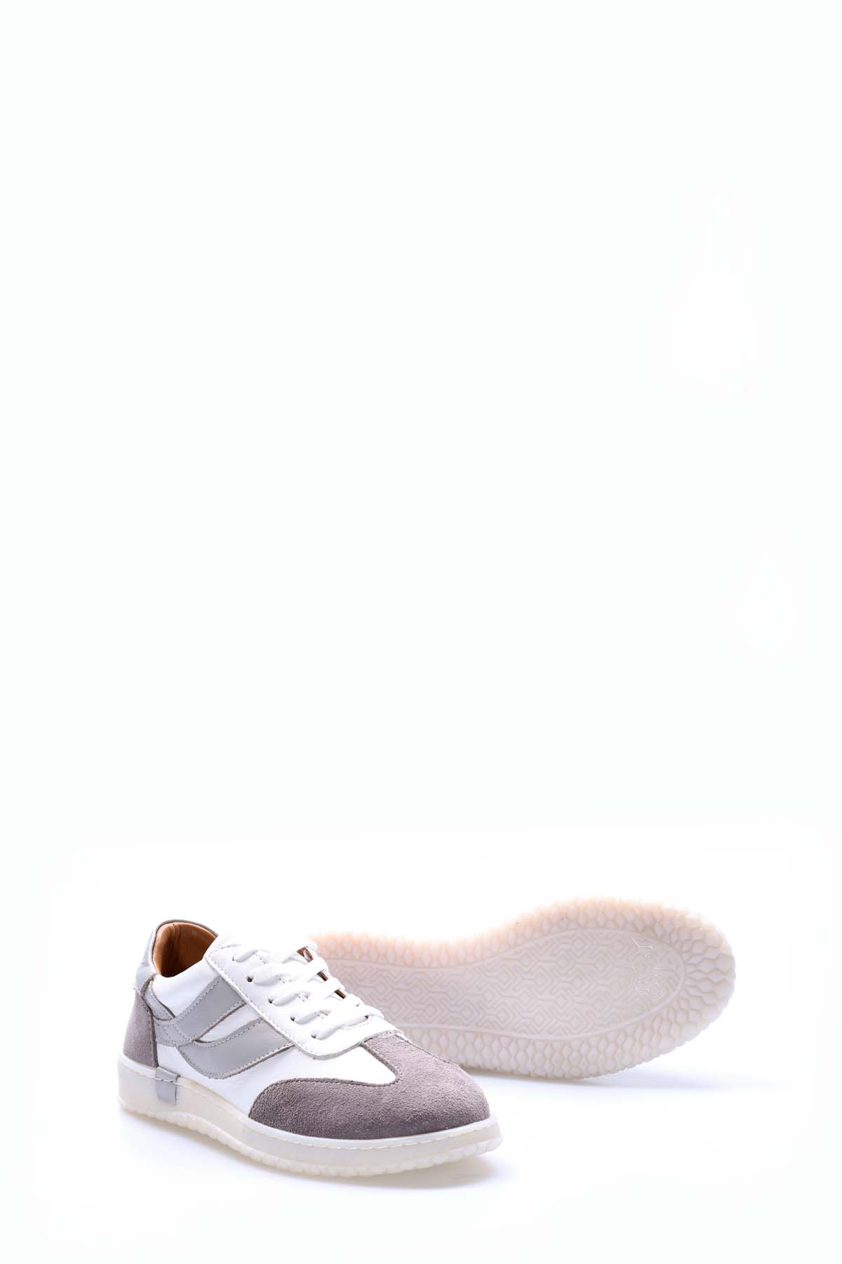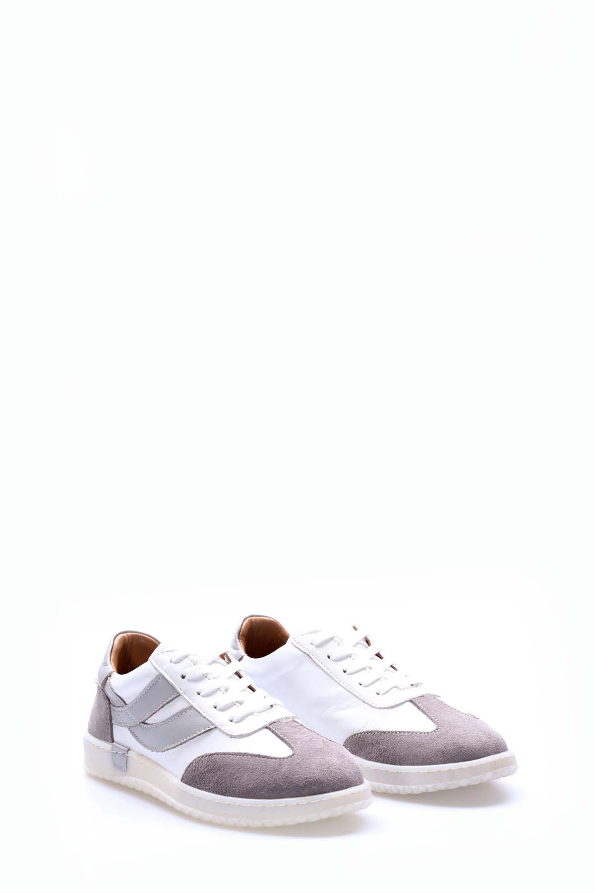 • MirgeShoes Beyaz Bağcıklı Kadın Casual Ayakkabı İçi Dışı Hakiki Deri MRG013762612221