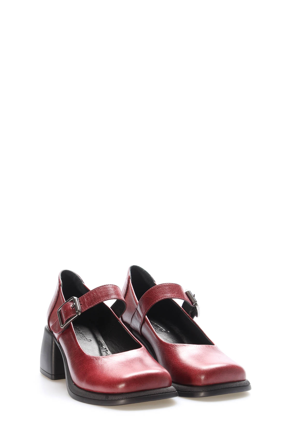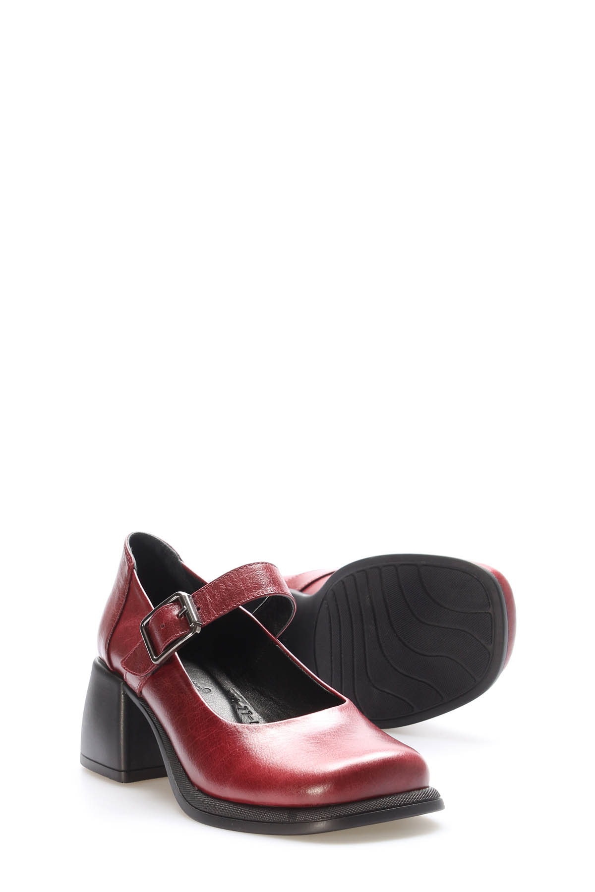 MirgeShoes Bordo Kadın Kalın Topuklu Ayakkabı İçi Dışı Hakiki Deri MRG0134726188220