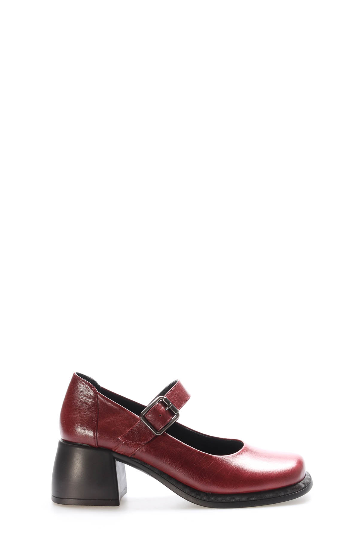 Kadın MirgeShoes Bordo Kadın Kalın Topuklu Ayakkabı İçi Dışı Hakiki Deri MRG0134726188220