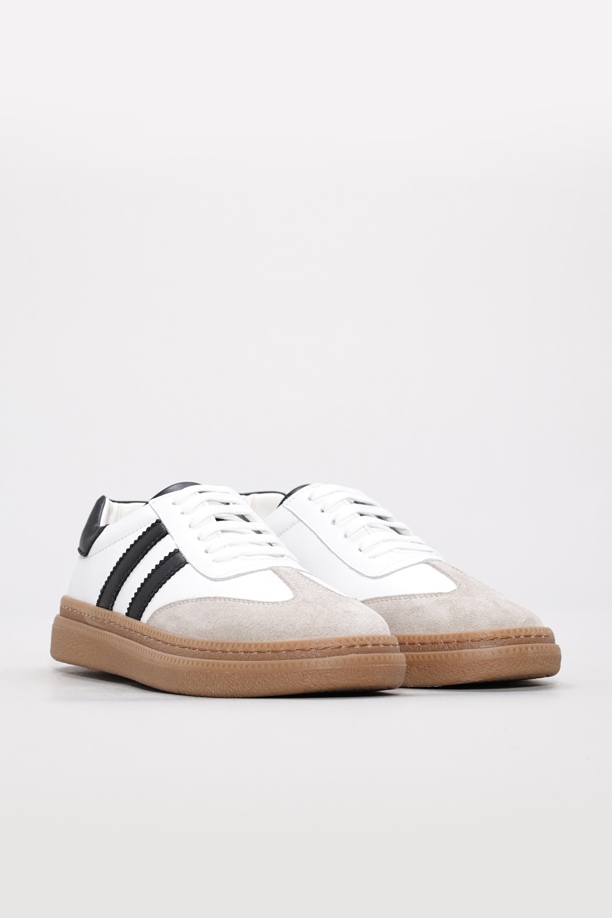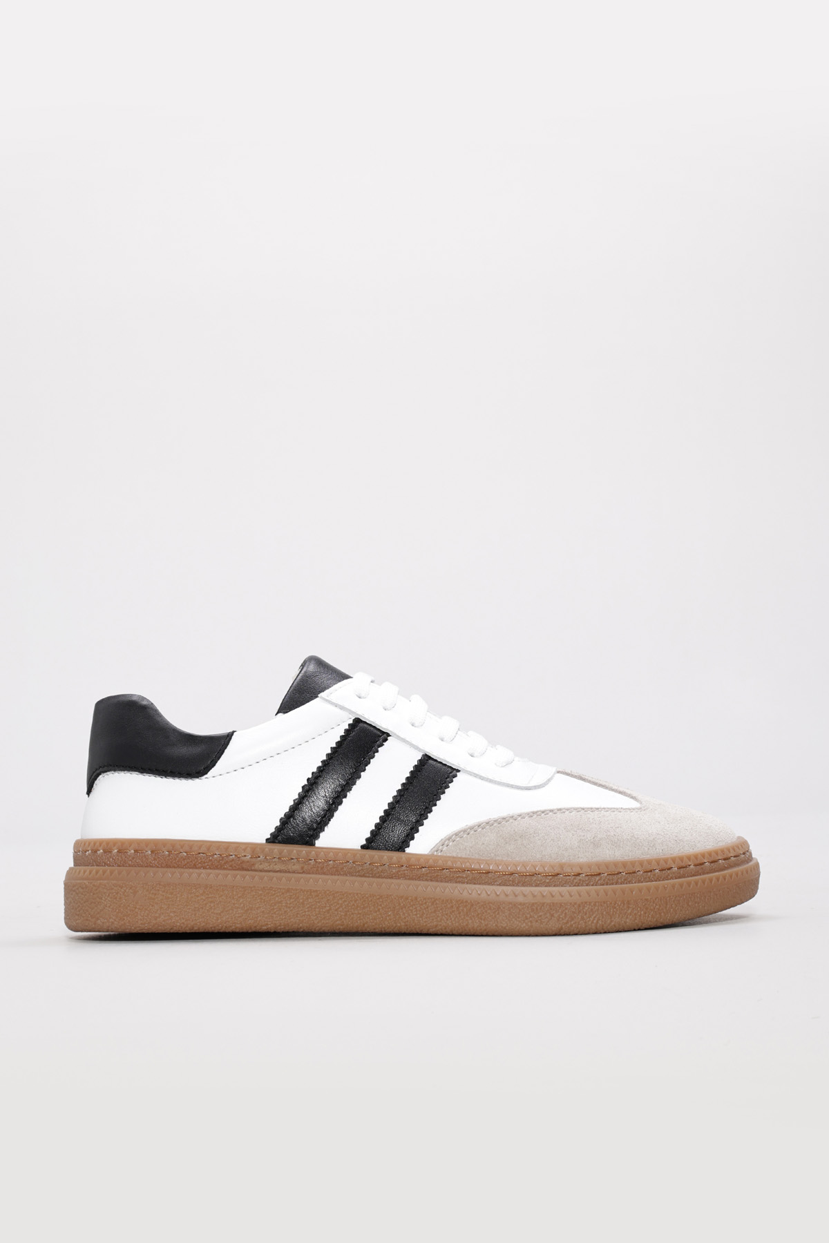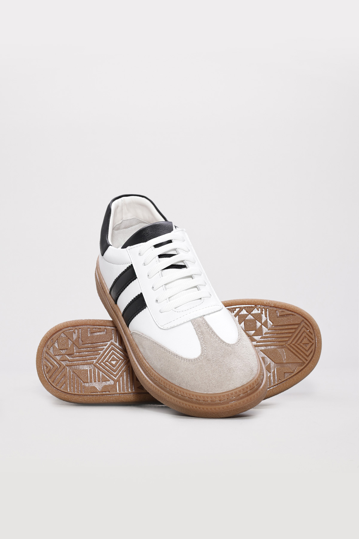 MirgeShoes Beyaz-Siyah Bağcıklı Kadın Casual Ayakkabı İçi Dışı Hakiki Deri MRG011064261345