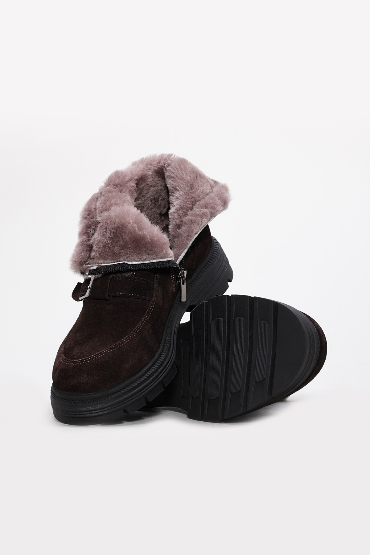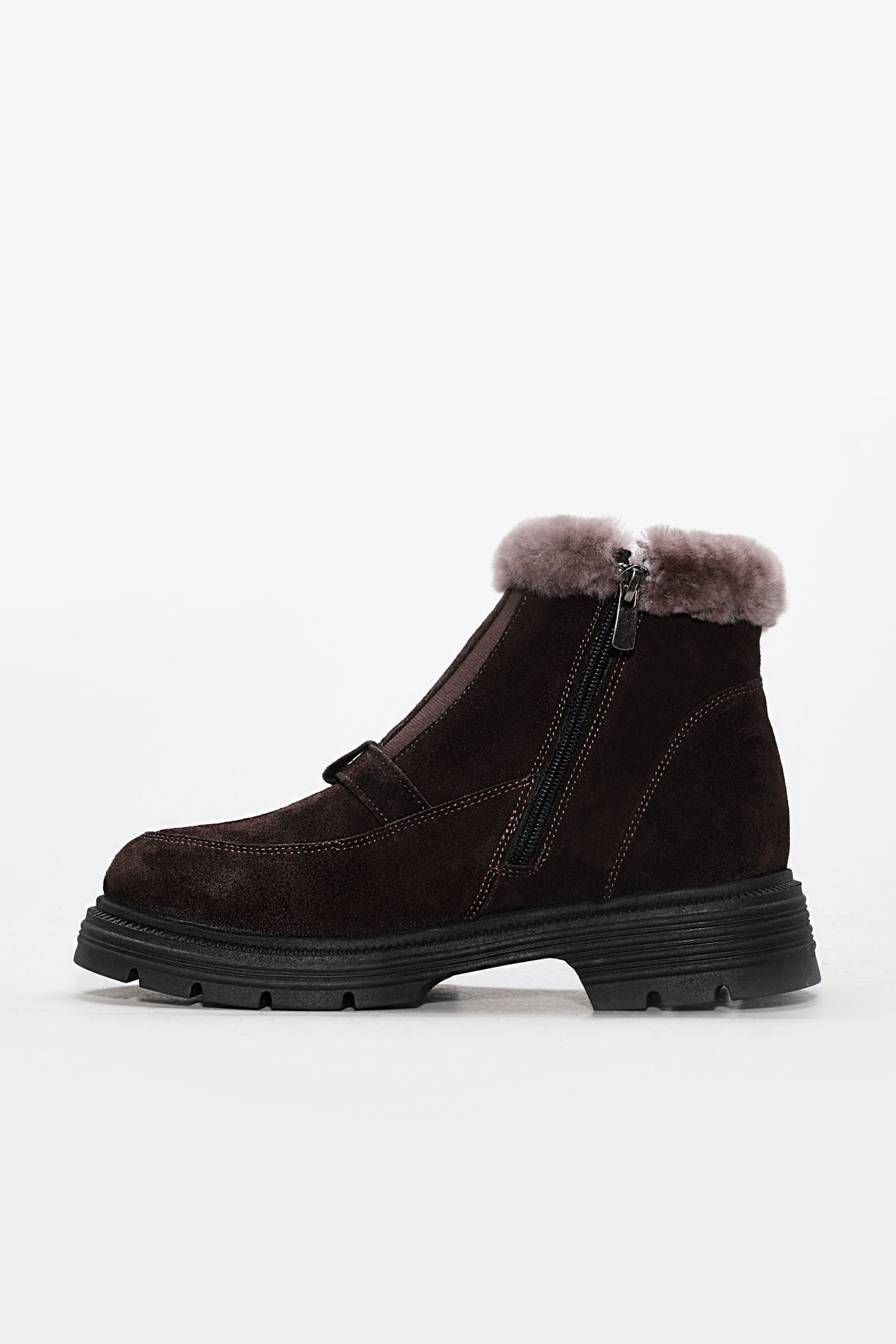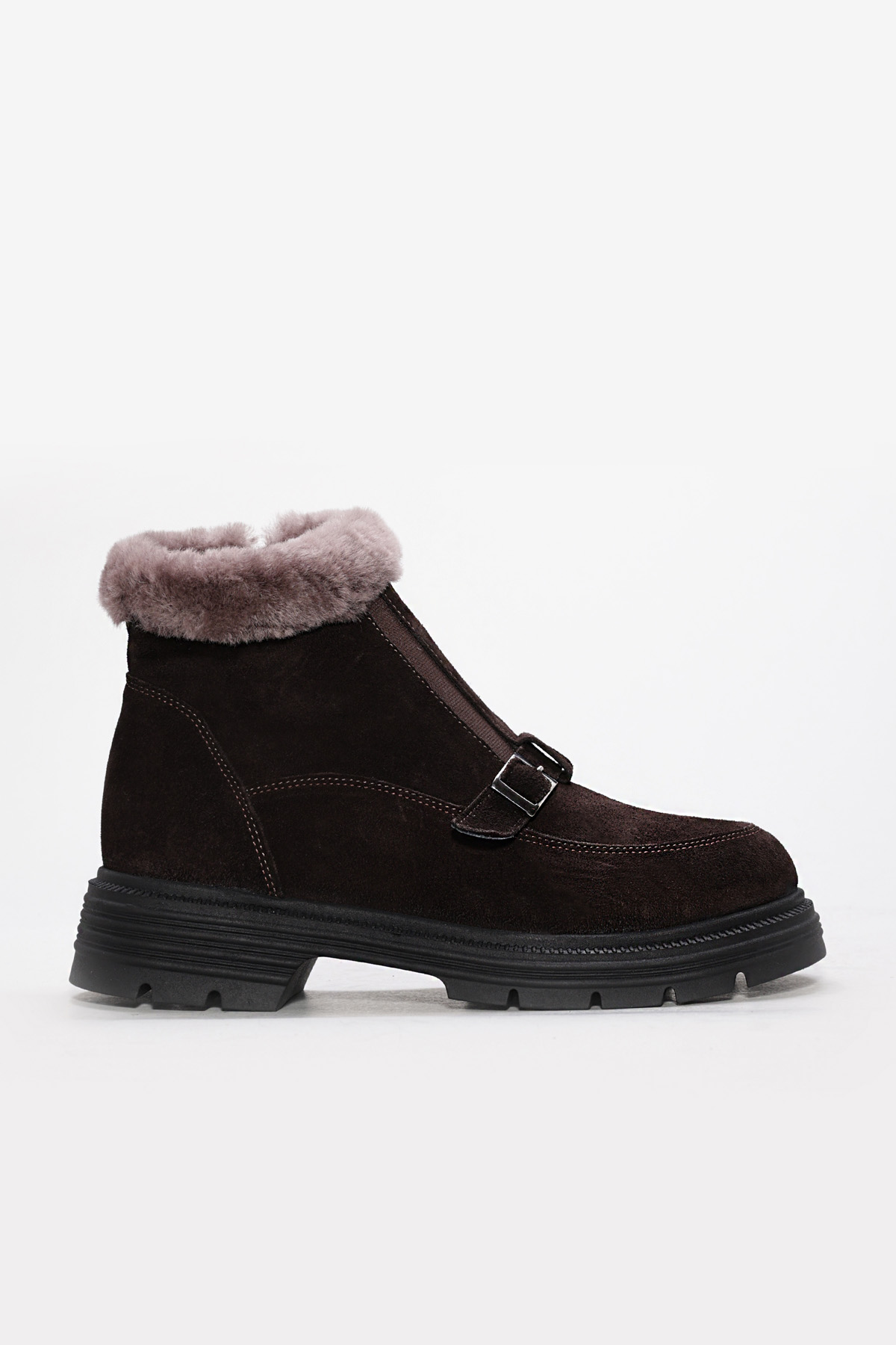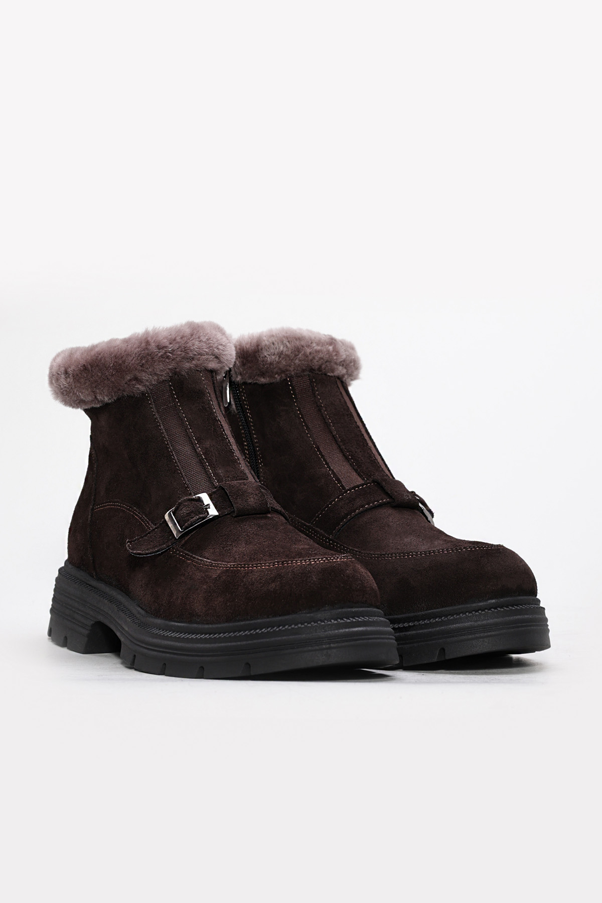 MirgeShoes Kahve Fermuarlı Kadın Bot İçi Kürklü Dışı Hakiki Süet Deri MRG0134711261781151