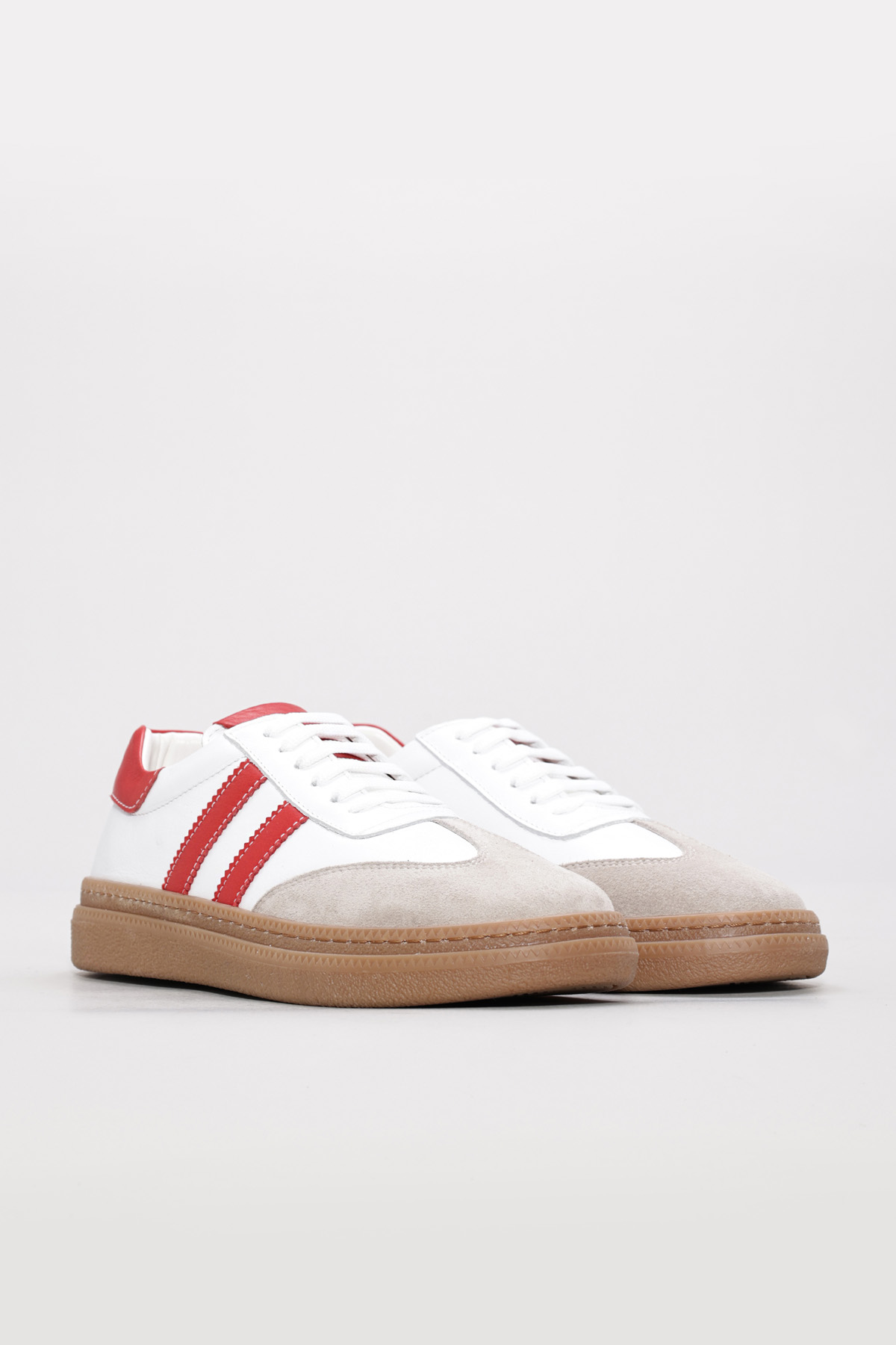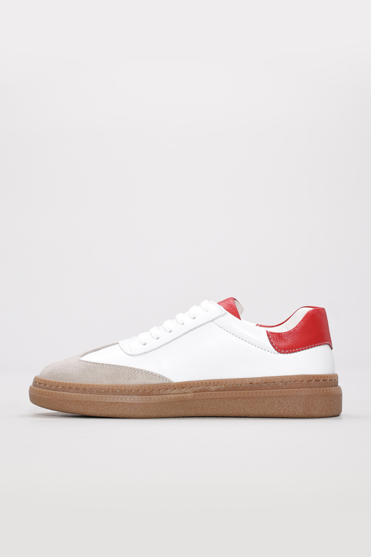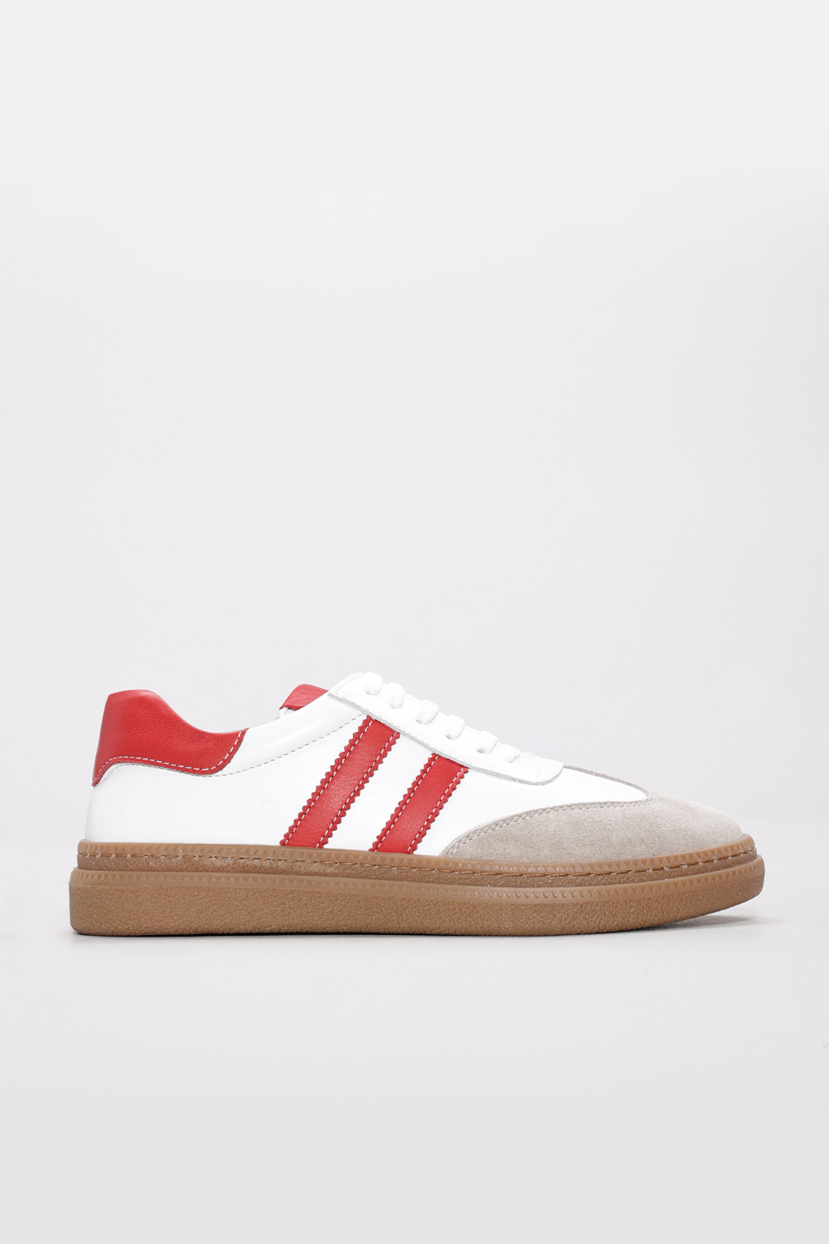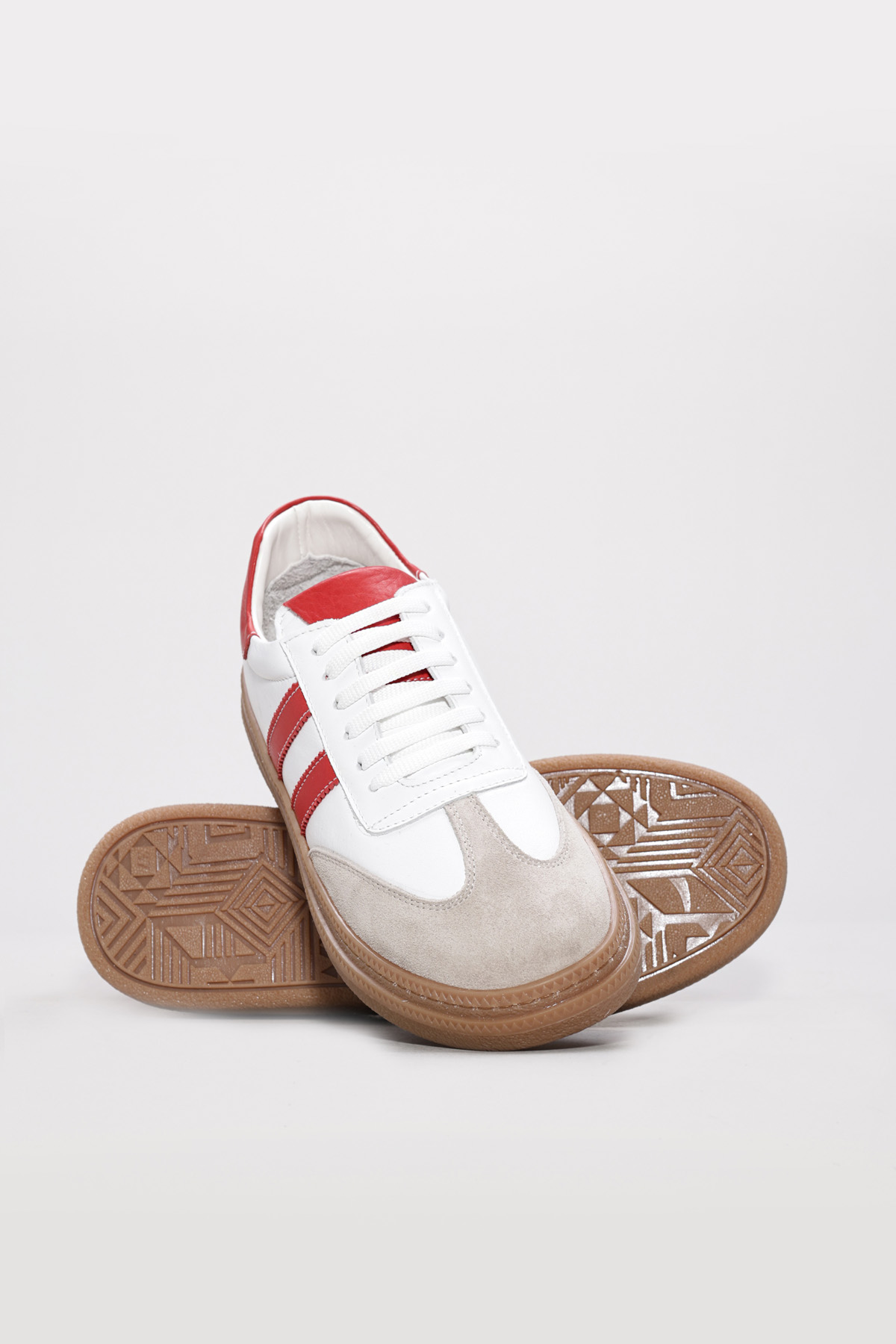 Kadın MirgeShoes Beyaz-Kırmızı Bağcıklı Kadın Casual Ayakkabı İçi Dışı Hakiki Deri MRG011064261345