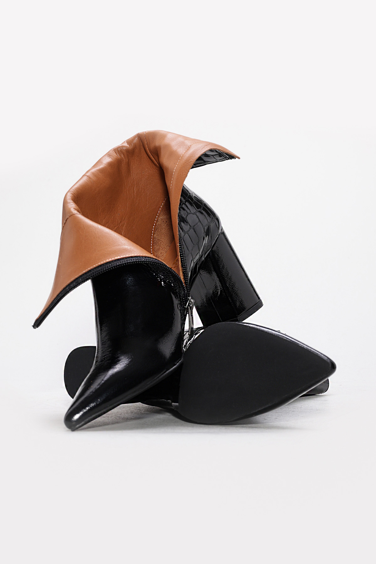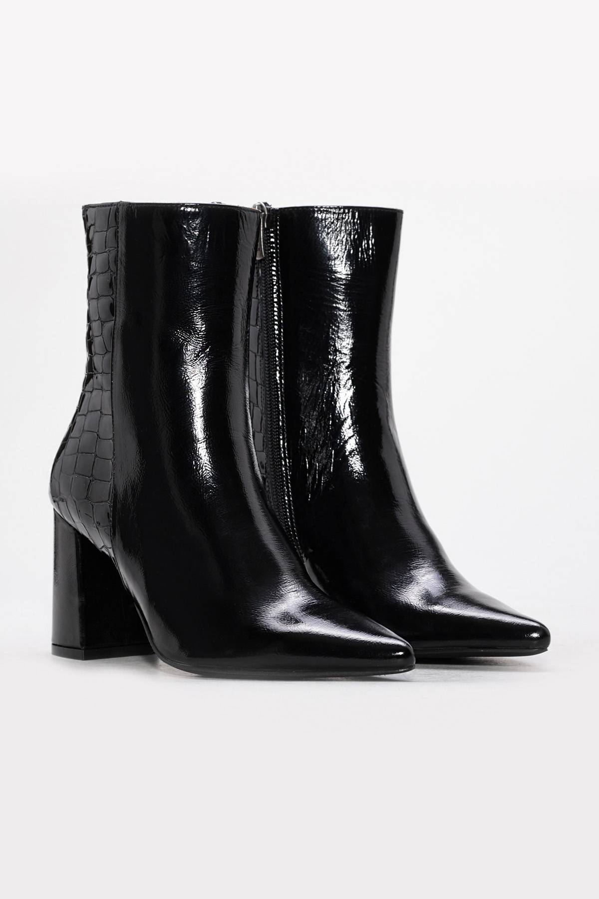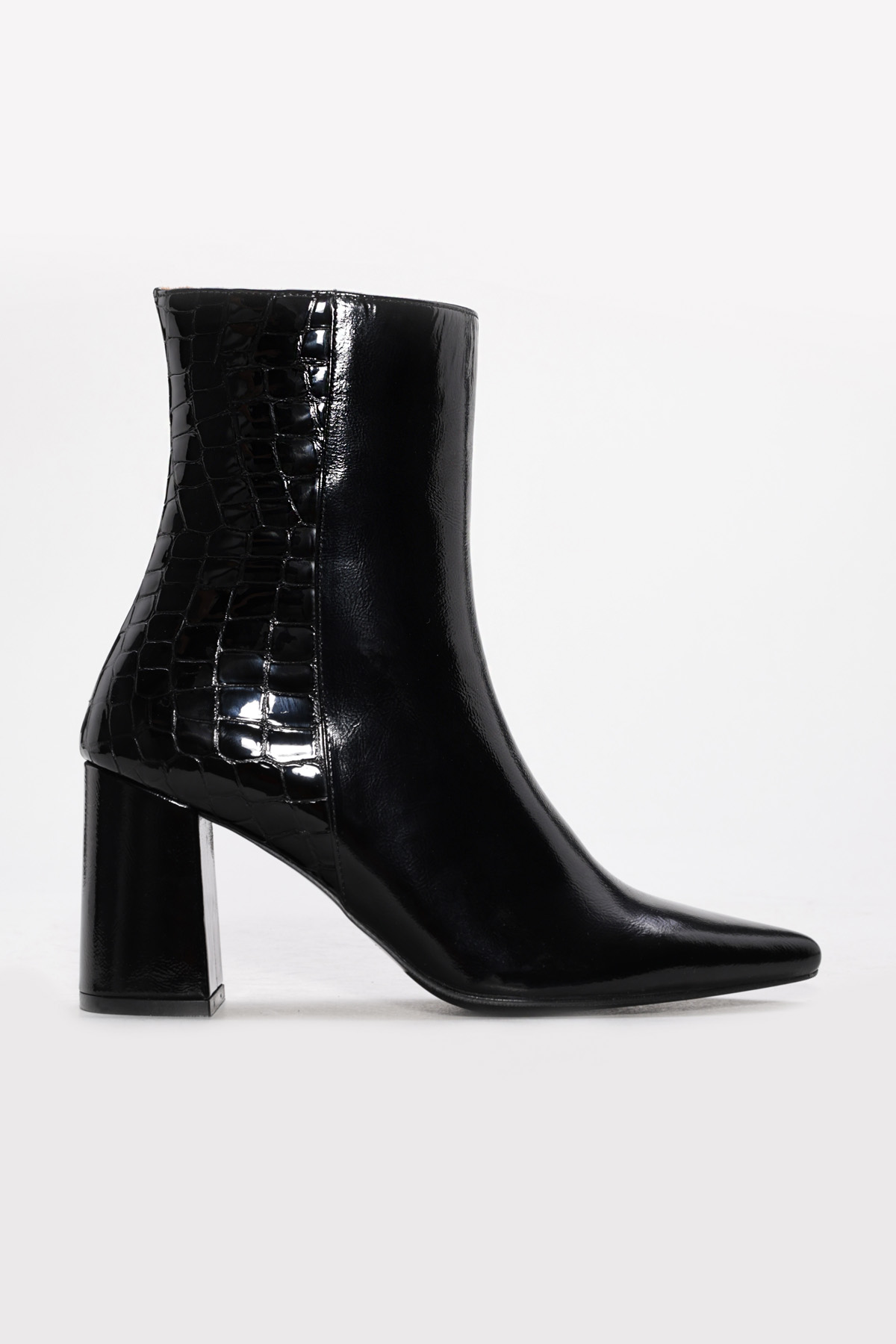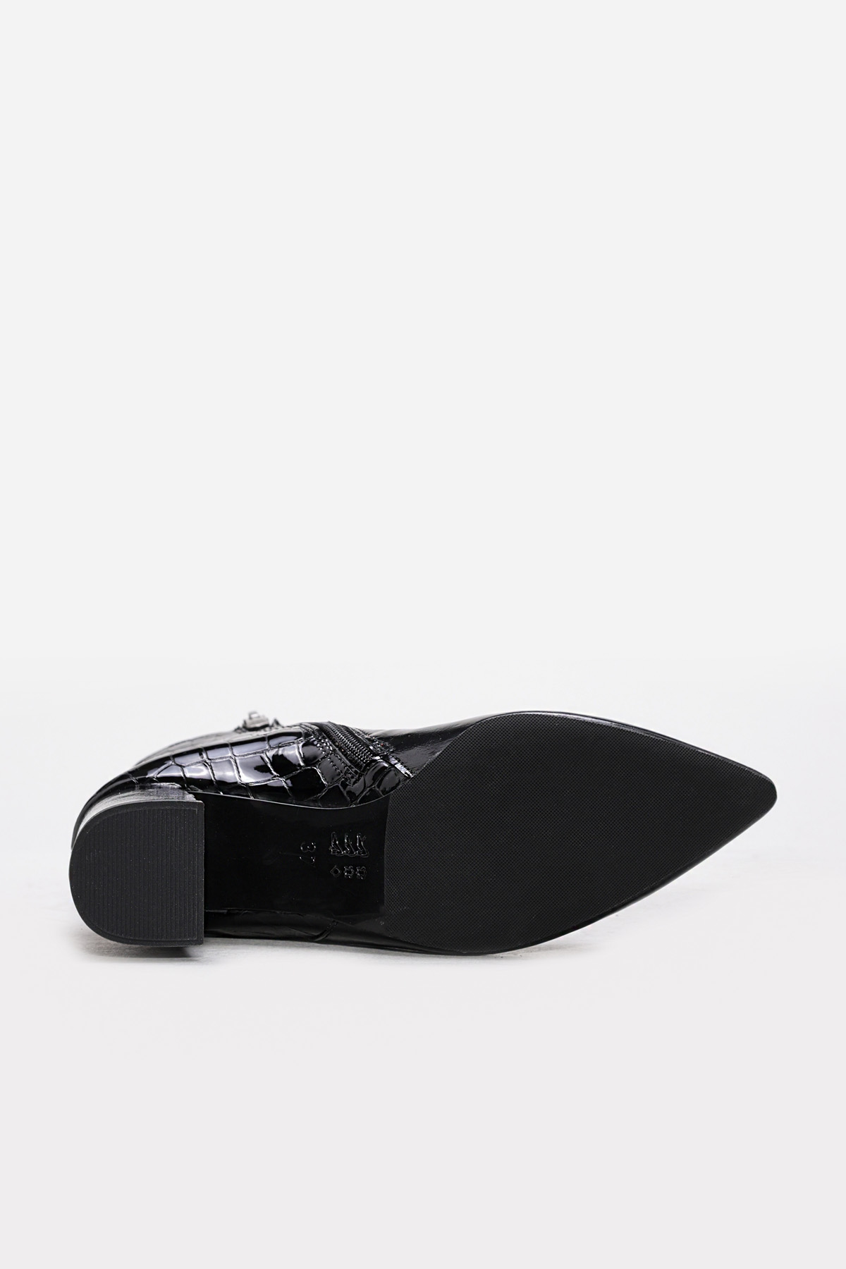 Kadın MirgeShoes Siyah Fermuarlı Kadın Kalın Topuklu Bot Hakiki Kroko Deri MRG0134542613428
