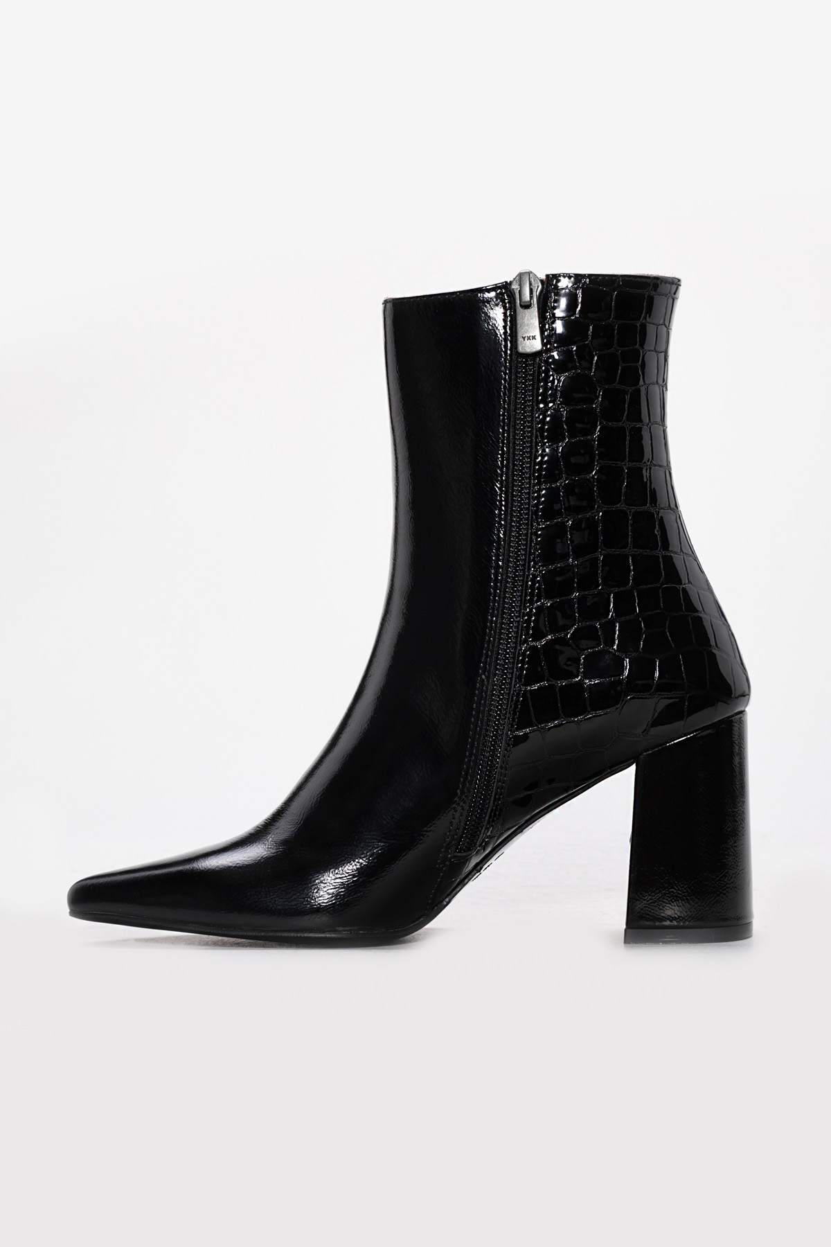 • MirgeShoes Siyah Fermuarlı Kadın Kalın Topuklu Bot Hakiki Kroko Deri MRG0134542613428