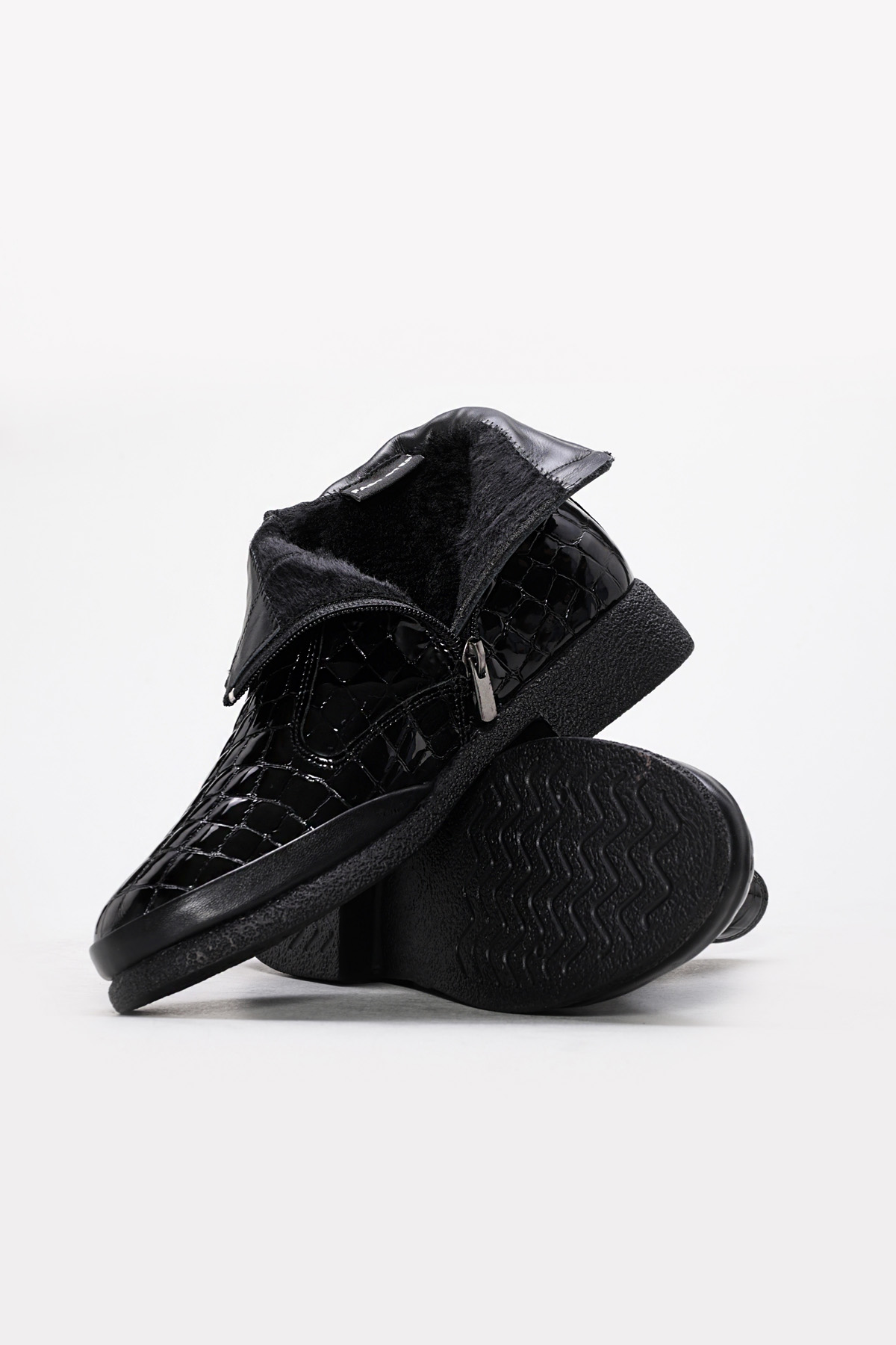 Kadın MirgeShoes Siyah Fermuarlı Kadın Klasik Bot Hakiki Kroko Deri MRG0134719261668471