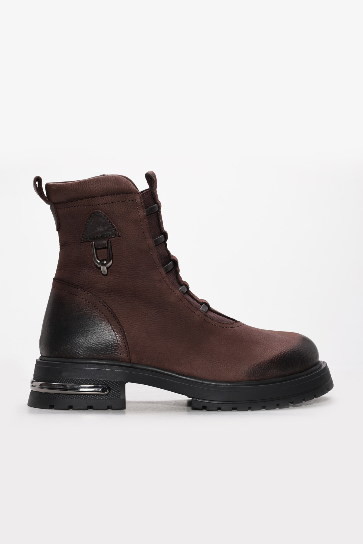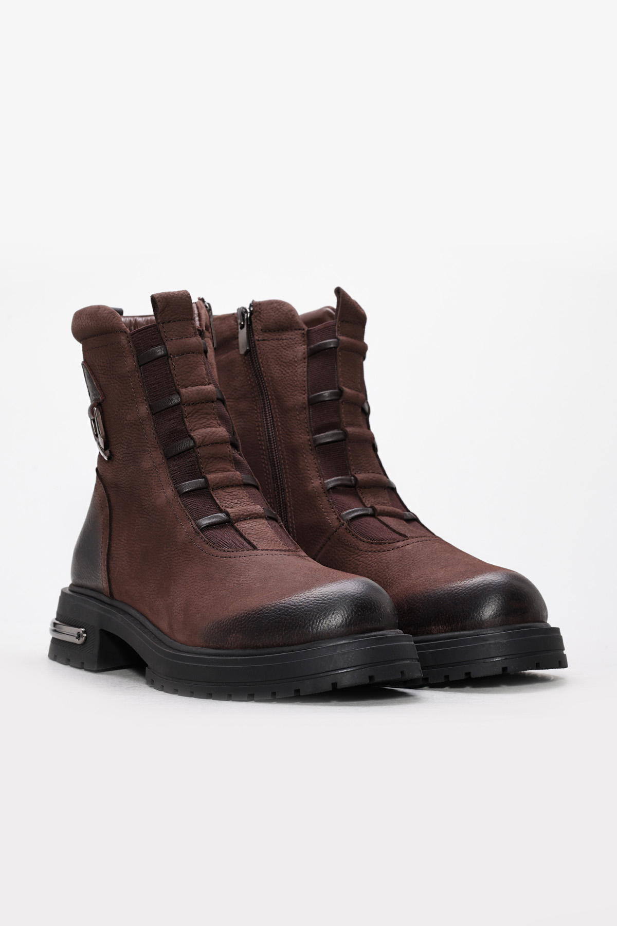 MirgeShoes Kahve Fermuarlı Kadın Bot İçi Kürklü Dışı Hakiki Nubuk Deri MRG018871126125975