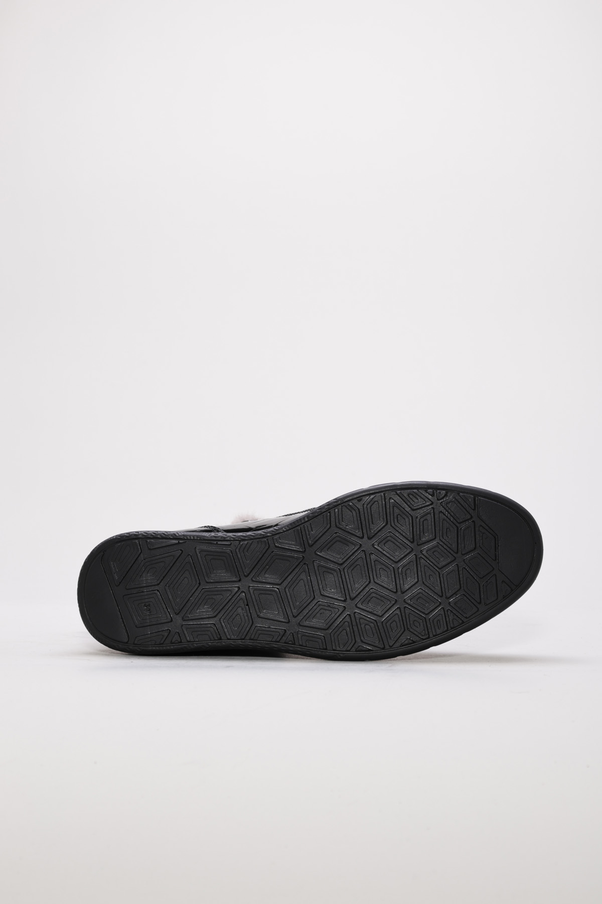 MirgeShoes Siyah Fermuarlı Kadın Klasik Bot İçi Kürklü Dışı Hakiki Kroko Deri MRG01541112611212
