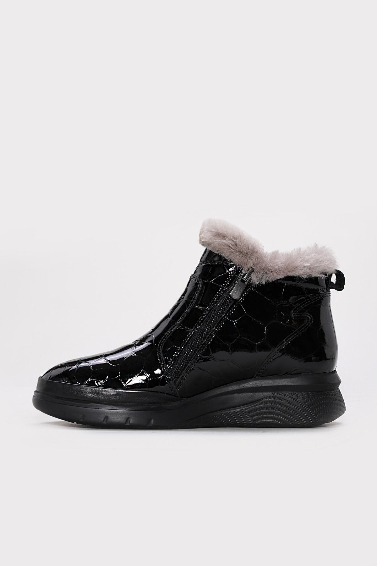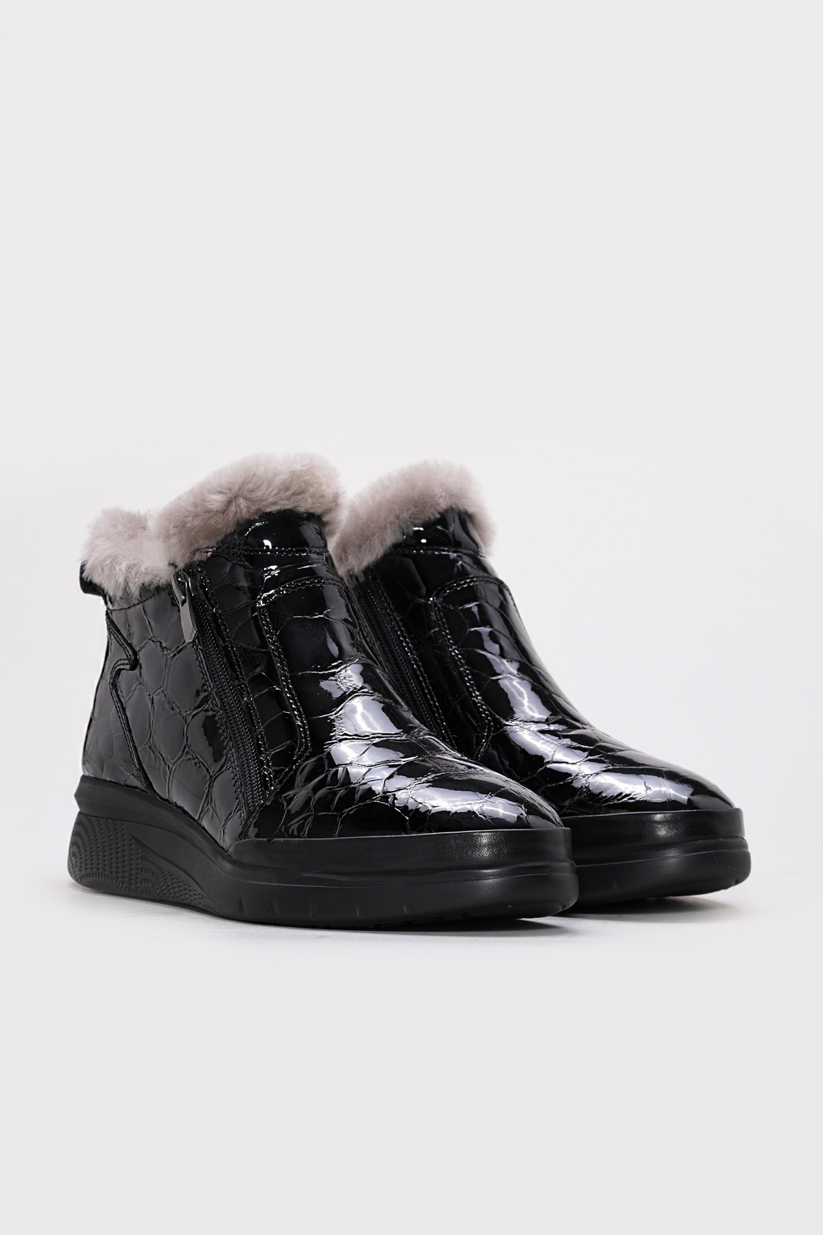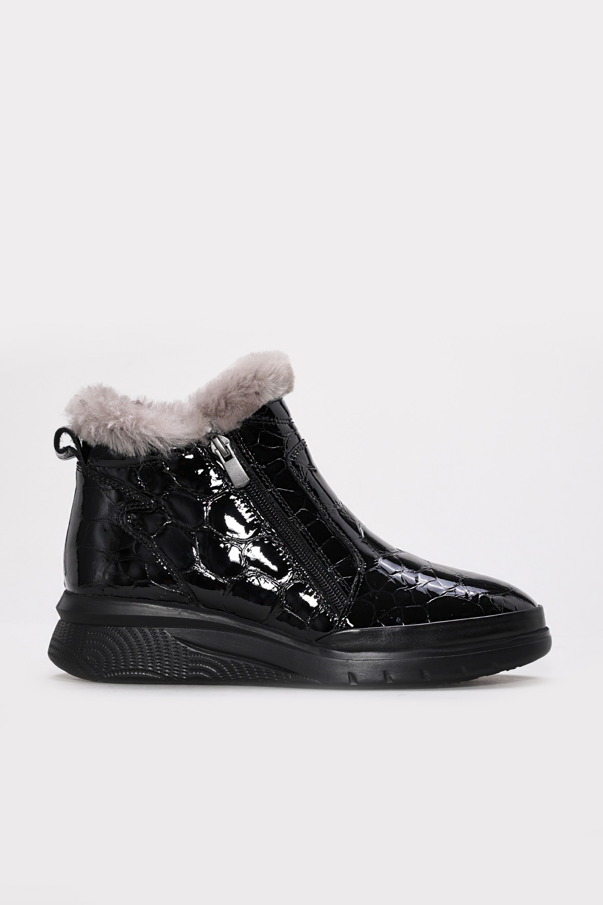 Kadın MirgeShoes Siyah Fermuarlı Kadın Klasik Bot İçi Kürklü Dışı Hakiki Kroko Deri MRG01541112611212
