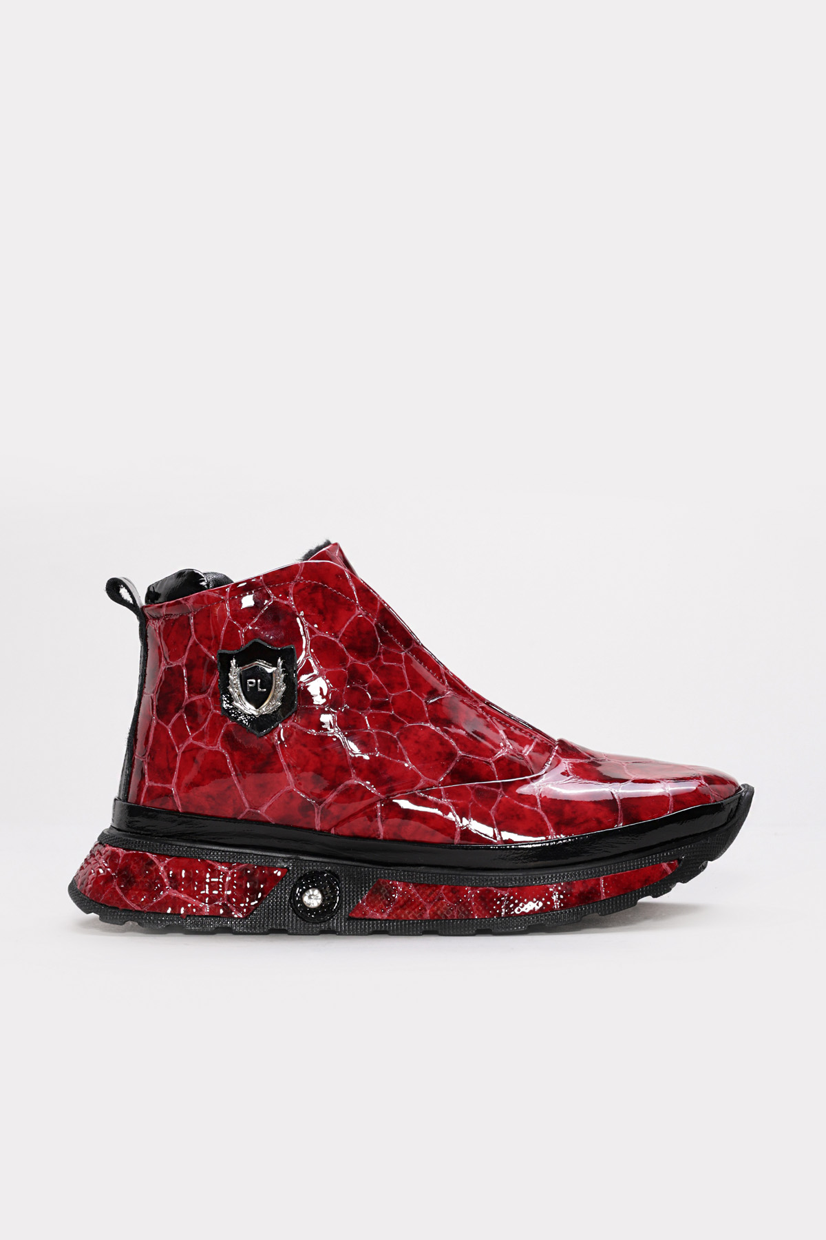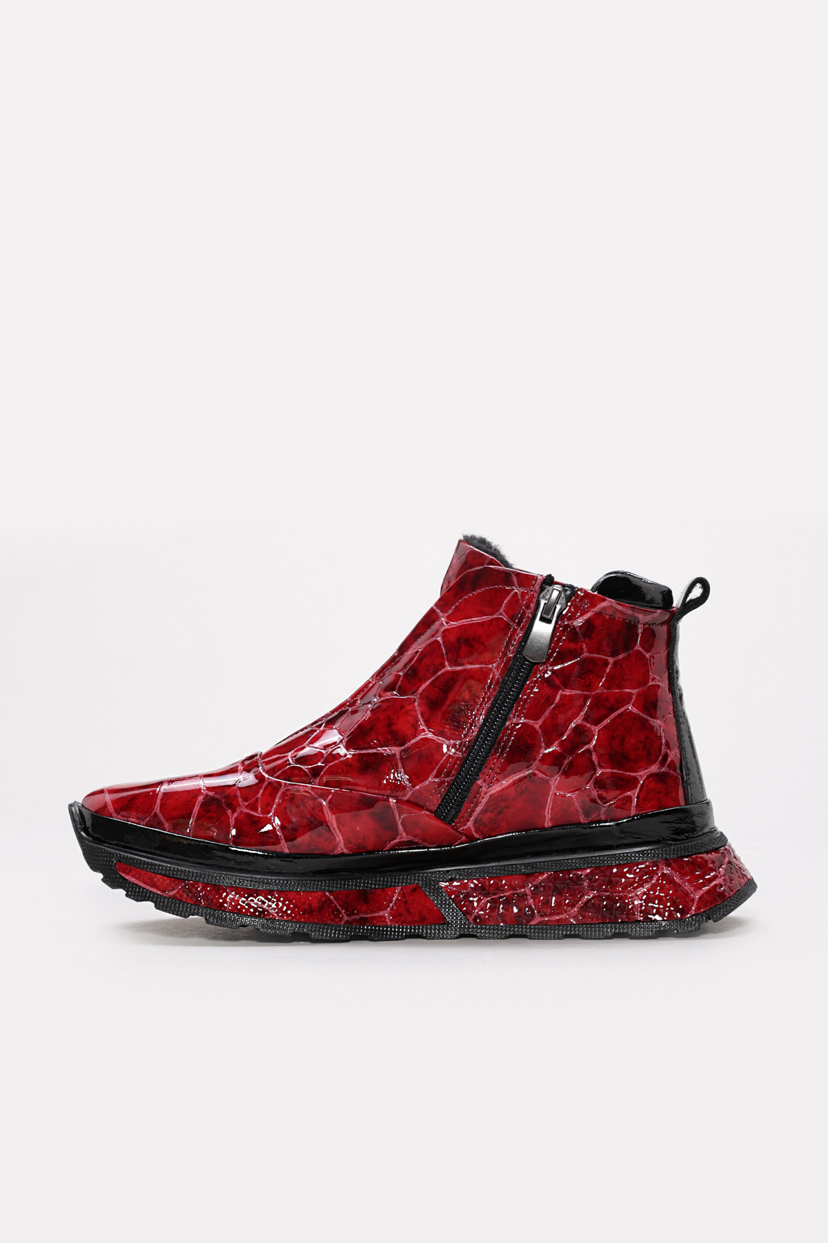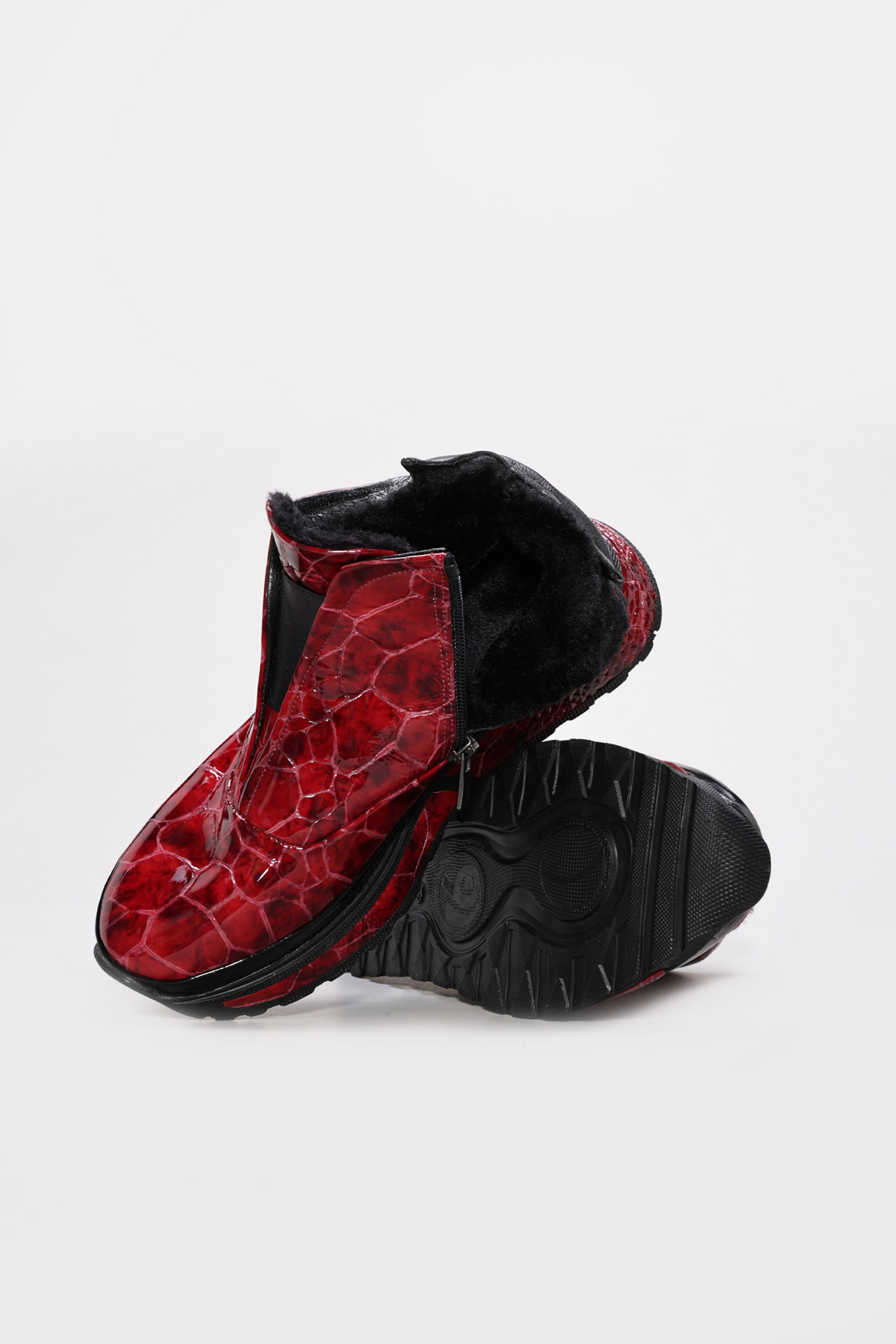 • MirgeShoes Kırmızı Fermuarlı Kadın Spor Bot Hakiki Kroko Deri MRG0138419261337