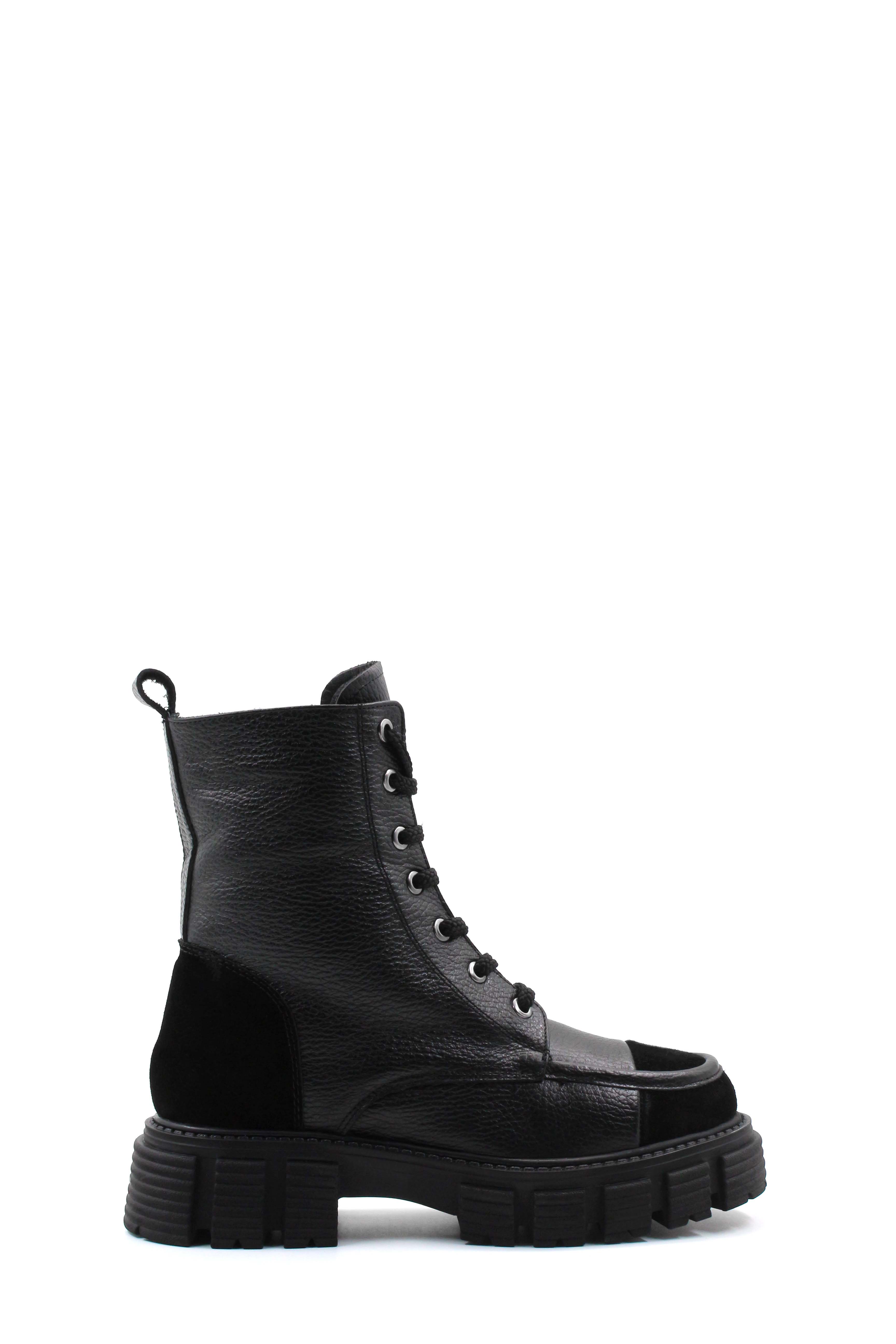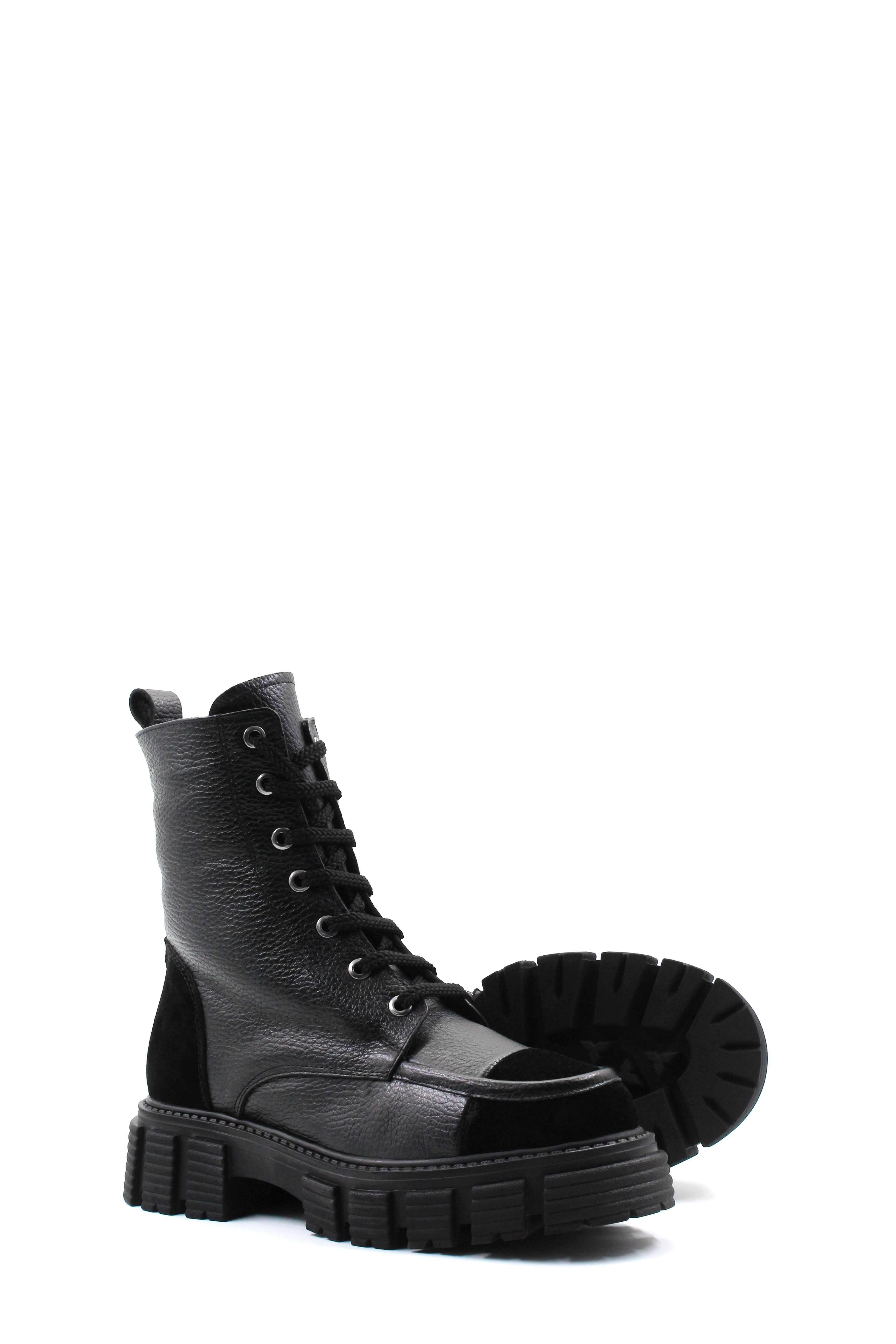 • MirgeShoes Siyah Fermuarlı Kadın Postal Bot İçi Kürklü Dışı Hakiki Deri MRG01140112618870