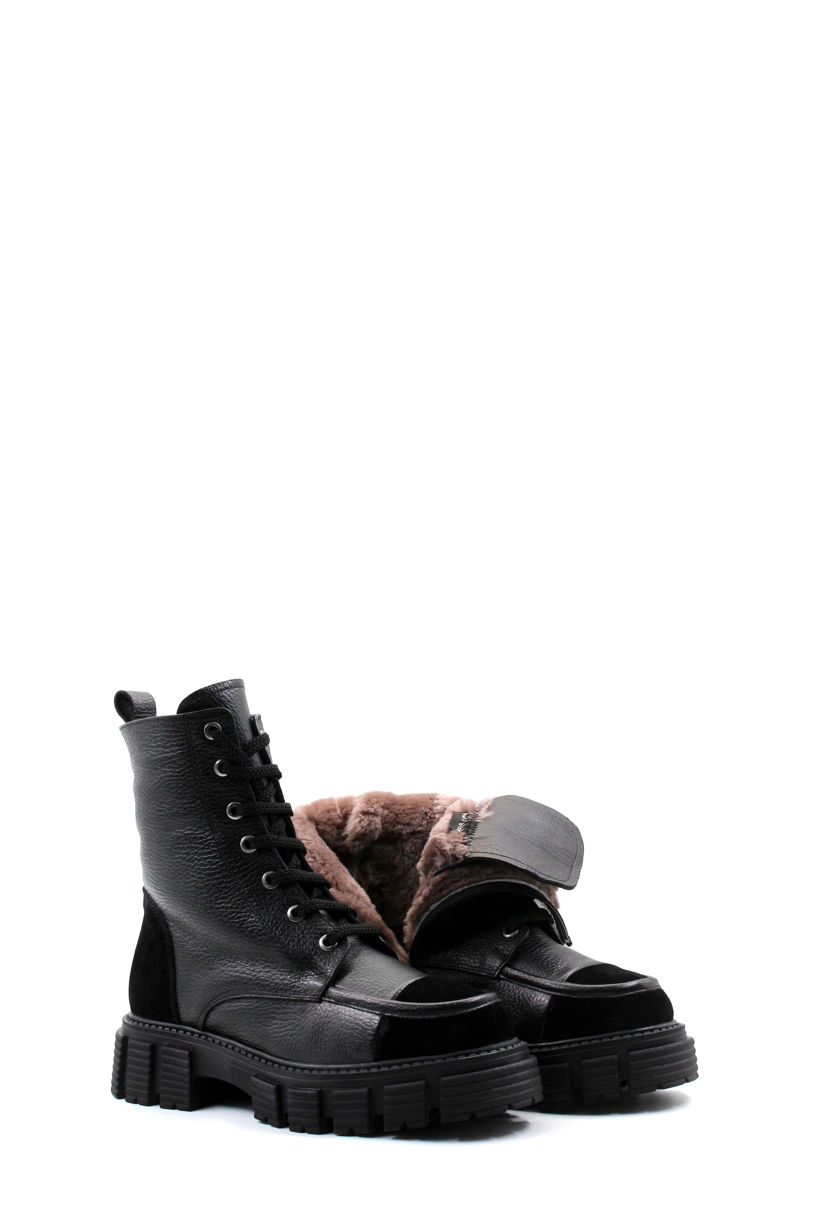 Kadın MirgeShoes Siyah Fermuarlı Kadın Postal Bot İçi Kürklü Dışı Hakiki Deri MRG01140112618870