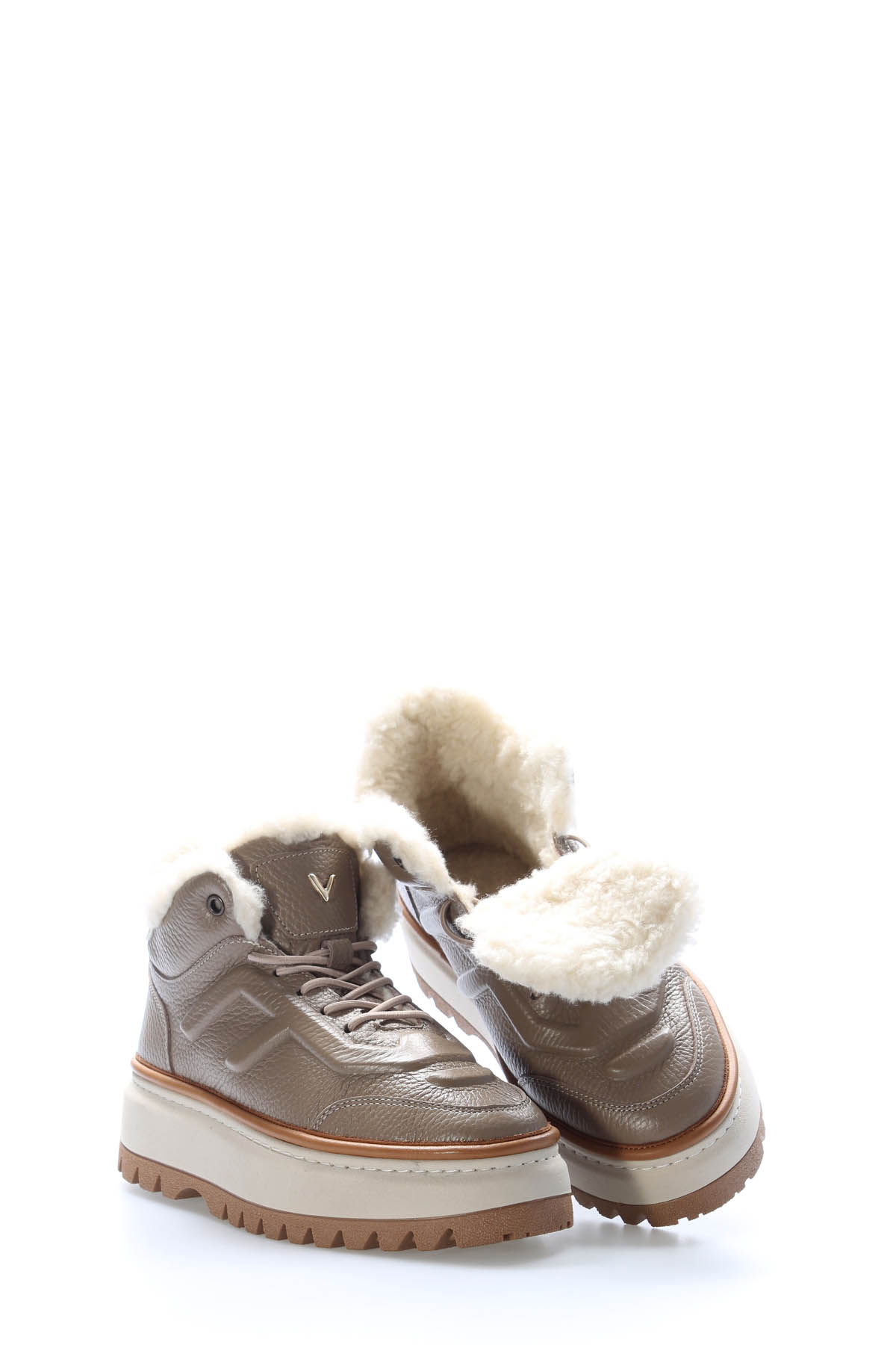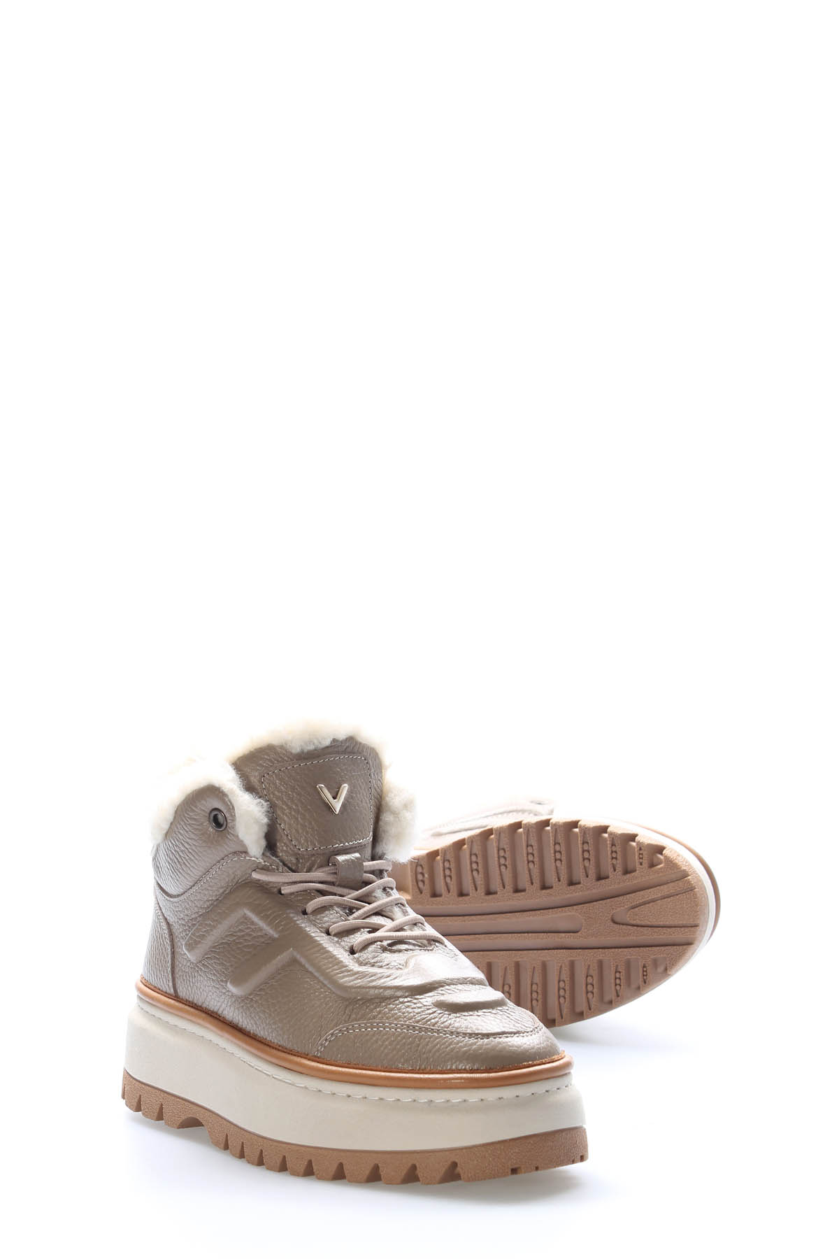 Kadın MirgeShoes Vizon Bağcıklı Kadın Yüksek Taban Bot Hakiki Deri MRG01539192613332