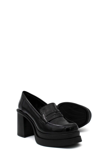 • MirgeShoes İçi Dışı Hakiki Rugan Deri Siyah Kadın İnce Topuklu Ayakkabı AH0821526121082