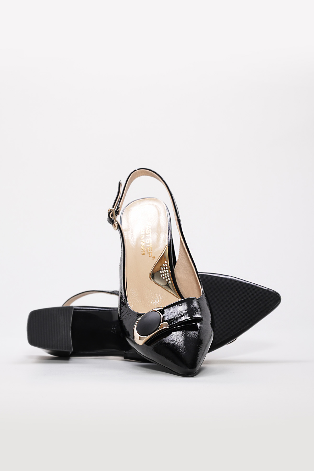 MirgeShoes İçi Dışı Hakiki Rugan Deri Siyah Kadın İnce Topuklu Ayakkabı AH0821526121082