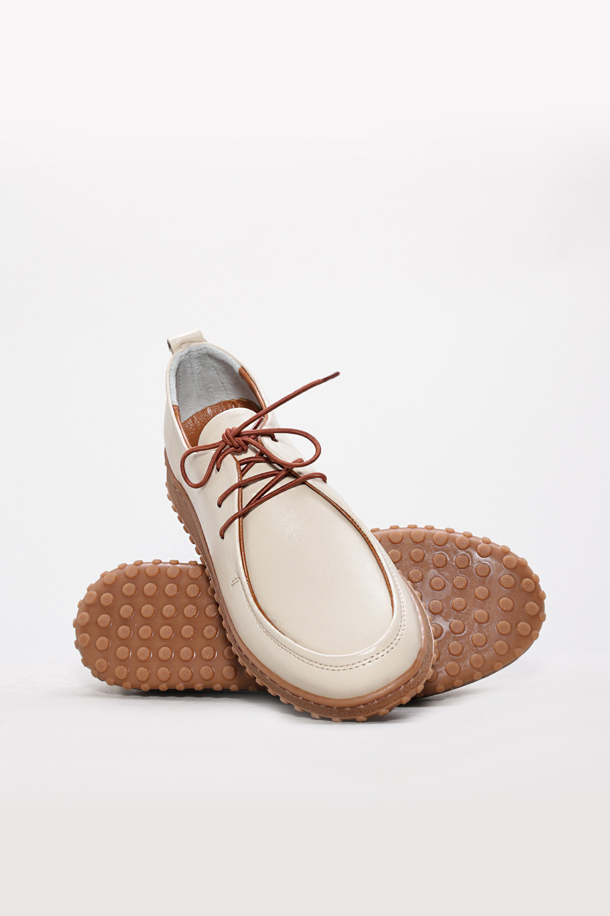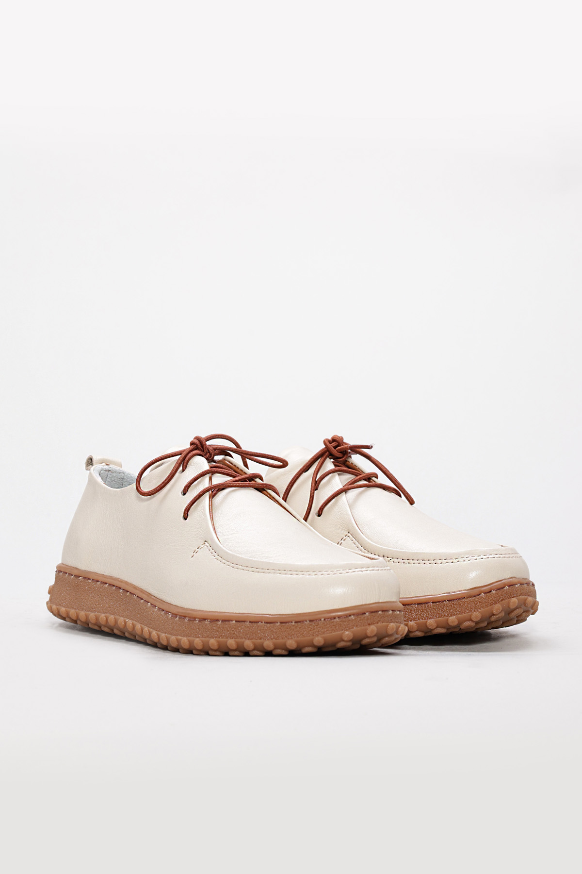 MirgeShoes İçi Dışı Hakiki Deri Bej Poli Kadın Casual Günlük Ayakkabı AH085832612715