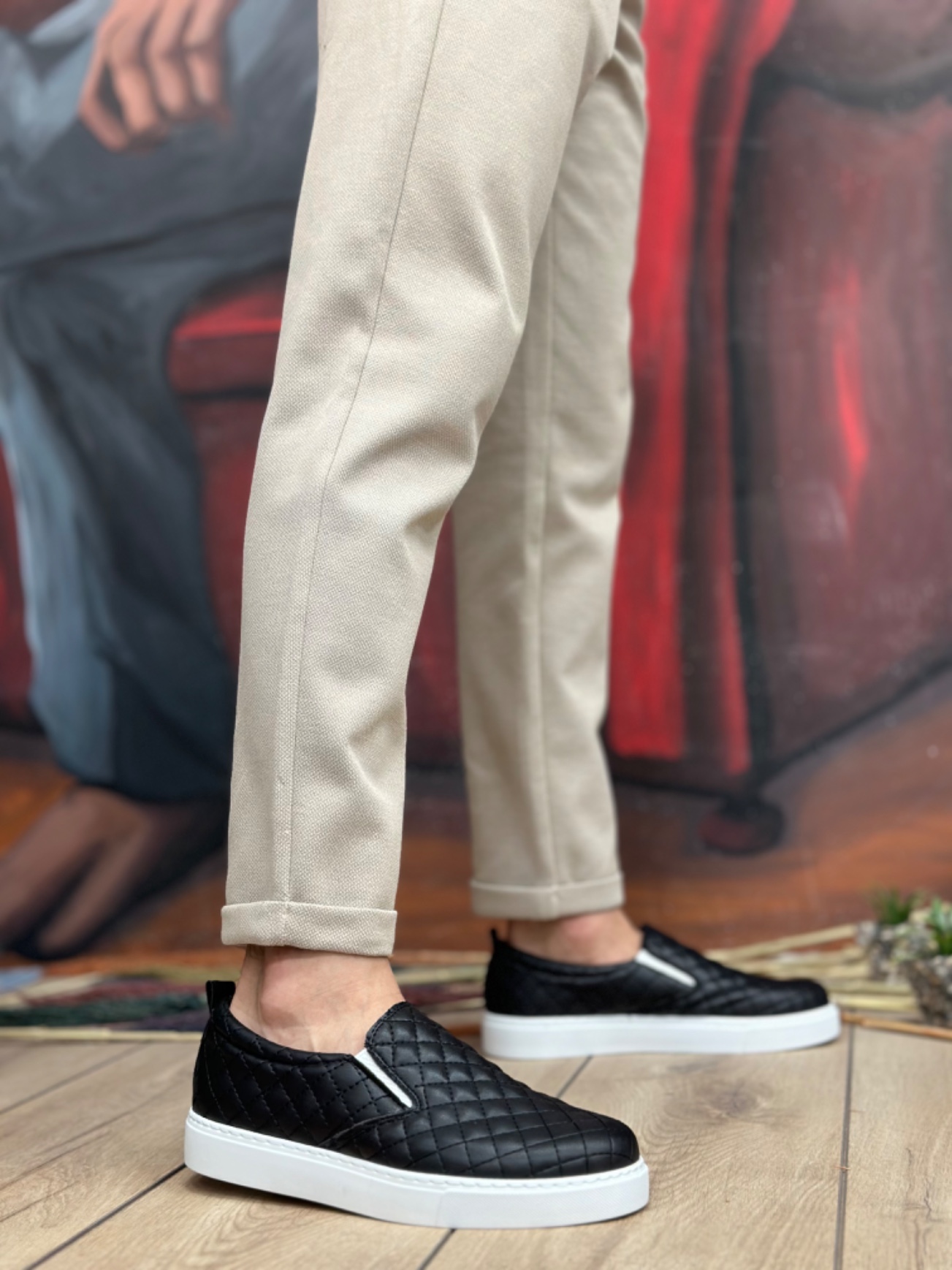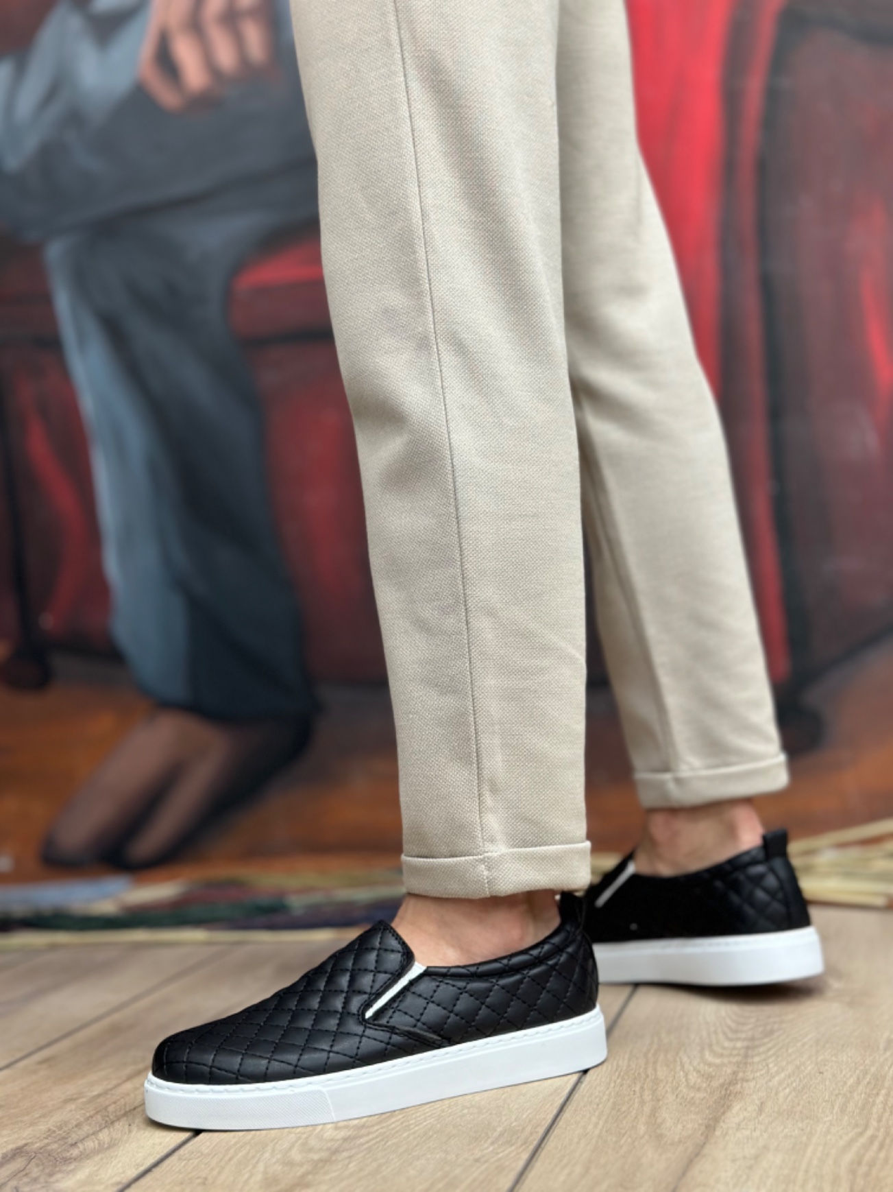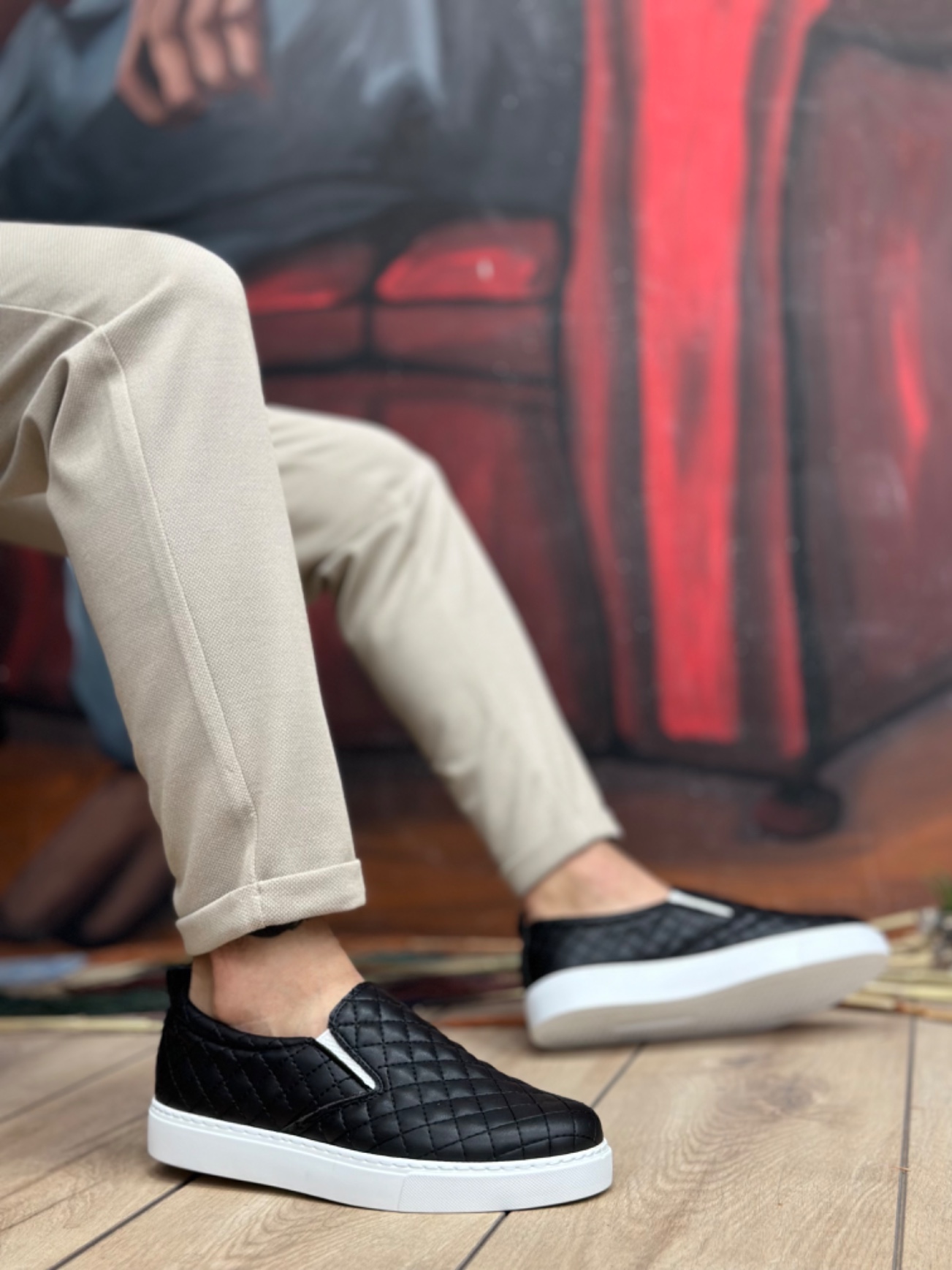 MirgeShoes Siyah Bağcıksız Erkek Günlük Ayakkabı Kapitone Kalın BYZ Taban MRG010602671