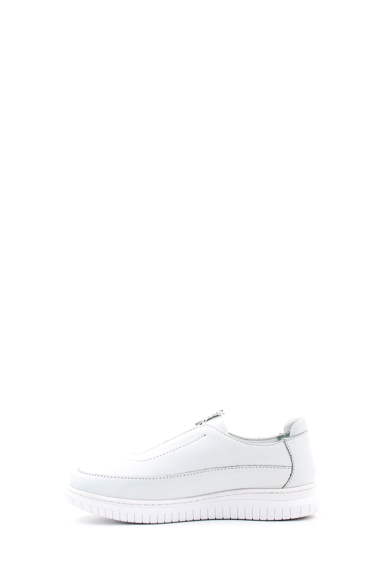 MirgeShoes Beyaz Bağcıksız Kadın Spor Sneaker Ayakkabı İçi Dışı Hakiki Deri MRG017132614240