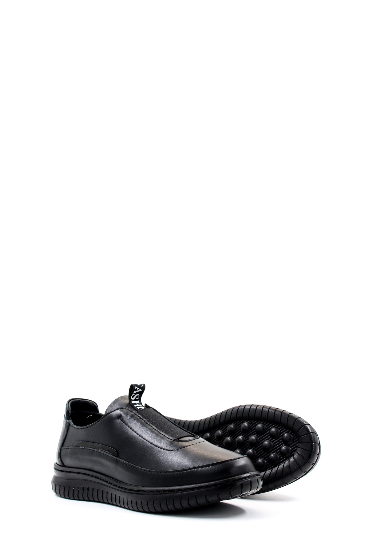 MirgeShoes Siyah Bağcıksız Kadın Spor Sneaker Ayakkabı İçi Dışı Hakiki Deri MRG017132614240