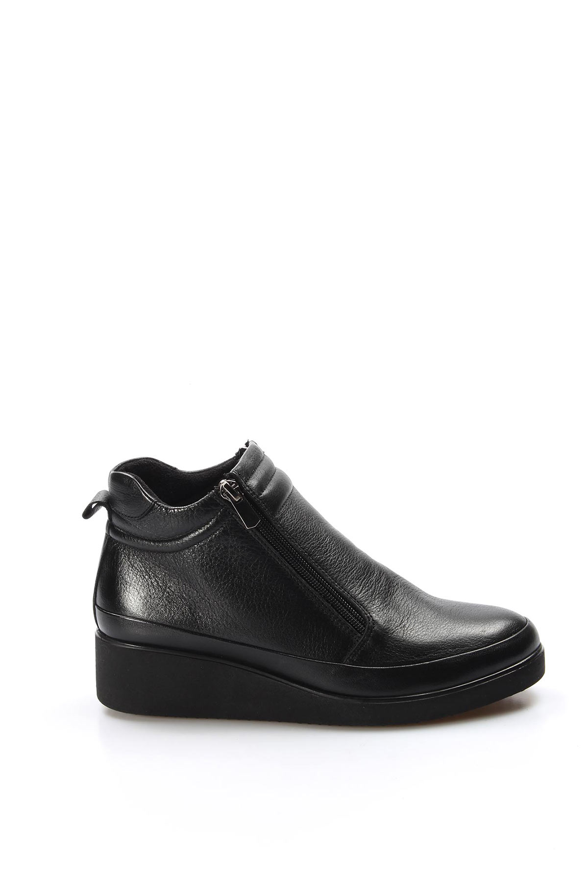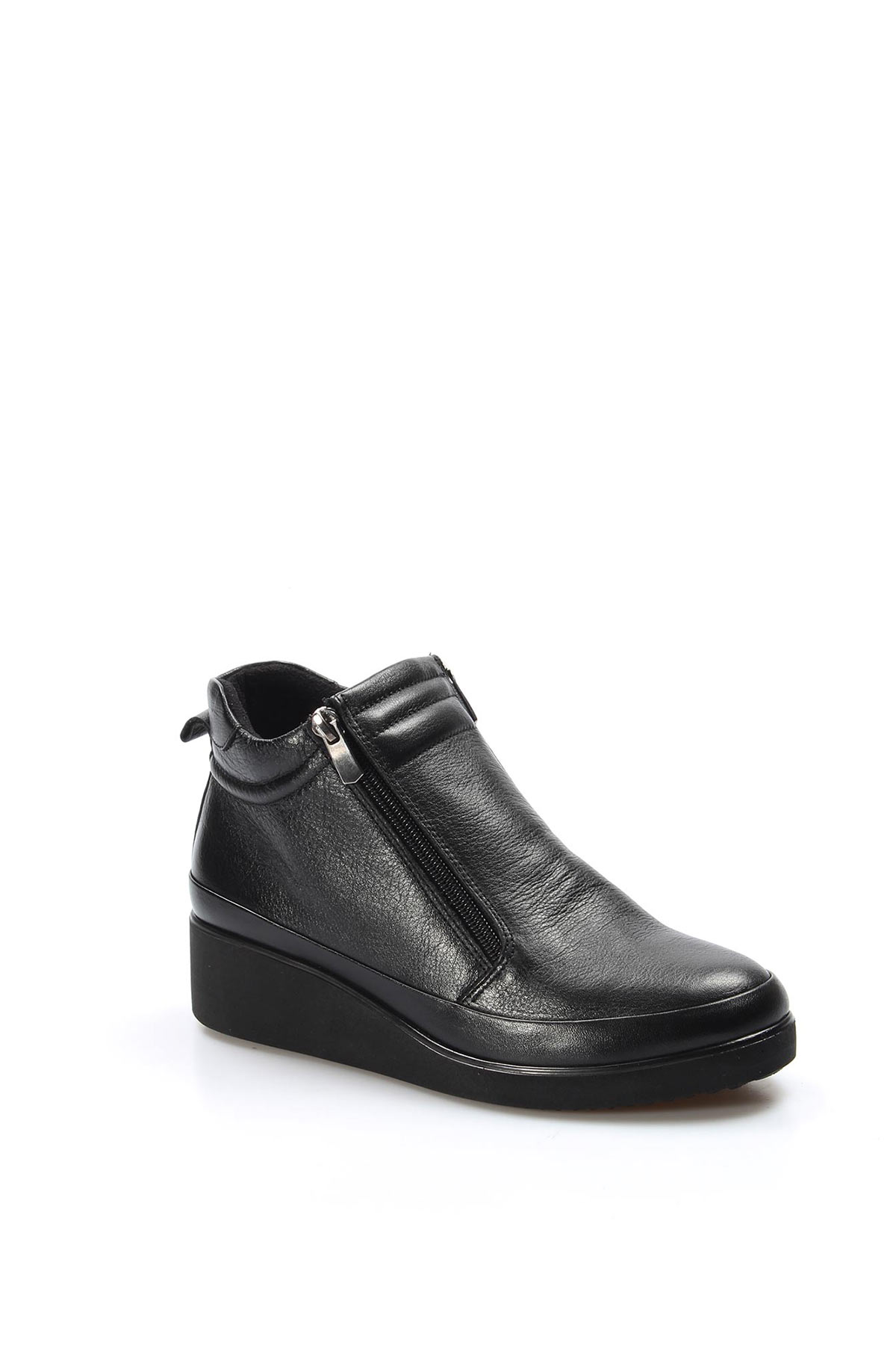 • MirgeShoes Siyah Fermuarlı Kadın Dolgu Topuk Bot Kaliteli Hakiki Deri MRG0199319261468