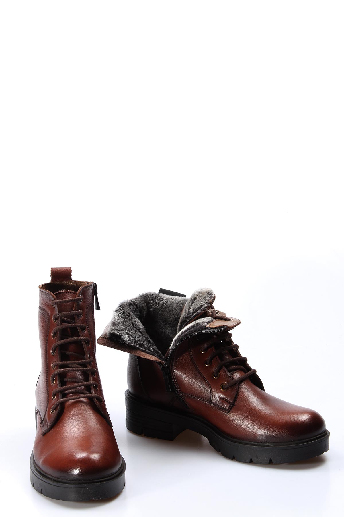 MirgeShoes Taba Fermuarlı Kadın Klasik Bot Kaliteli Hakiki Deri MRG01103119261314